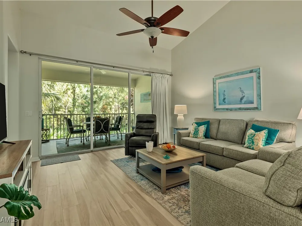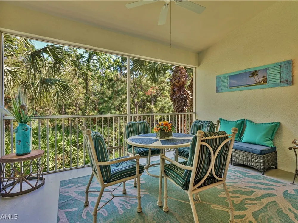 TASTEFULLY DECORATED 2BR/2BA CONDO OFFERED TURN-KEY NICELY FURNISHED WITH SEVERAL UPGRADES! Terrific location offers morning sun over wooded preserve - enjoy the privacy & natural beauty while relaxing on your screened lanai. NEW ROOF & NEWER A/C SYSTEM. Newer luxury vinyl floors in main living areas with tile in baths and newer carpet in bedrooms. This popular floor plan has high ceilings, spacious eat-in kitchen and comfortable living areas. High quality furnishings include Sleep # Mattresses, TV console with built-in fireplace and other newer items. This unit comes with a SOCIAL MEMBERSHIP that includes Pay as You Play Golf. Located in the highly desirable resort community of Colonial Country Club which offers 18 holes of Championship Golf, Remodeled Clubhouse with Bar & Dining, Fitness Center, Community Pool, Tennis, Pickleball, Bocce, Miles of Walking Trails & MUCH MORE! This community benefits from a convenient location, high quality amenities and moderate fee structure. MOVE RIGHT IN & ENJOY!