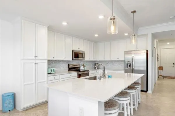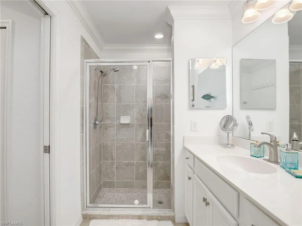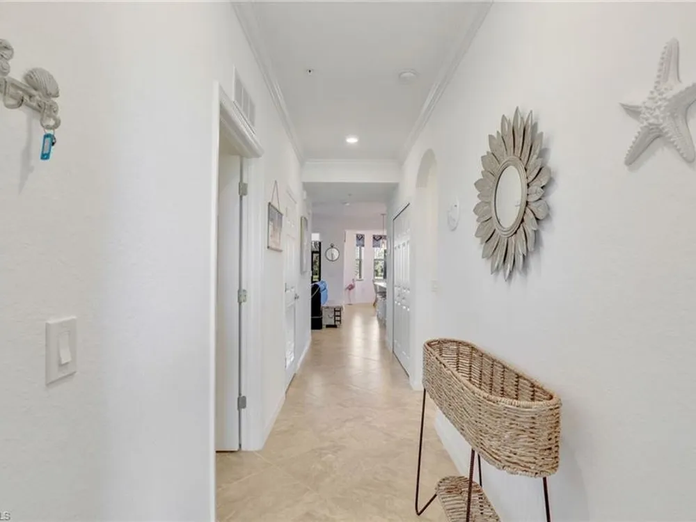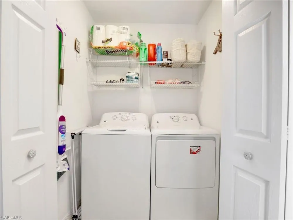 You will love this TURNKEY FURNISHED 2 bedroom, 2 bathroom FIRST FLOOR condo in the coveted gated community of Treviso Bay. SOCIAL MEMBERSHIP INCLUDED! This residence is perfect for year round or as a seasonal getaway. The open great room floor plan is optimal for entertaining - nice sized living area with pull out couch! Crown molding, tile flooring throughout (no carpet!), and custom window valances in the dining area plus motorized shade on the sliders to the lanai are functional yet stylish upgrades. The spacious kitchen features an oversized island with quartz countertops, white wood cabinets, upgraded marble tile backsplash, stainless steel appliances, reverse osmosis spout at the sink, and pantry—ideal for cooking and gathering. Step out onto the screened lanai and enjoy serene lake and preserve views—a perfect spot for morning coffee or evening relaxation. Panoramic views of the oversized lake & preserve can be seen from the living area, lanai, eat-in kitchen bay window and kitchen area. The primary bedroom offers ultimate comfort with 2 walk-in closets and ample space. The guest bedroom and second bathroom are equally inviting, ensuring that family and friends have a comfortable stay. This condo is equipped with modern conveniences such as a Ring doorbell, entry keypad, and HURRICANE IMPACT WINDOWS & DOORS for added peace of mind. This unit comes with one assigned covered carport space and storage closet plus there is plenty of guest parking. A satellite pool with loungers and pickleball are just up the street for easy access. Residents can also enjoy Treviso Bay’s world-class amenities that take this property to another level of luxury living. Enjoy a full range of activities including: a 18-hole championship golf course designed by Arthur Hills (social members can golf May-Oct), 8 lighted Har-Tru tennis courts with a tennis center & pro shop, bocce courts, basketball courts, and pickleball courts for active outdoor fun. Residents enjoy 2 private clubhouses—the 64,000 sq ft main clubhouse with fine dining, library, card rooms, billiard room, and 15,000 sq ft Villa Rilassare, with a poolside bar and restaurant, fitness amenities including a fitness center, pilates and aerobics studio, and full-service spa with a beauty salon and sauna. There are multiple pools including a resort pool, kids pool, and lap pool. Always a multitude of social activities available for all interests! Treviso Bay offers 24-hour guard at the gate for additional security and is ideally located near the best of downtown Naples, including shopping, dining, and entertainment options. With its exceptional amenities and prime location, this move-in ready condo provides the perfect opportunity to live the life you've always dreamed of in Treviso Bay!
