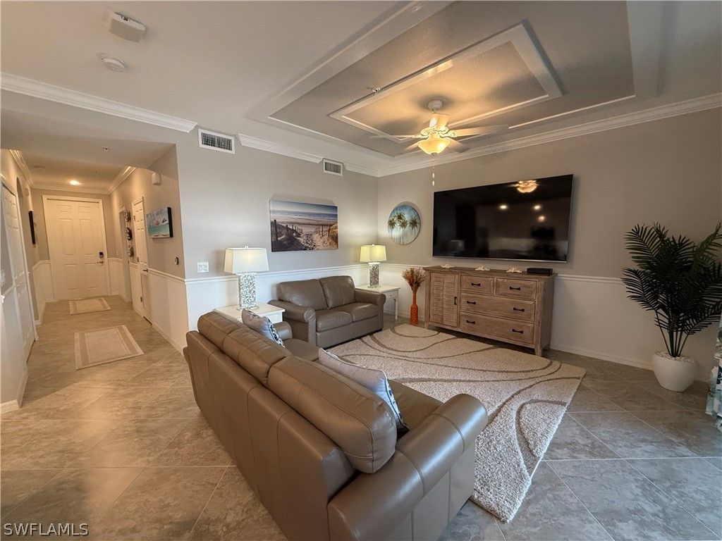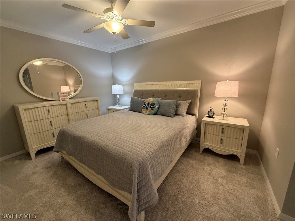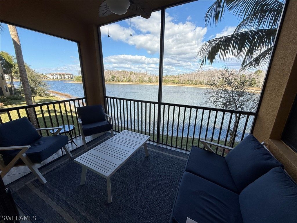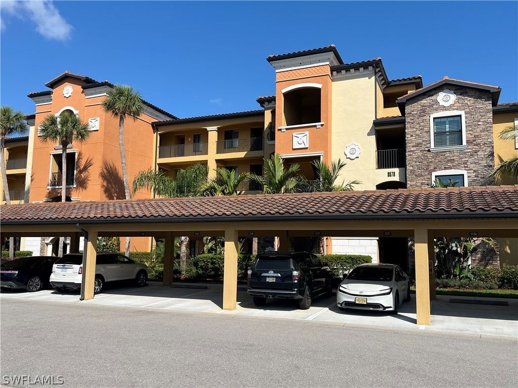 This Beautiful Birkdale model condo, not used more than 10 months in the past 7 years, is impeccably maintained. featuring custom furnishings and ceiling trim and including new carpet in both bedrooms. This 2 bedroom, 2 bath condo includes upgraded under cabinet lighting, backsplash and chair rail trim throughout. The Birkdale model has an open living room, kitchen and dining room connected by a 10' kitchen island. Other upgrades includes ceiling fans and large tv's in every room. Being offered turnkey furnished with everything included you will have plenty of time to relax on the 2 sided, open, screened-in lanai with lake and fountain views. Your covered carport parking space is located in front of the stairway to your second floor unit. The nearby pickleball courts ( 8 ) and the satellite pool and grill area are located within walking and biking distance, and the resort pool not much further. Treviso Bay is a 4 plus star Golf and Tennis Resort Community located only 17 minutes to Downtown Naples and the numerous Naples beaches. Being the only TPC Golf course in southwest Florida, Treviso Bay is held to a higher standard then other community golf courses. Our manicured grounds and foliage are exquisite and there are many miles of biking and walking sidewalks to see all the nature in the Preserve Areas of Treviso Bay. Members of non-golf condos, like this one, are allowed as residents to play on the course and use the range and practice facilities from May to October. Treviso has many music, games and fine dining options to book not to mention super fun parking lot band events. Our chef is 5 star and meals both at the main Resort Clubhouse and the Resort Pool Club are "over-the-top" amazing! Come and see this wonderful condo and Treviso Bay!!