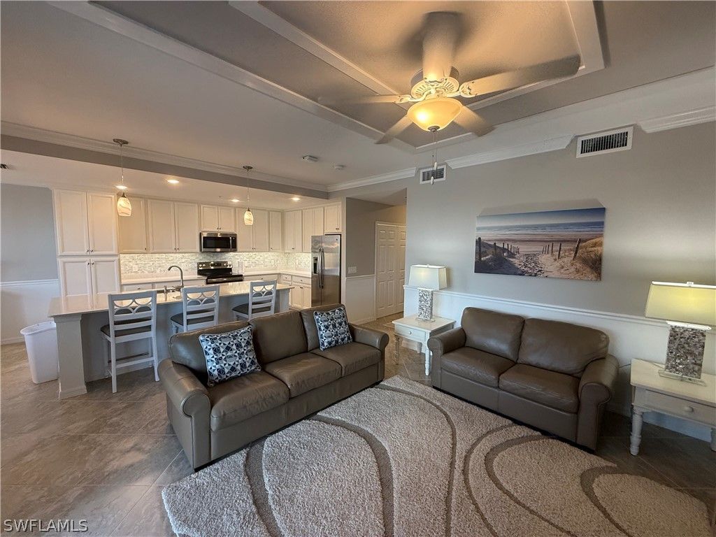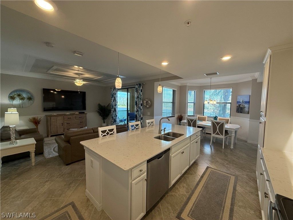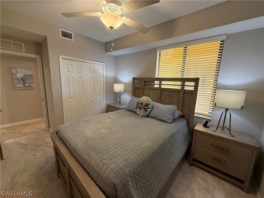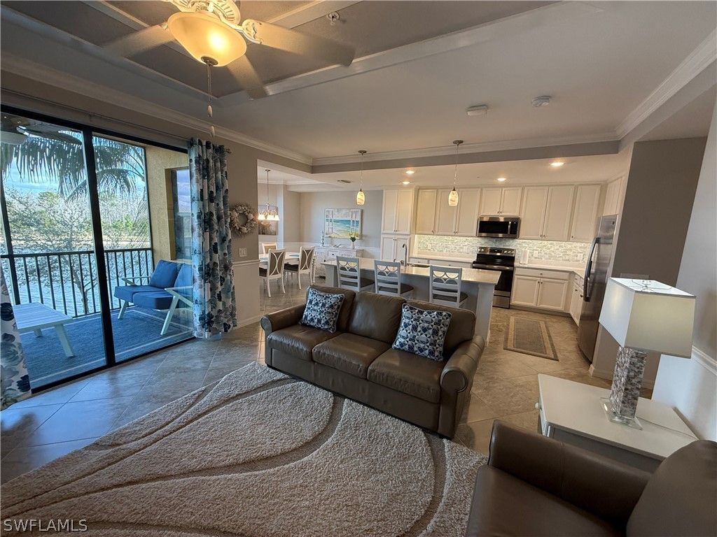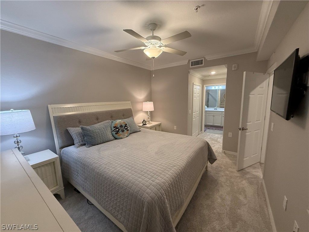 This Beautiful Birkdale model condo, not used more than 10 months in the past 7 years, is impeccably maintained. featuring custom furnishings and ceiling trim and including new carpet in both bedrooms. This 2 bedroom, 2 bath condo includes upgraded under cabinet lighting, backsplash and chair rail trim throughout. The Birkdale model has an open living room, kitchen and dining room connected by a 10' kitchen island. Other upgrades includes ceiling fans and large tv's in every room. Being offered turnkey furnished with everything included you will have plenty of time to relax on the 2 sided, open, screened-in lanai with lake and fountain views. Your covered carport parking space is located in front of the stairway to your second floor unit. The nearby pickleball courts ( 8 ) and the satellite pool and grill area are located within walking and biking distance, and the resort pool not much further. Treviso Bay is a 4 plus star Golf and Tennis Resort Community located only 17 minutes to Downtown Naples and the numerous Naples beaches. Being the only TPC Golf course in southwest Florida, Treviso Bay is held to a higher standard then other community golf courses. Our manicured grounds and foliage are exquisite and there are many miles of biking and walking sidewalks to see all the nature in the Preserve Areas of Treviso Bay. Members of non-golf condos, like this one, are allowed as residents to play on the course and use the range and practice facilities from May to October. Treviso has many music, games and fine dining options to book not to mention super fun parking lot band events. Our chef is 5 star and meals both at the main Resort Clubhouse and the Resort Pool Club are "over-the-top" amazing! Come and see this wonderful condo and Treviso Bay!!