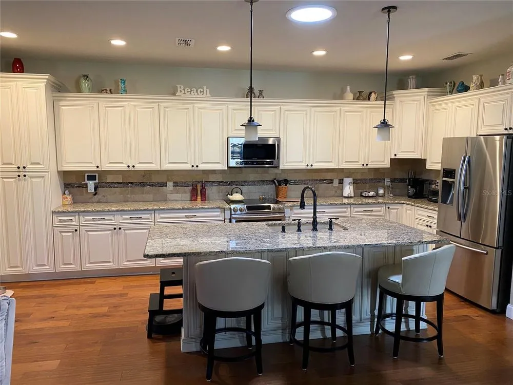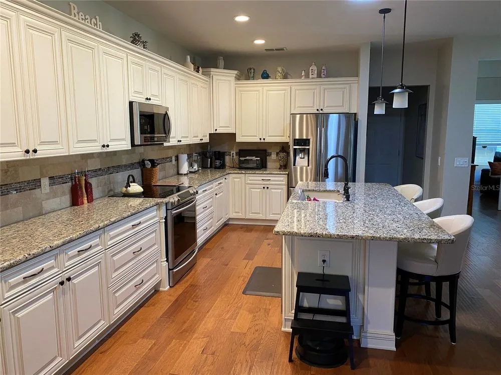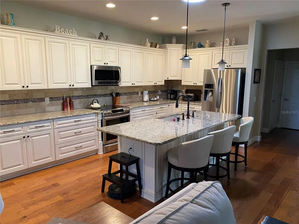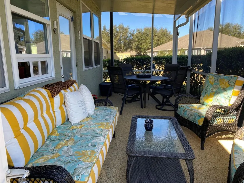 Stone Creek by Del Webb, is a Pulte built 55+ resort style gated golf course community! We offer a Terry Goss designed Championship 18-hole Golf Course and a state-of-the-art golf simulator found in our Stonewater Club. This home is a recently remodeled Augustus model, the interior living space is ~ 1,756 sq. ft. and it is roughly the same gross living area as an Alexander Villa. This home will receive a new architectural shingle roof so a new buyer can be assured that the home is well maintained, and comes with warranty. The kitchen is the heart of the home! The kitchen has 42" tall cabinets along an entire wall ending with a butler’s pantry. Base cabinets are solid wood and have exquisite granite counter tops with self-closing drawer glides. The appliances are stainless. The open floor plan provides a front-to-back living room and sitting room to allow for ample space for large gatherings, a comfortable office/den and enclosed Florida room all have gorgeous engineered hardwood flooring. Enjoy your Lanai nestled in privacy while sipping on your morning coffee. The Lanai overlooks a stone paver patio which gives you a great space for backyard grilling. The primary bedroom has an exquisite bathroom, his/her sinks, solid wood cabinets, granite counters and granite floors and walk-in closet with custom shelving. The “doorless” walk-in shower is one of a kind, has a rear shower valve and soothing shower massage head. The guest bathroom is equally as nice! The monthly HOA fee provides for all maintenance to be completed by the association, including roof replacement, lawn care watering and treatments. Exterior lawn, painting, power washing, bush trimming and bush replacement. Your monthly association fee also covers exterior building insurance! The amazing amenities include indoor/outdoor resort style pools, spa, fitness center, tennis and pickle ball courts, dog park, community garden, softball field, bocce ball, corn hole, and walking trails. Residents enjoy outdoor concerts at the newly opened Stonewater Club. Our restaurant features a full menu for indoor/outdoor dining and our clubhouse bar offers a full line of beverages for your enjoyment. Ocala is renowned as the Horse Capital of the World, and many residents frequent the World Class Equestrian Center which is only 1 mile away from our community. Stone Creek is close to retail, medical facilities, shopping, and entertainment. Your retirement at Stone Creek will be filled with a diverse selection of activities and you will make new friends to build lasting memories. Schedule an appointment to see this spectacularly maintained home!