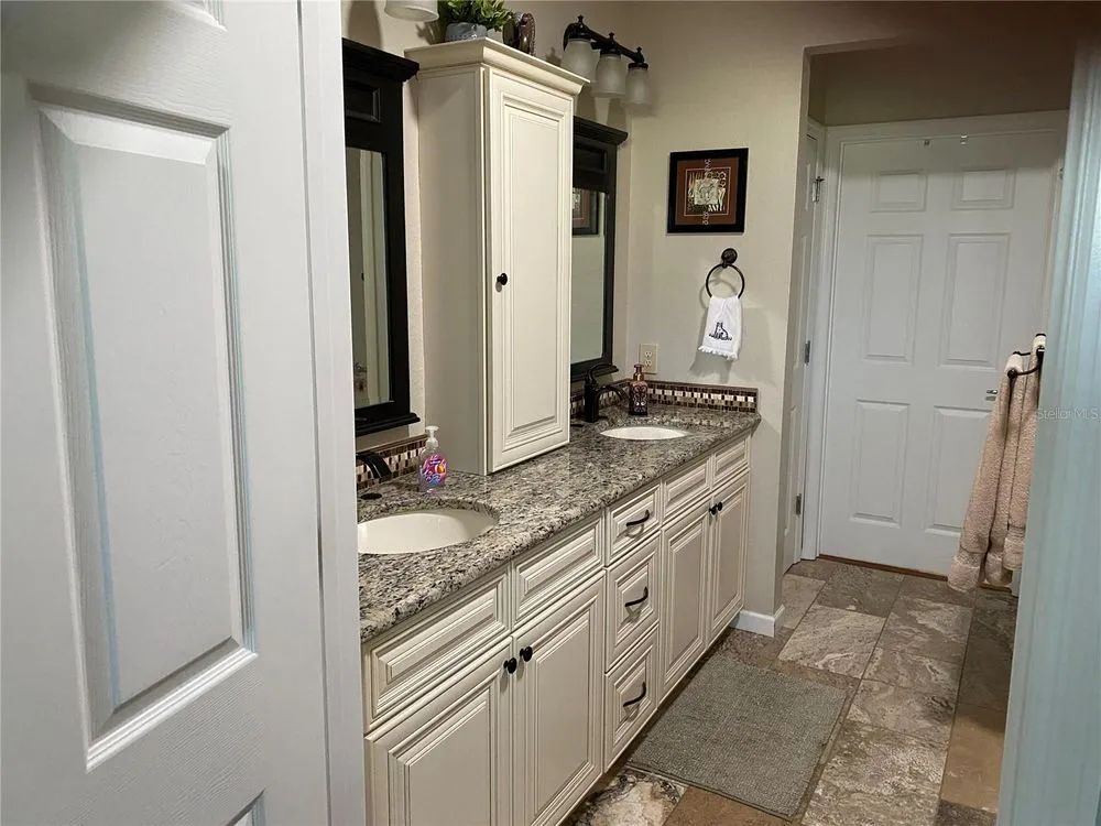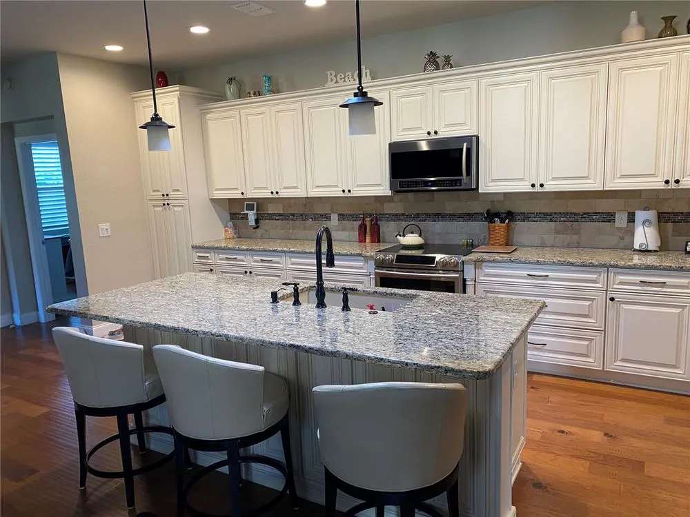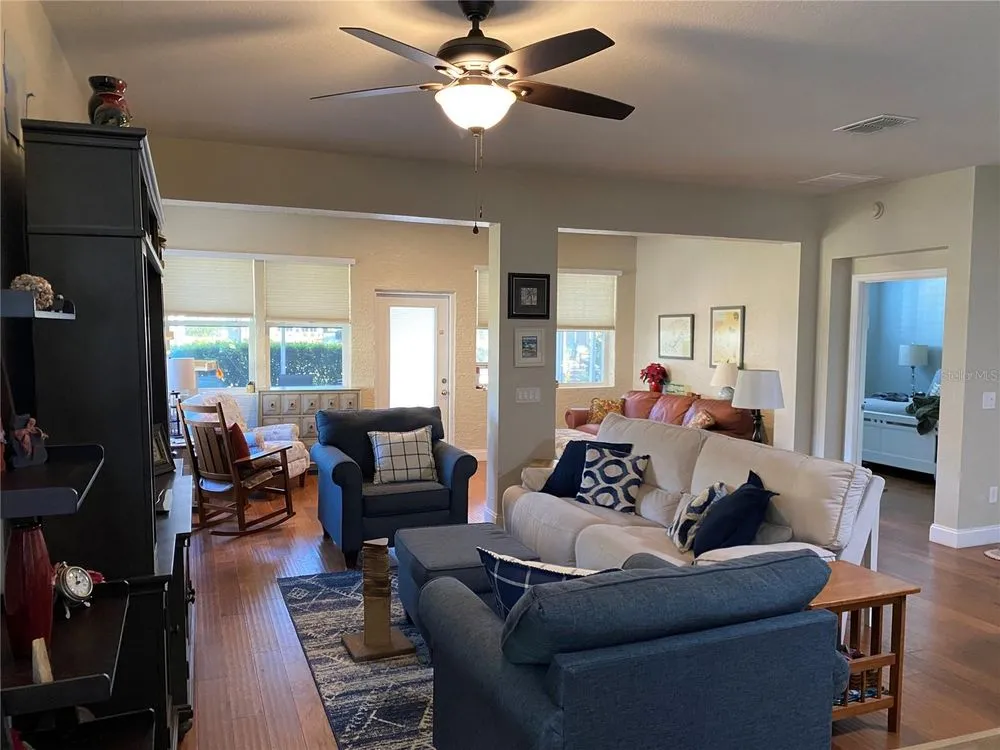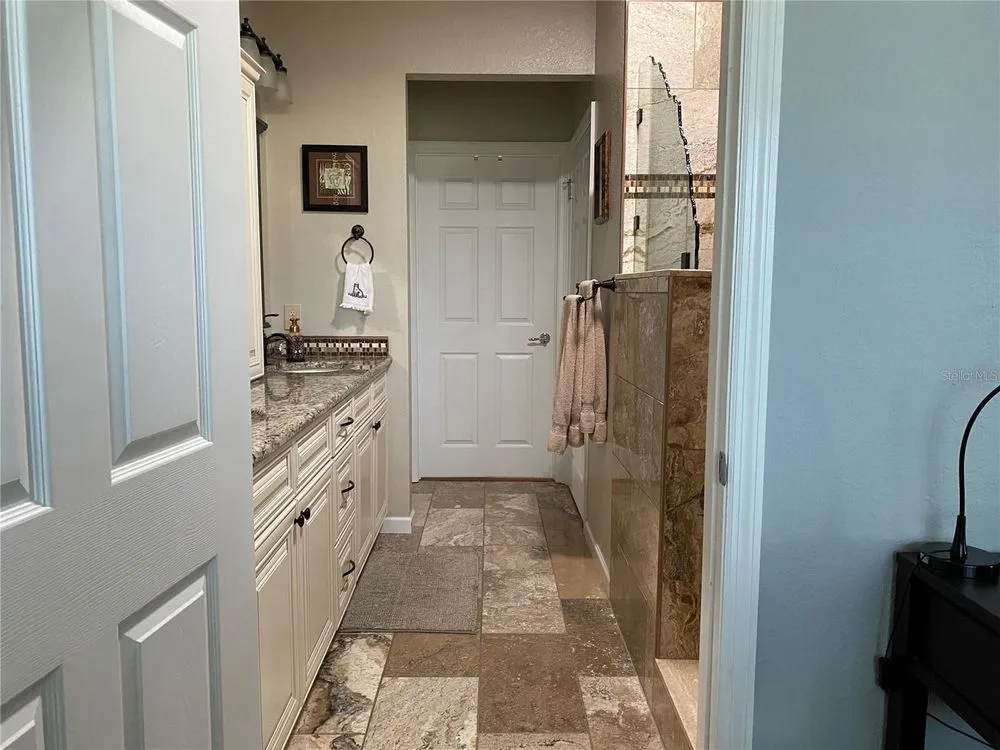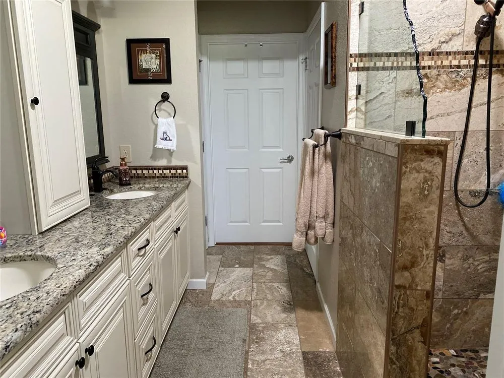Stone Creek by Del Webb, is a Pulte built 55+ resort style gated golf course community! We offer a Terry Goss designed Championship 18-hole Golf Course and a state-of-the-art golf simulator found in our Stonewater Club. This home is a recently remodeled Augustus model, the interior living space is ~ 1,756 sq. ft. and it is roughly the same gross living area as an Alexander Villa. This home will receive a new architectural shingle roof so a new buyer can be assured that the home is well maintained, and comes with warranty. The kitchen is the heart of the home! The kitchen has 42" tall cabinets along an entire wall ending with a butler’s pantry. Base cabinets are solid wood and have exquisite granite counter tops with self-closing drawer glides. The appliances are stainless. The open floor plan provides a front-to-back living room and sitting room to allow for ample space for large gatherings, a comfortable office/den and enclosed Florida room all have gorgeous engineered hardwood flooring. Enjoy your Lanai nestled in privacy while sipping on your morning coffee. The Lanai overlooks a stone paver patio which gives you a great space for backyard grilling. The primary bedroom has an exquisite bathroom, his/her sinks, solid wood cabinets, granite counters and granite floors and walk-in closet with custom shelving. The “doorless” walk-in shower is one of a kind, has a rear shower valve and soothing shower massage head. The guest bathroom is equally as nice! The monthly HOA fee provides for all maintenance to be completed by the association, including roof replacement, lawn care watering and treatments. Exterior lawn, painting, power washing, bush trimming and bush replacement. Your monthly association fee also covers exterior building insurance! The amazing amenities include indoor/outdoor resort style pools, spa, fitness center, tennis and pickle ball courts, dog park, community garden, softball field, bocce ball, corn hole, and walking trails. Residents enjoy outdoor concerts at the newly opened Stonewater Club. Our restaurant features a full menu for indoor/outdoor dining and our clubhouse bar offers a full line of beverages for your enjoyment. Ocala is renowned as the Horse Capital of the World, and many residents frequent the World Class Equestrian Center which is only 1 mile away from our community. Stone Creek is close to retail, medical facilities, shopping, and entertainment. Your retirement at Stone Creek will be filled with a diverse selection of activities and you will make new friends to build lasting memories. Schedule an appointment to see this spectacularly maintained home!