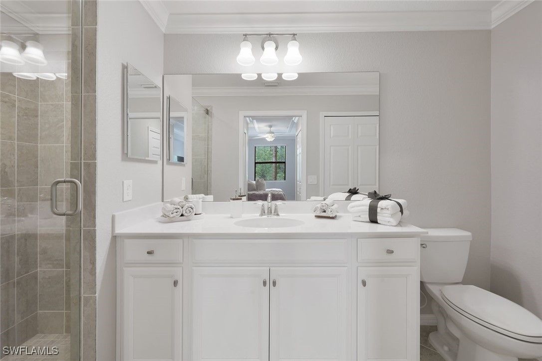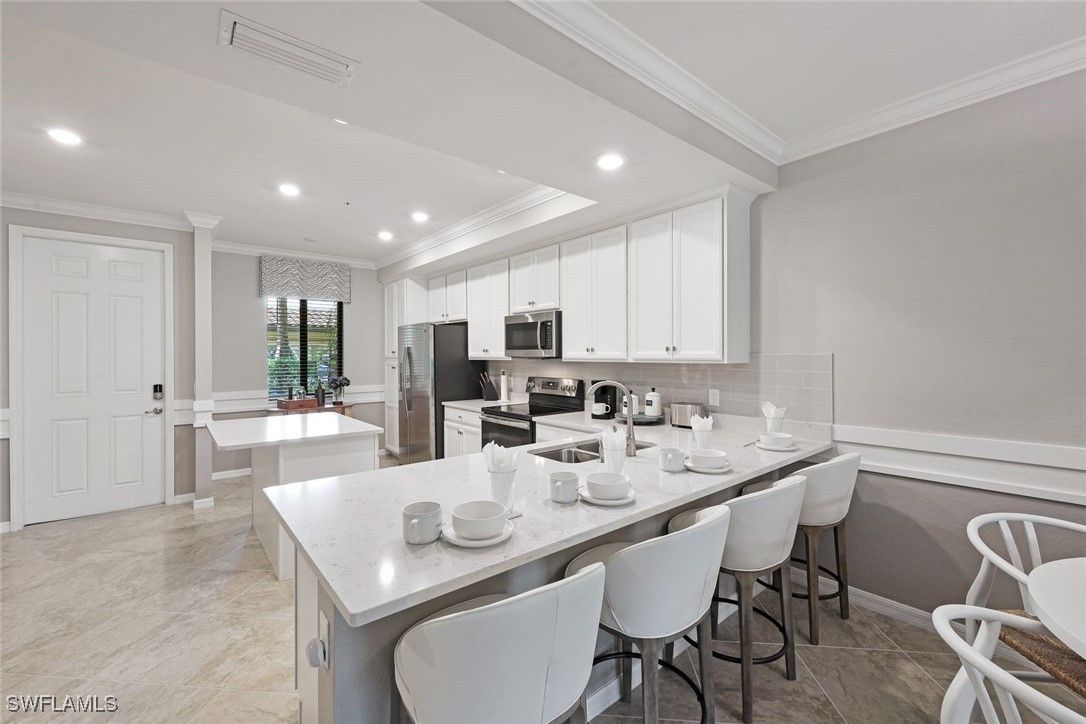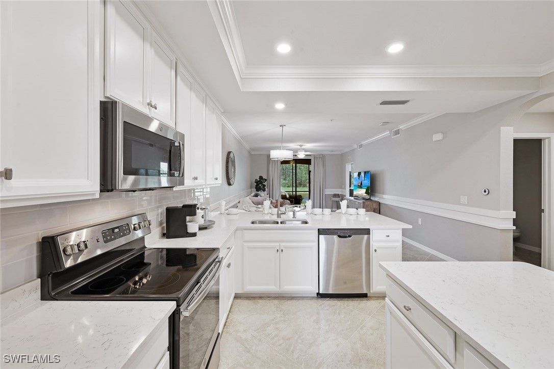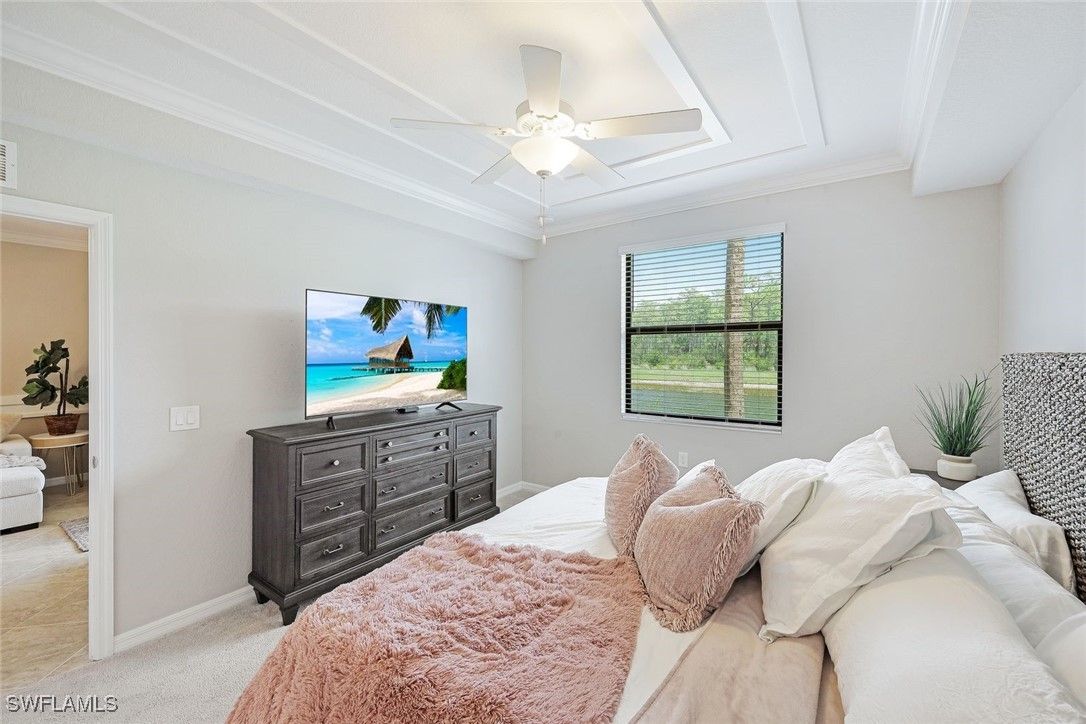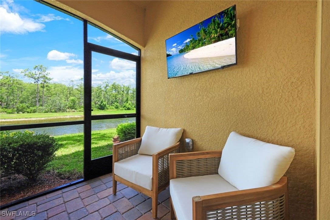 LOWEST PRICED 1ST FLOOR TREVI, WITH DESIRED WHITE KITCHEN, TURNKEY FURNISHED AND GORGEOUS LAKE VIEWS, TO ENJOY ALL THAT TREVISO BAY HAS TO OFFER! Welcome to Treviso Bay, a spectacular golf community situated around the Rookery Bay National Estuary, offering an exceptional country club lifestyle and world class amenities in an unrivaled natural setting, with only a short drive to world famous 5Th Avenue South! With its crisp & clean white kitchen & baths, this water view condo boasts coastal decor, with custom millwork, crown molding and painting in cool neutral tones. Upgraded no-see-um screens were recently installed on the lanai for added comfort and pleasure, while enjoying the quiet, private, natural lake and preserve view. Covered parking space and storage closet for great convenience. Located only about 5 miles south of downtown Naples, Treviso Bay has thoughtfully woven the natural surroundings of the estuary waters and grasses, combined with first-class amenities in an acclaimed community. This Trevi 1st floor lake side condo is resort-style living at its best. Treviso Bay features the resort lifestyle with multiple clubhouses offering fine dining and casual restaurants, lagoon style pool, state of the art fitness center, aerobics studio, full spa services, grilling stations, bocce. Residents also enjoy the tennis center, pro shops and the ever-popular pickle ball courts, right down the street at the nearby clubhouse and community pool. Great location allows easy access to the first class dining, shopping and culture of 5th Avenue South, as well as the pristine sugar sand beaches of Naples and Marco Island. It's all here! Trevi has Social Membership, which gives off-season access to Treviso Bay's TPC Golf. INVESTOR ALERT: RENTED FOR SEASON AND SEASONAL RENTAL INCOME TRANSFERS AT CLOSING, A BOOST OF INCOME TO OFFSET THE ANNUAL COSTS!