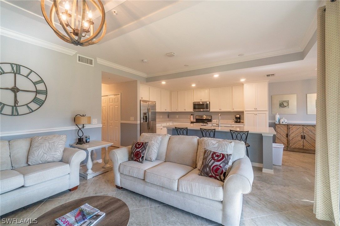 Immaculate 2BR/2BA turnkey furnished condo in Treviso Bay! Enjoy stunning lake views from your screened lanai. This light-filled residence showcases stunning panoramic lake views from both inside the unit and on the back lanai. Enjoy the ultimate convenience of ground-floor living—no stairs or elevator needed—making coming and going a breeze. The open floor plan features a spacious kitchen and crown molding in the main living areas. Relax on your lanai with serene lake and preserve views, and take advantage of plenty of storage, including a separate storage unit, for your bikes, beach chairs and more. Enjoy the many 5-star amenities: two clubhouses with dining, a resort-style pool, pickleball, tennis, basketball, bocce, aerobics and fitness facilities, spa and beauty salon, sauna, hot tub, grills, off-season access to the 18-hole Arthur Hills golf course, and much more. Treviso Bay is located only a short drive from downtown 5th Ave, the Isles of Capri, Marco Island and the many beaches of Southwest Florida.