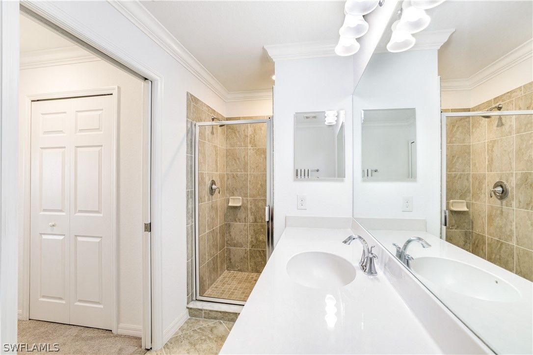 Welcome to Treviso Bay, an exceptional gated golf and tennis community in Naples, Florida, where refined resort-style living is a way of life. This rarely available Arbor model residence offers a seamless blend of luxury, comfort, and sophisticated design. The beautifully maintained condominium features two spacious bedrooms and two elegantly appointed bathrooms. The primary suite is a private retreat, complete with two walk-in closets, plush carpeting, and a well-designed bath featuring white cabinetry and a sleek glass-enclosed shower. Intricate moldings, ceiling fans, and a tasteful neutral color palette enhance the home’s polished aesthetic throughout. The open-concept floor plan is thoughtfully designed for both everyday living and entertaining. At the center of the home is a stunning chef’s kitchen appointed with a quartz island and breakfast bar, flowing effortlessly into the dining area and expansive great room. Designer, high-end neutral furnishings complement the space, creating an inviting and sophisticated atmosphere ideal for hosting gatherings or relaxing in comfort. Step onto your private lanai and enjoy serene lake views and tranquil natural preserve surroundings, highlighted by a lighted water fountain that enhances the peaceful ambiance. Ideally located just minutes from Naples’ renowned white-sand beaches, upscale shopping, and fine dining, Treviso Bay offers an unparalleled lifestyle. Residents enjoy access to world-class amenities including a resort-style pool and spa, tennis, pickleball, and bocce courts, a state-of-the-art fitness center, scenic walking and biking paths, satellite pools, and on-site dining options ranging from polished-casual fare to elegant club dining. A full-service salon and spa further elevate the community experience. With its prime location near the boutiques, restaurants, and vibrant culture of downtown Naples, this residence is perfectly suited as a full-time home, seasonal retreat, or investment opportunity. Experience the ultimate in resort living within one of Naples’ most sought-after communities. Your opportunity to own a piece of paradise awaits.
