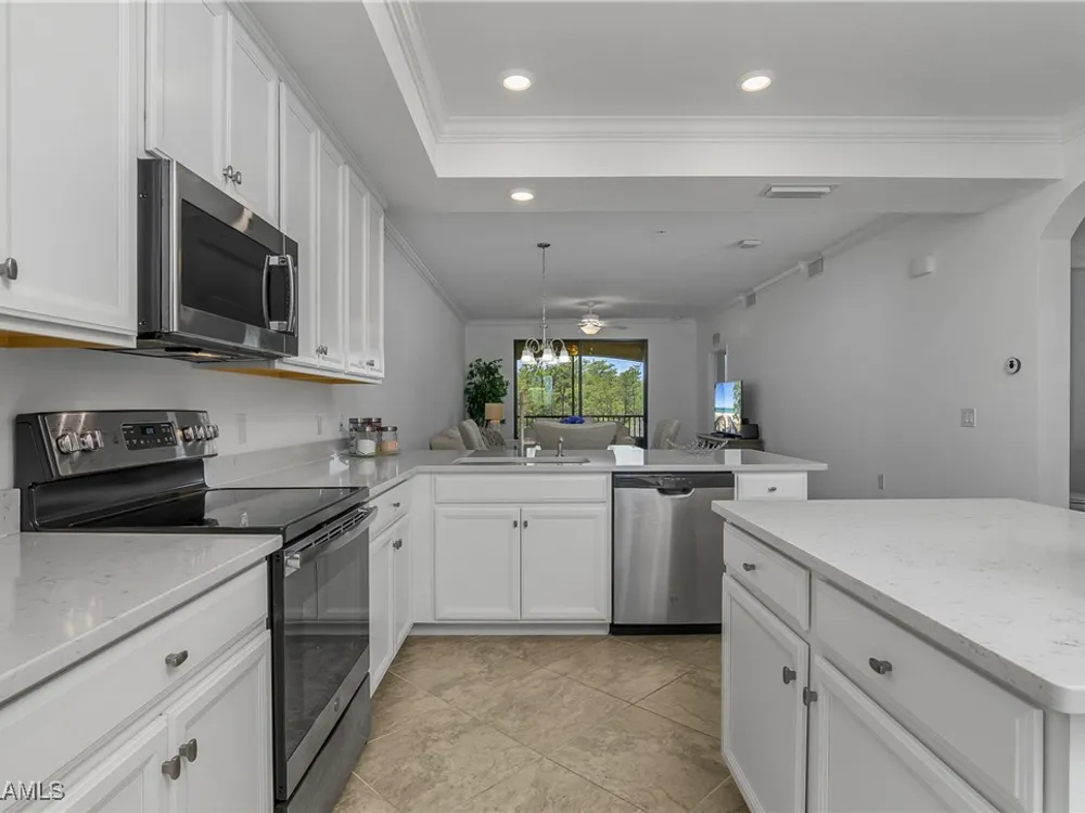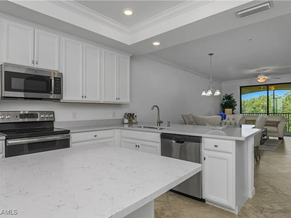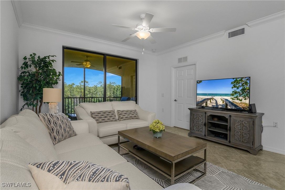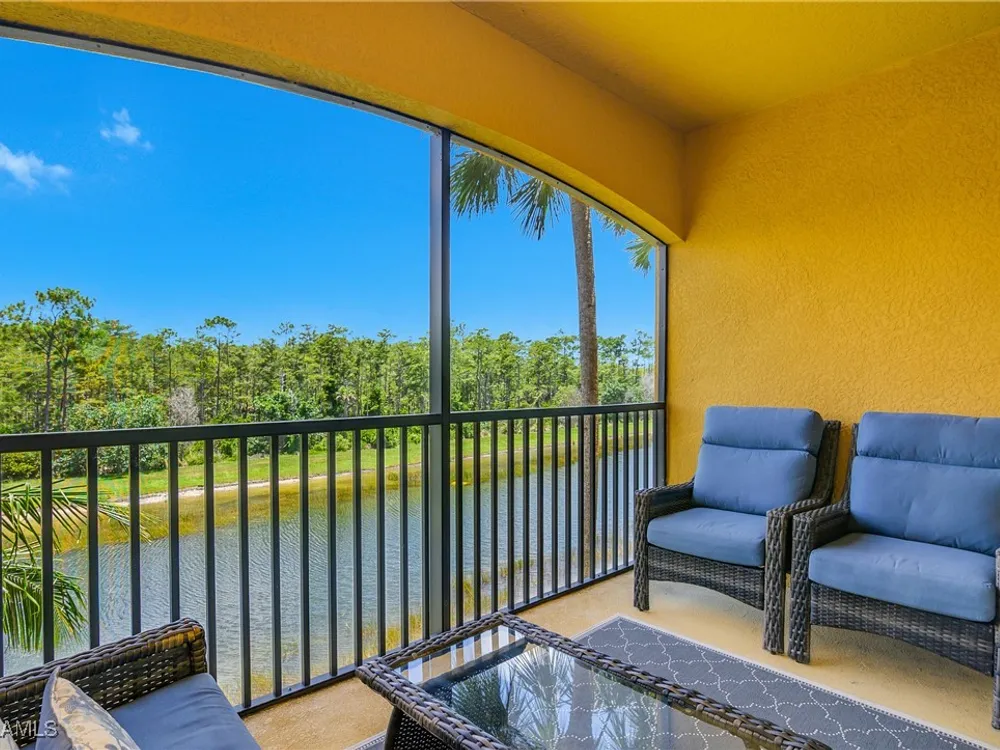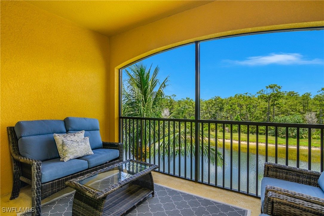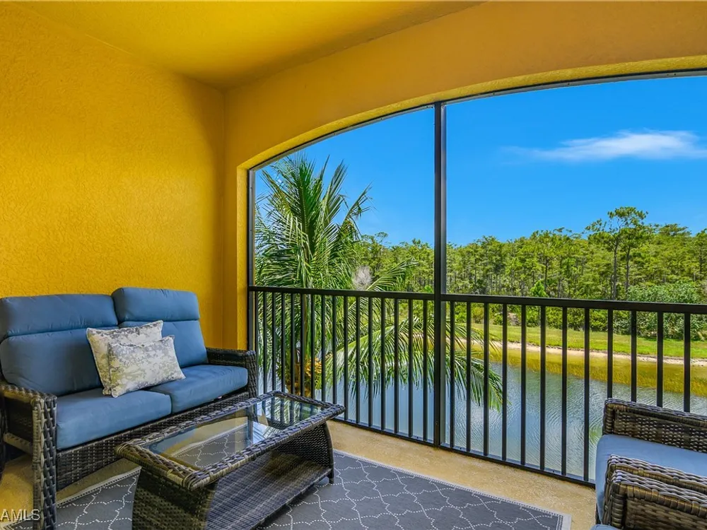 Live like others vacation in this beautiful 2 bed / 2 bath Arbor model condo featuring an open and airy floor plan filled with natural light. This furnished condo provides a welcoming and stylish retreat with a neutral palette and thoughtful finishes throughout. Enjoy your morning coffee or afternoon reading on your peaceful screen lanai and enjoy the sights and sounds of nature as you admire the lake and Rookery Bay Preserve. As a social membership property, residents enjoy access to all of Treviso Bay’s world-class amenities without the cost of bundled golf. Treviso Bay offers a resort-style experience with a stunning clubhouse, lagoon resort pool, hot tub, outdoor poolside restaurant and bar, full-service spa, cutting-edge fitness center, 8 tennis and 8 pickleball courts, 3 bocce courts, and miles of walking and biking paths. The main clubhouse overlooks the private TPC golf course (available to social members May - October) and offers indoor and outdoor dining and bars, a large event room, private dining room, activities room, library, business center, lounge locker rooms, a golf pro shop, and Arthur's snack shop. The community’s social calendar is full of events, dining options, clubs, leagues, and activities, creating a vibrant lifestyle just minutes from downtown Naples and the beaches.