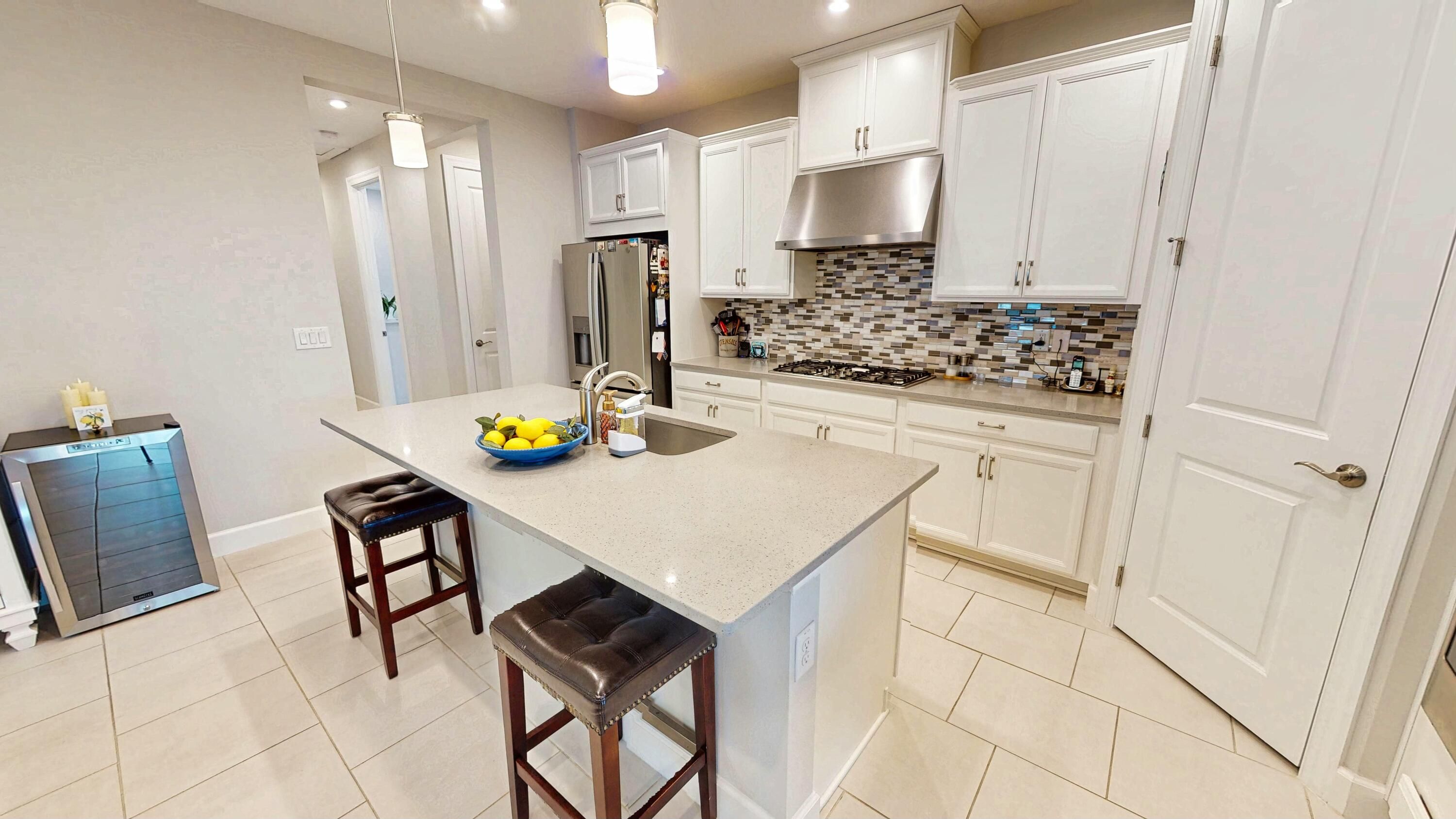 This stunning 3-bedroom, 2.5-bathroom former model home is packed with premium upgrades and thoughtfully designed for both comfort and style. From the moment you step inside, you're greeted by an open-concept floor plan that seamlessly blends elegance and functionality. The gourmet kitchen is a chef's dream, featuring 42-inch cabinetry, sleek quartz countertops, a gas cooktop, and high-end stainless-steel appliances. A spacious island provides additional prep space and casual seating, making it perfect for both everyday living and entertaining. Flowing effortlessly from the kitchen, the large family room is adorned with stunning tile flooring and abundant natural light, creating a warm and inviting atmosphere. The oversized master suite is a true retreat, offering plenty of space for relaxation and featuring an ensuite bathroom with his-and-her sinks, a large stand-up shower with custom tile work, and an expansive walk-in closet that conveniently connects to the laundry room for ultimate ease. The second and third bedrooms are versatile and well-sized, perfect for guests, a home office, or a creative space, and are served by a stylish second full bathroom. A half bath at the front of the home provides added convenience, making it ideal for visitors. Outdoor living is just as impressive, with a peaceful covered and screened lanai that offers a private retreat to enjoy morning coffee, outdoor dining, or simply unwinding in the fresh air. As a former builder's model home, this property is loaded with high-end finishes, custom upgrades, and superior craftsmanship throughout. With its functional layout, luxurious details, and move-in-ready appeal, this home is truly a must-see!