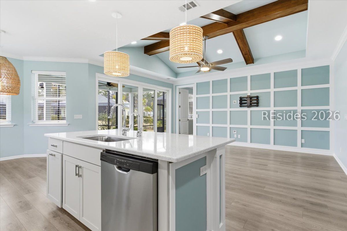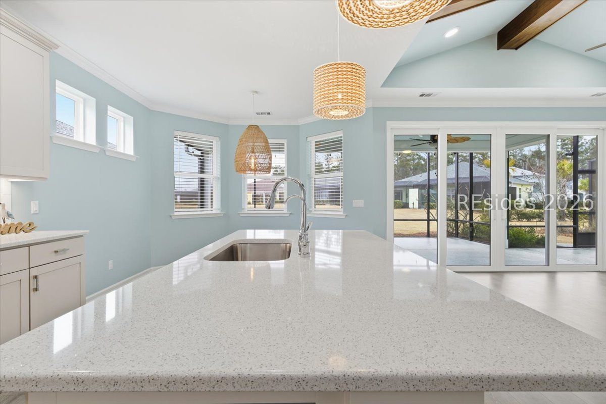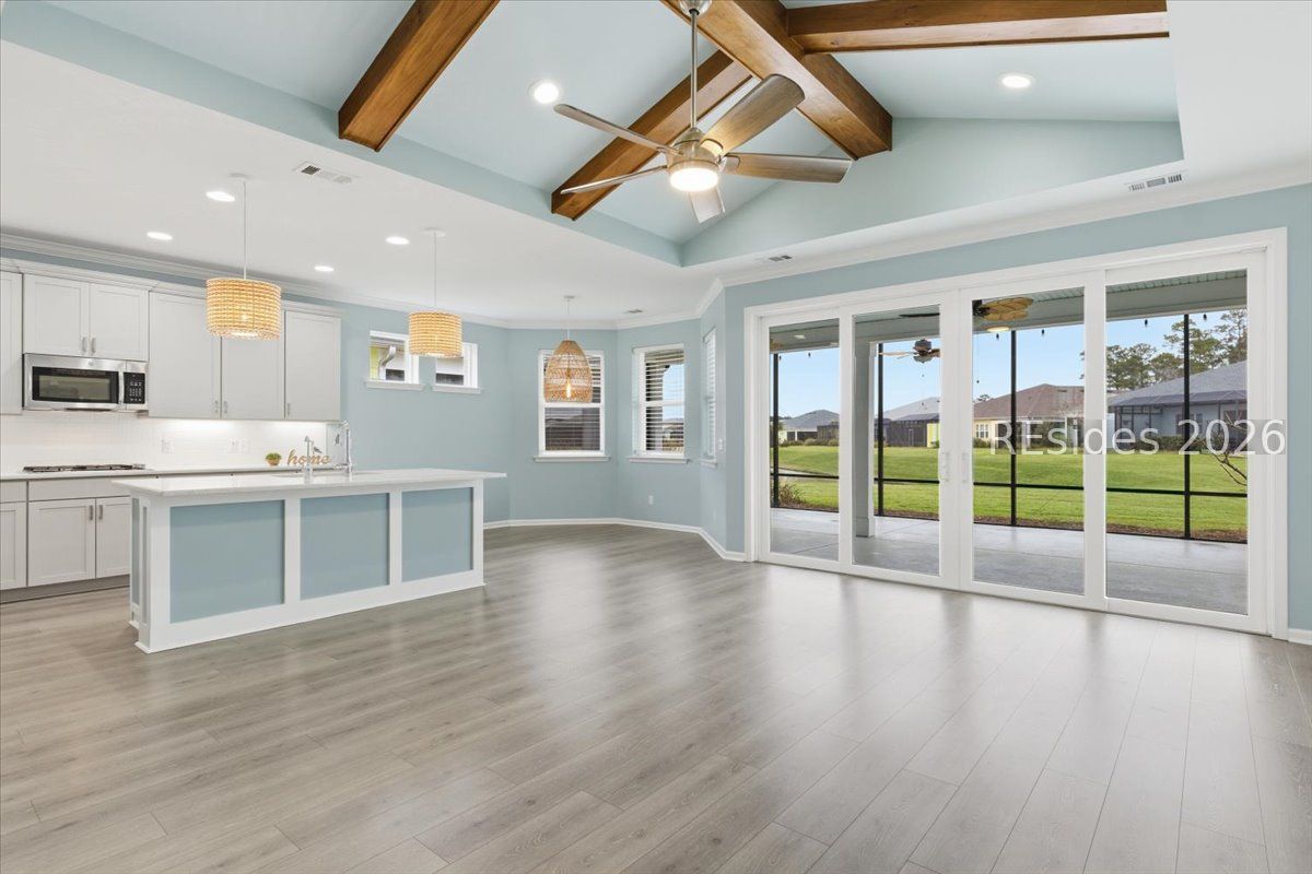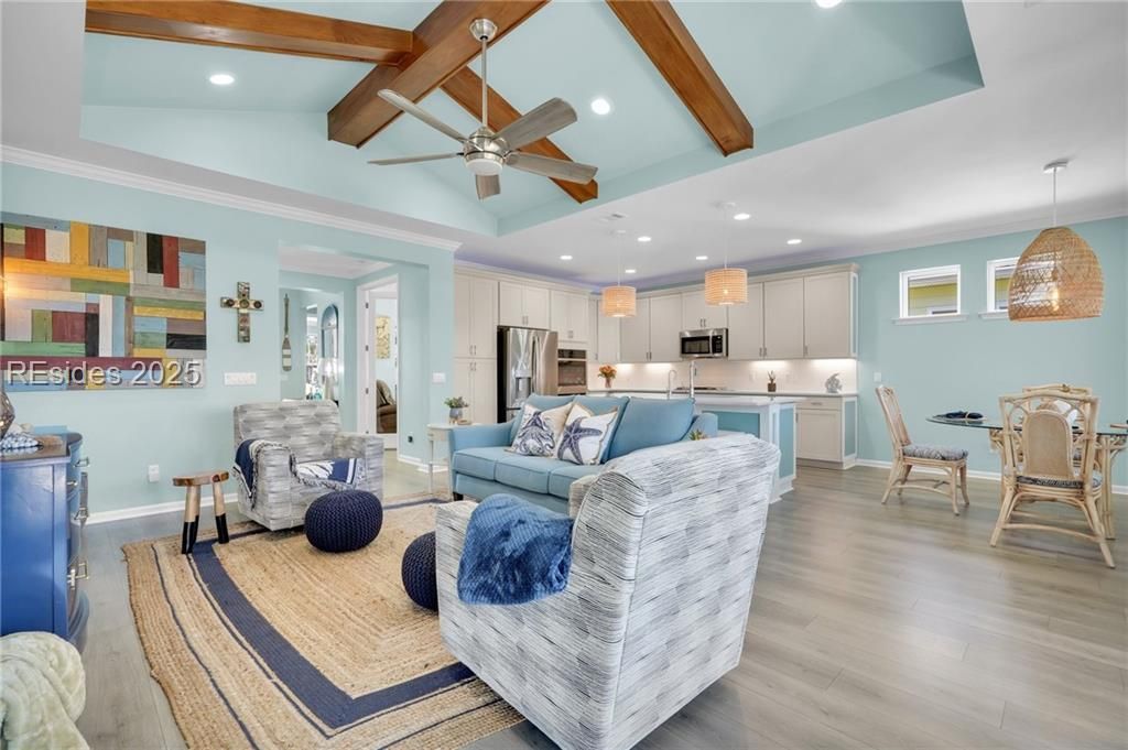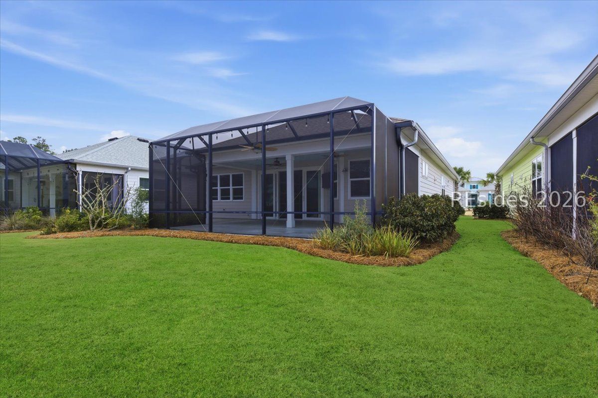 STEP INTO ISLAND TIME and discover the art of living where you vacation-where every sunrise is a gentle invitation to relax and every sunset is a celebration among friends. Your own piece of paradise in a vibrant 55+ active lifestyle community, Latitude Margaritaville, where the spirit of the islands greets you with palm-fringed landscapes, tropical homes, and a pace that lets you savor every moment. A community where neighbors become friends and is designed for active adults seeking connection, comfort, and adventure. As you walk into this Coconut model, you will experience an ambiance of effortless exotic escape and meticulous attention to detail with thoughtful upgrades. Entertain with flair thanks to a stylish dry bar and beverage center. The open concept kitchen/living room/dining area boasts level 2 quartz counters, 42" cabinets with crown molding, cabinet lighting, stunning beams, and shiplap accents, combining island-inspired charm with modern sophistication. The primary custom closet includes a personal safe, while the whole house water filtration system ensures purity in every sip and shower. An epoxy garage floor adds durability and polish, rounding out a suite of upgrades that make daily living a breeze. Extended screened in lanai is complete with finished floor, ceiling fans, TV, patio lights, and motion light. Get that hot tub you always wanted - extra lanai added and the voltage box is already there! Enjoy the slower rhythms of coastal living with a lagoon view where laughter echoes from sunlit patios and sunsets are reminiscent of a permanent vacation-whether you're working remotely or embracing retirement to the fullest. Enjoy the convenience of being just minutes from Savannah, GA, the picturesque charm of Beaufort, and the world-class beaches of Hilton Head Island. Your new home is nestled in a phase that's already complete-no construction, just the beauty of mature landscaping and quick access to all amenities. Whether you're seeking adventure outside or serenity within, this location offers the best of both worlds. Don't just dream about fun and excitement in your older years-make it your reality. Schedule your private tour today and discover this island vibe house is where the good life, a vibrant community, and coastal tranquility come together in a setting you'll love to call home! IT'S NOT SOMEWHERE FAR AWAY, IT'S JUST ONE DECISION CLOSER!