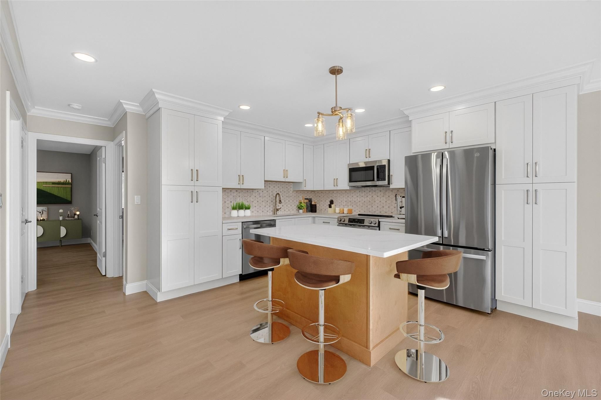 - Breakfast Bar, Ceiling Fan(s), Chandelier, Crown Molding, Kitchen Island, Open Floorplan, Open Kitchen, Pantry, Quartz Countertops, Recessed Lighting, Washer/Dryer Hookup