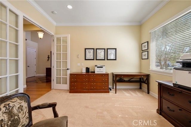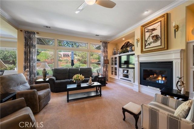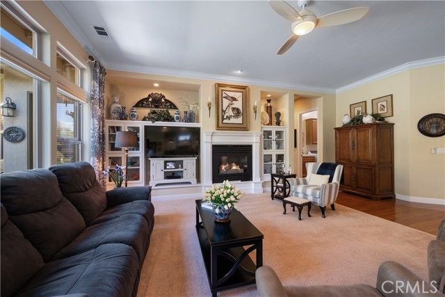 Experience effortless living in this beautifully maintained single-level custom home, ideally situated within the sought-after, gated golf course community of Cypress Ridge. Designed with both comfort and lifestyle in mind, this residence offers 3 spacious bedrooms, 3.5 bathrooms, a 3-car garage, and an oversized office—perfect for working from home, creative pursuits, or a private retreat. From the moment you enter, you’ll appreciate the home’s airy ambiance, highlighted by high ceilings, elegant crown molding, rich hardwood flooring, and an abundance of natural light. The living room serves as a warm and inviting gathering space, featuring a fireplace with custom built-in cabinetry that adds both charm and functionality. Every detail reflects pride of ownership, creating a refined yet welcoming environment. The luxurious primary suite offers a true retreat, complete with a unique pass-through fireplace connecting the bedroom and spa-like bathroom. The primary bath is beautifully appointed with travertine tile, creating a serene, resort-inspired atmosphere. Step outside to your own private sanctuary—a fully fenced backyard surrounded by mature, thoughtfully curated landscaping that provides both beauty and tranquility. Whether enjoying a quiet morning coffee, entertaining guests, or simply unwinding, this outdoor space offers a true sense of escape. Additional features include a whole house water filtration system for enhanced comfort and peace of mind. Located just moments from a nearby park, this home seamlessly blends peaceful living with an active, outdoor lifestyle. Enjoy the charm and security of Cypress Ridge, a gated community with a staffed guard house, all for a low HOA of $152/month. This is more than a home—it’s a lifestyle.