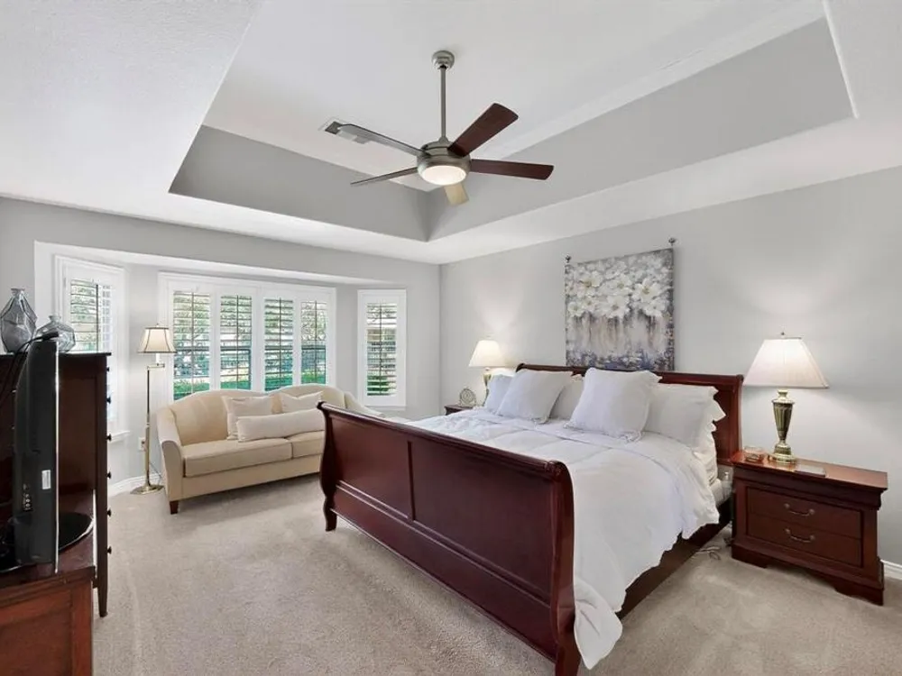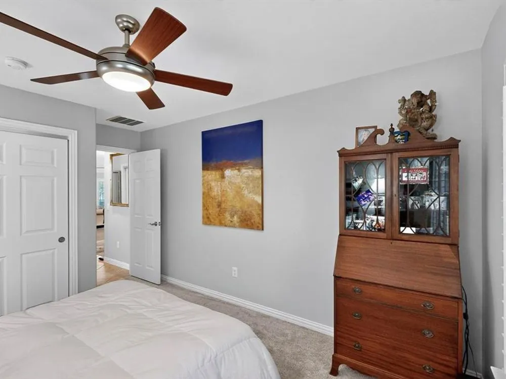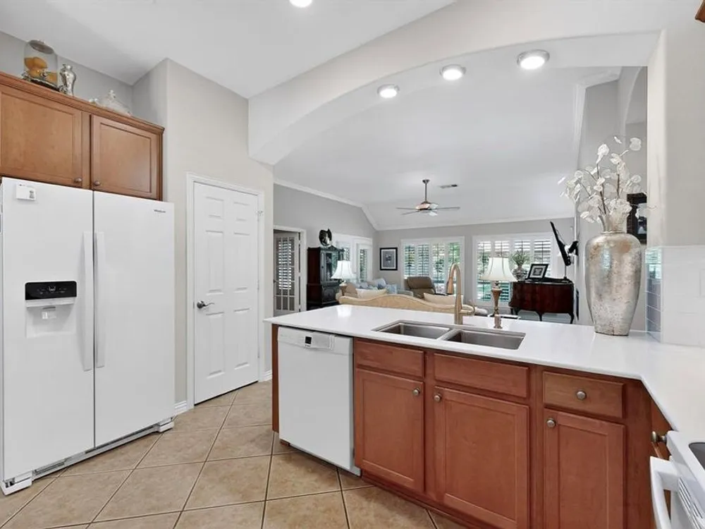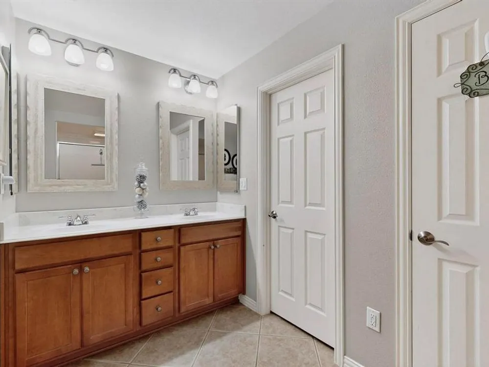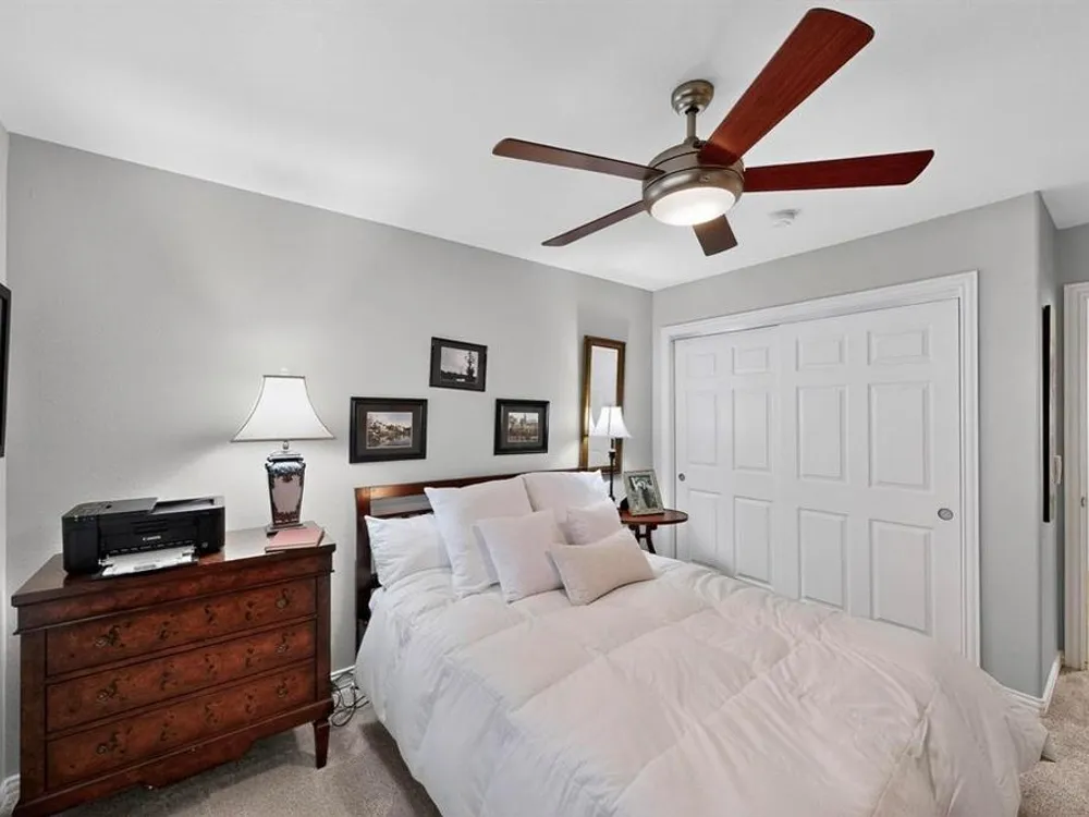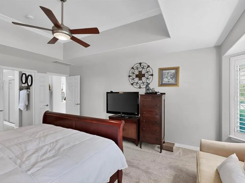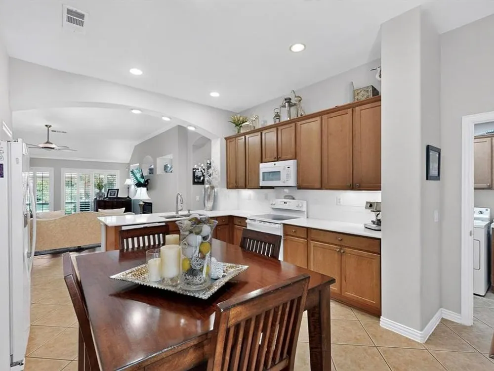 Welcome to this charming Oakmont model located in the award-winning community of Robson Ranch. Step inside and discover a home that blends comfort, elegance, and functionality. Plantation shutters grace every window, creating a timeless look and soft natural light throughout. The kitchen is bright and inviting, featuring quartz countertops, a classic subway tile backsplash, under-cabinet lighting, and ample cabinetry—a perfect space for both everyday meals and entertaining.The living room exudes warmth with its crown molding, electric fireplace, and lighted built-in shelving, offering a perfect setting for relaxing or hosting guests.Retreat to the primary suite, where a tray ceiling and bay window enhance the spacious feel. The bathroom features dual sinks, mirrored medicine cabinets, a linen closet, and a custom walk-in closet designed for exceptional storage and style. Guests will love their own private space in the second bedroom. The flex room, currently styled as a formal dining space, offers French doors for privacy and can easily serve as a home office, craft room, or intimate sitting area.Outdoor living shines here. Enjoy morning coffee or evening sunsets on the screened-in porch, leading to an extended concrete patio with a charming pergola and fenced yard. It’s an ideal setting for grilling, gardening, or simply soaking up the peaceful Texas evenings.Experience the best of Robson Ranch living—a vibrant, gated 55+ neighborhood offering resort-style living and an active social atmosphere. Residents enjoy a championship golf course, multiple clubhouses, pools, restaurants, creative arts studios, pickleball and tennis courts, and hundreds of clubs and events designed to make every day feel like a getaway.