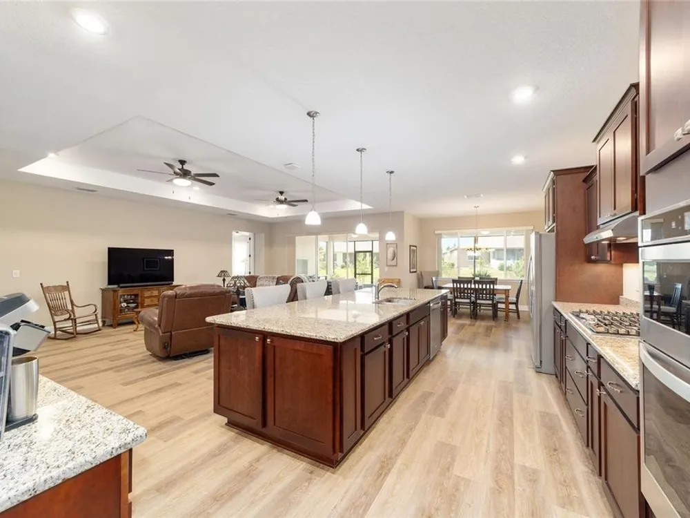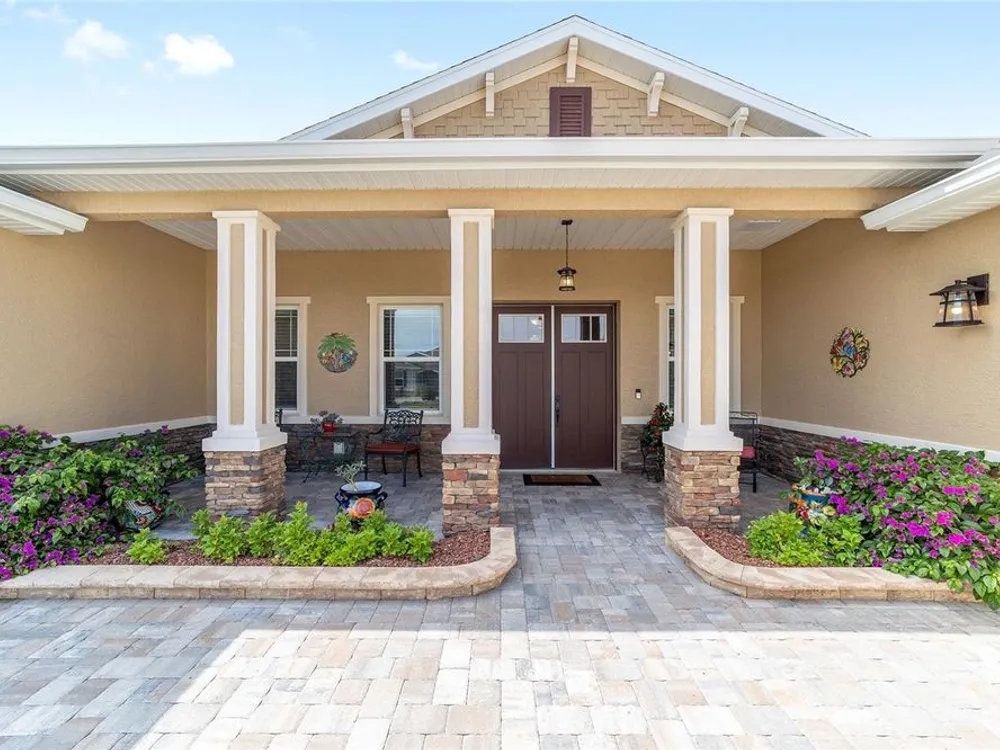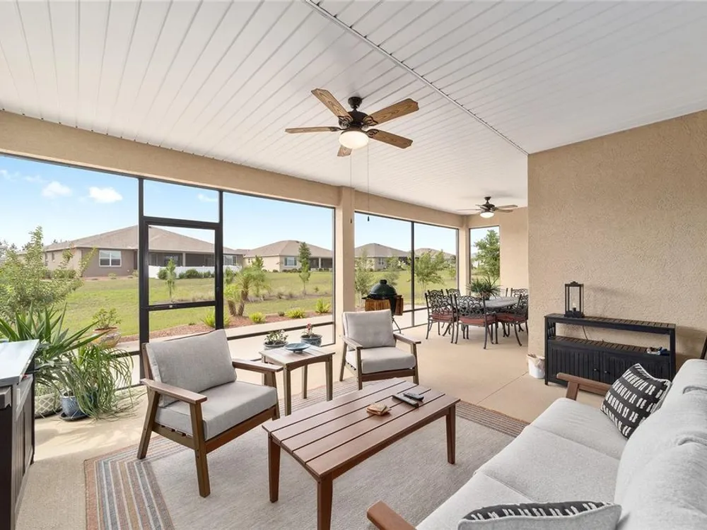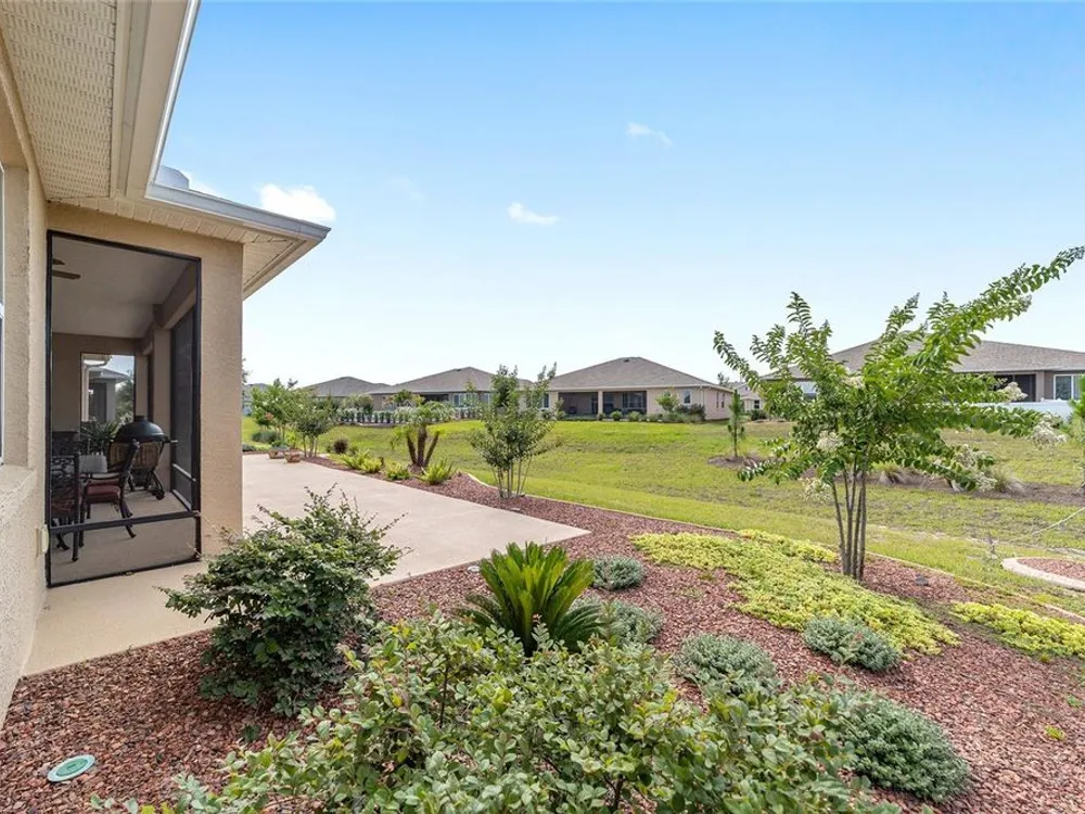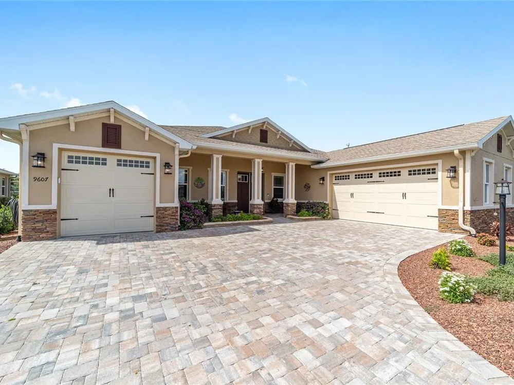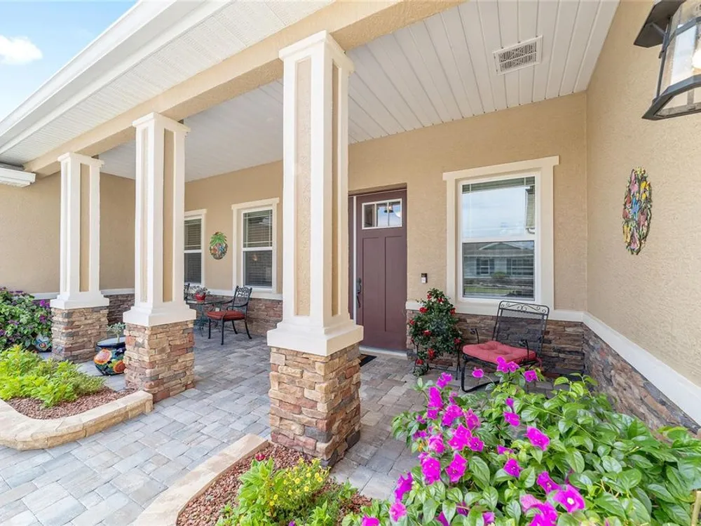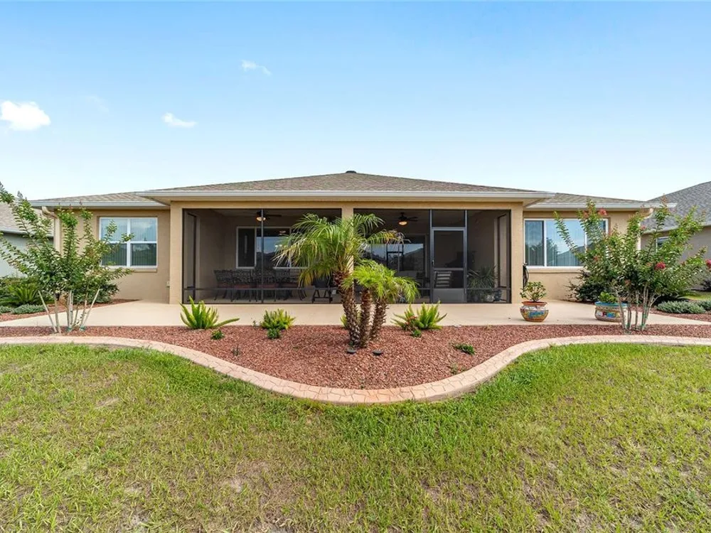 Welcome to this beautifully appointed Aberdeen model, located in the highly sought-after Ashford neighborhood of Candler Hills within the gated 55+ community of On Top of the World. This meticulously maintained home offers 2,893 sq ft of living space, seamlessly blending luxury, comfort, and functionality. Designed for versatile living, this home features two spacious owner suites with walk-in showers, a third bedroom and full bath, plus a generous flex room—perfect for a home office, craft space, or guest suite. The expansive open-concept living area showcases luxury vinyl flooring throughout and smart home technology for modern, energy-efficient living. The chef’s kitchen is a true showpiece, complete with under-cabinet lighting, upgraded finishes, recently installed travertine backsplash, and ample storage. Step outside to a screened lanai with a 3-ft extension and an additional concrete patio slab, ideal for outdoor dining, entertaining, or simply enjoying your private backyard retreat. The front yard features professionally landscaped, raised flower beds with custom stonework, adding curb appeal and beauty to your outdoor space. Additional highlights include a 2-car garage as well as a single 1 car garage. Other notable features are a widened paver driveway, whole-house water filtration/ softener system, and a gas stub ready for a future generator. Every detail has been thoughtfully considered for both style and functionality. Located in Ocala’s premier active adult community, you’ll enjoy resort-style amenities including golf, fitness centers, pools, clubs, and recreational facilities all golf-cart accessible within this vibrant neighborhood. Don’t miss your chance to own this exceptional home in one of Florida’s most desirable 55+ communities. Schedule your private showing today!