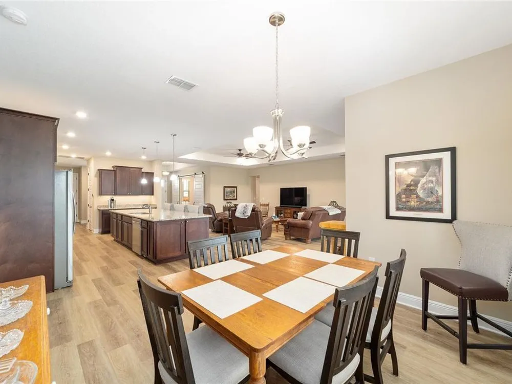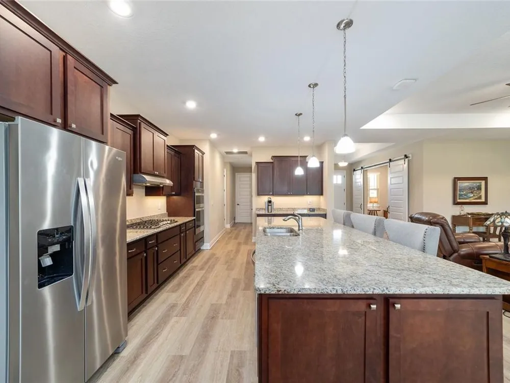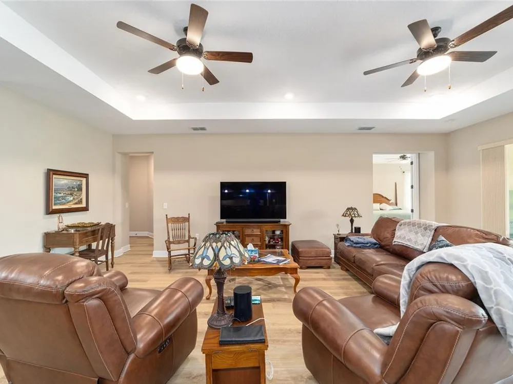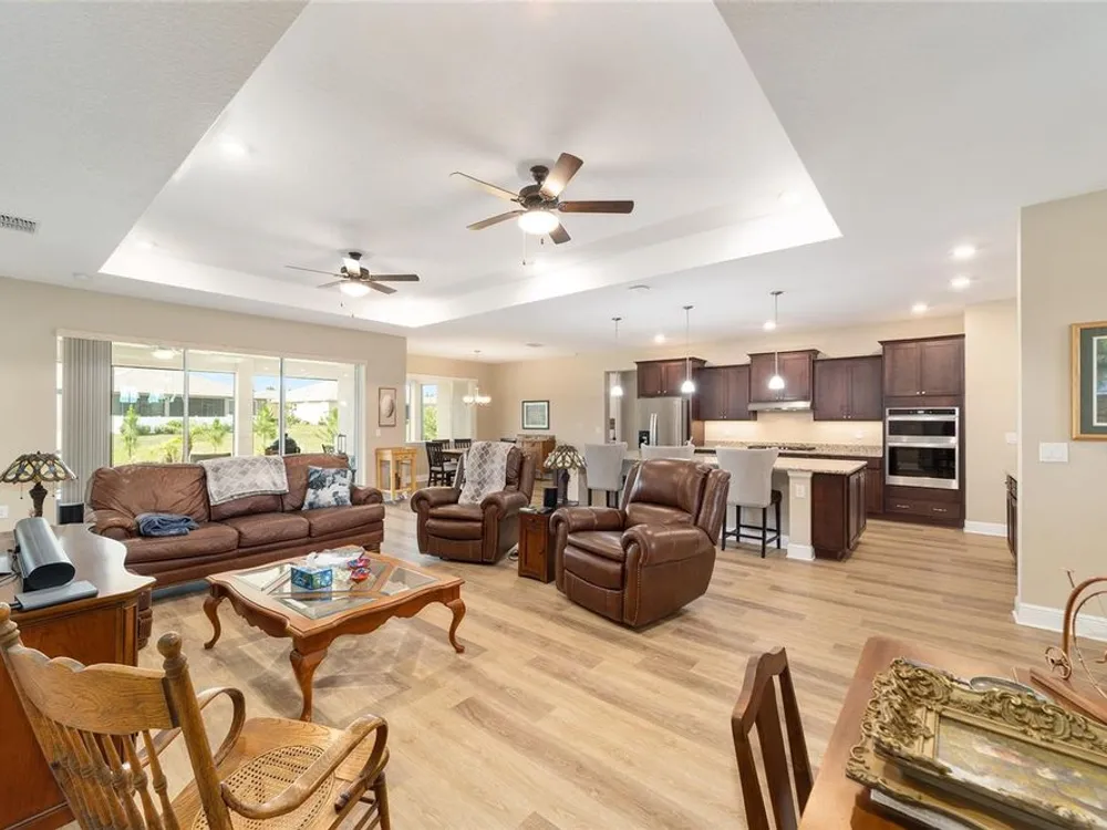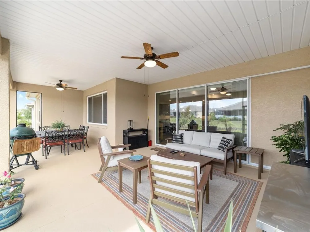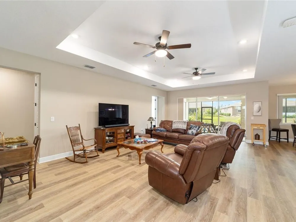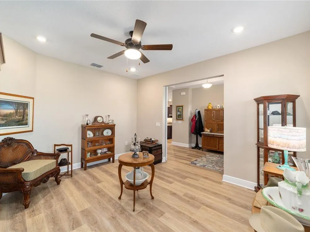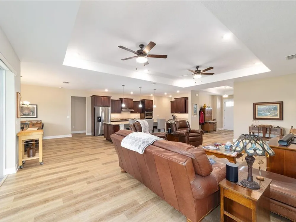 Welcome to this beautifully appointed Aberdeen model, located in the highly sought-after Ashford neighborhood of Candler Hills within the gated 55+ community of On Top of the World. This meticulously maintained home offers 2,893 sq ft of living space, seamlessly blending luxury, comfort, and functionality. Designed for versatile living, this home features two spacious owner suites with walk-in showers, a third bedroom and full bath, plus a generous flex room—perfect for a home office, craft space, or guest suite. The expansive open-concept living area showcases luxury vinyl flooring throughout and smart home technology for modern, energy-efficient living. The chef’s kitchen is a true showpiece, complete with under-cabinet lighting, upgraded finishes, recently installed travertine backsplash, and ample storage. Step outside to a screened lanai with a 3-ft extension and an additional concrete patio slab, ideal for outdoor dining, entertaining, or simply enjoying your private backyard retreat. The front yard features professionally landscaped, raised flower beds with custom stonework, adding curb appeal and beauty to your outdoor space. Additional highlights include a 2-car garage as well as a single 1 car garage. Other notable features are a widened paver driveway, whole-house water filtration/ softener system, and a gas stub ready for a future generator. Every detail has been thoughtfully considered for both style and functionality. Located in Ocala’s premier active adult community, you’ll enjoy resort-style amenities including golf, fitness centers, pools, clubs, and recreational facilities all golf-cart accessible within this vibrant neighborhood. Don’t miss your chance to own this exceptional home in one of Florida’s most desirable 55+ communities. Schedule your private showing today!