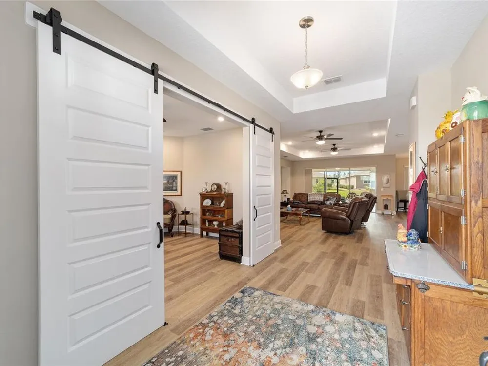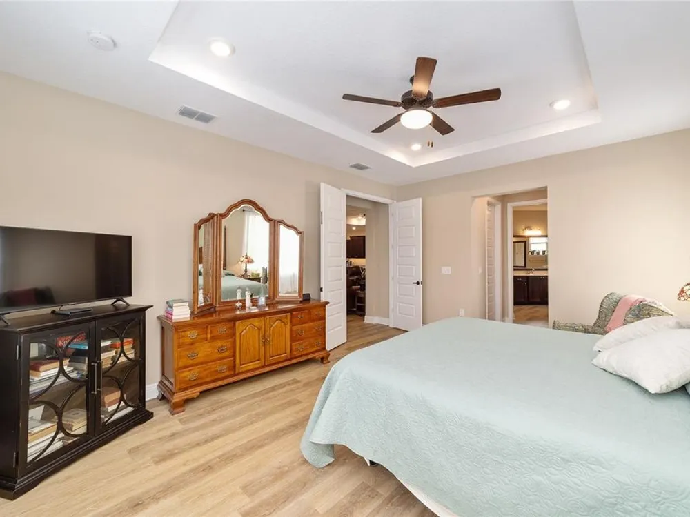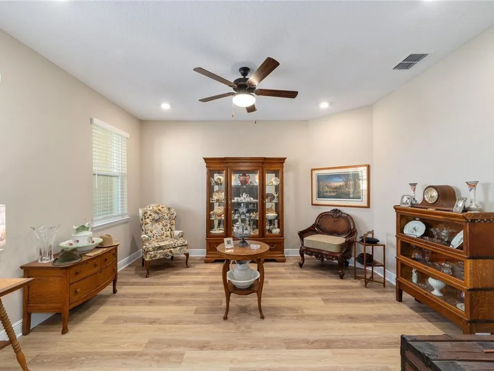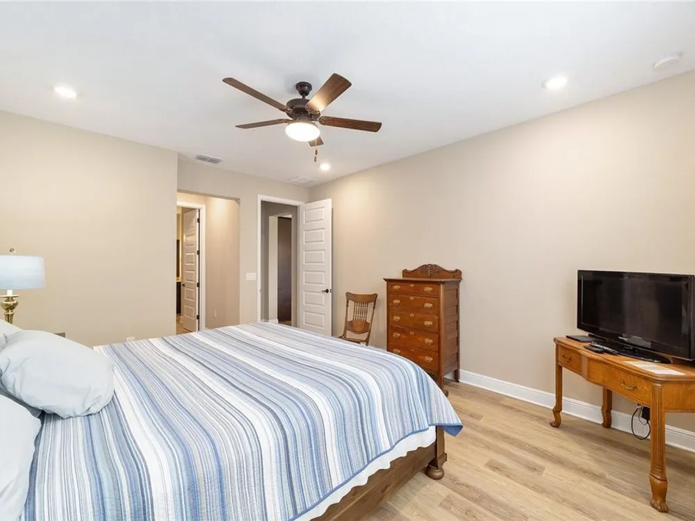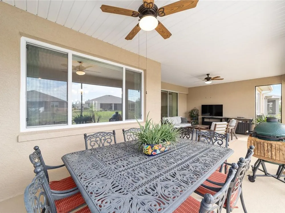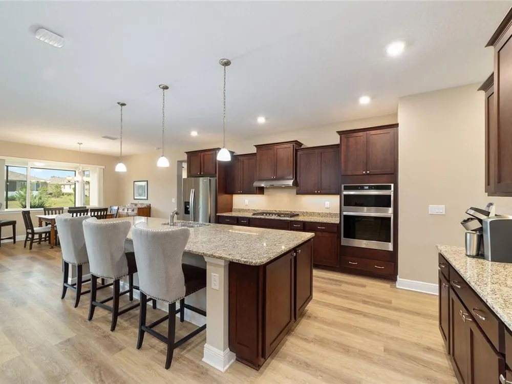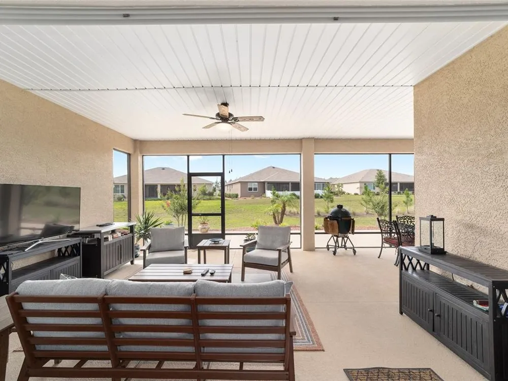 Welcome to this beautifully appointed Aberdeen model, located in the highly sought-after Ashford neighborhood of Candler Hills within the gated 55+ community of On Top of the World. This meticulously maintained home offers 2,893 sq ft of living space, seamlessly blending luxury, comfort, and functionality. Designed for versatile living, this home features two spacious owner suites with walk-in showers, a third bedroom and full bath, plus a generous flex room—perfect for a home office, craft space, or guest suite. The expansive open-concept living area showcases luxury vinyl flooring throughout and smart home technology for modern, energy-efficient living. The chef’s kitchen is a true showpiece, complete with under-cabinet lighting, upgraded finishes, recently installed travertine backsplash, and ample storage. Step outside to a screened lanai with a 3-ft extension and an additional concrete patio slab, ideal for outdoor dining, entertaining, or simply enjoying your private backyard retreat. The front yard features professionally landscaped, raised flower beds with custom stonework, adding curb appeal and beauty to your outdoor space. Additional highlights include a 2-car garage as well as a single 1 car garage. Other notable features are a widened paver driveway, whole-house water filtration/ softener system, and a gas stub ready for a future generator. Every detail has been thoughtfully considered for both style and functionality. Located in Ocala’s premier active adult community, you’ll enjoy resort-style amenities including golf, fitness centers, pools, clubs, and recreational facilities all golf-cart accessible within this vibrant neighborhood. Don’t miss your chance to own this exceptional home in one of Florida’s most desirable 55+ communities. Schedule your private showing today!