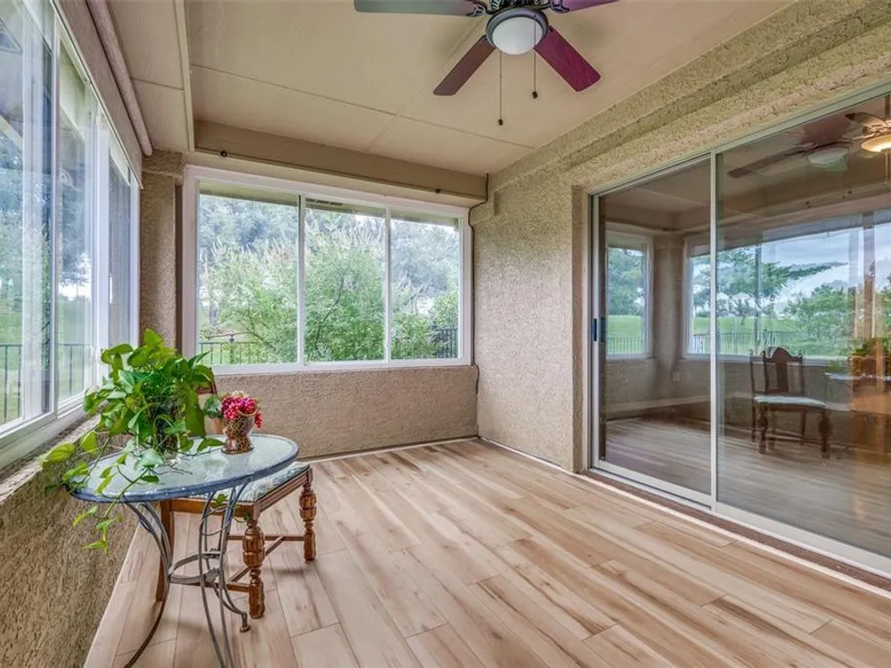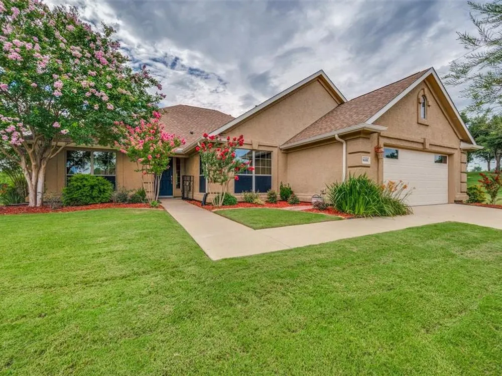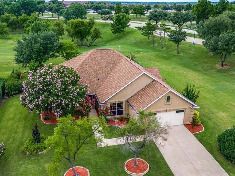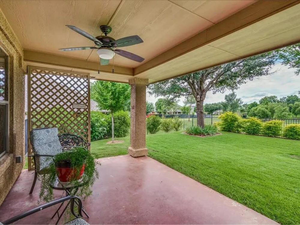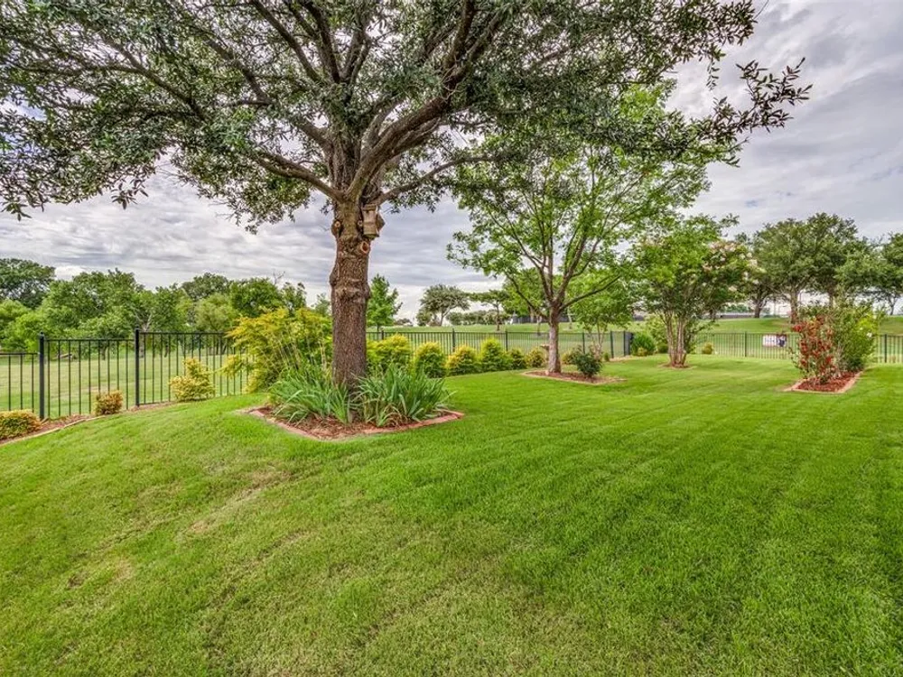 HUGE PRIVATE LOT WITH GREENBELT VIEW! Peaceful lot at the end of a cul-de-sac. Well done single level home with wonderful greenbelt views out every window! Home is in Robson Ranch: a 55 plus Active Adult Community. This is a Palmera Floor Plan that has been tastefully updated throughout. Home was just painted a neutral tone and is light and bright and MOVE IN READY. Large primary bedroom with a tray ceiling and has a sliding door out to enclosed patio with a beautiful view! The ensuite bathroom has raised cabinets with updated faucets and a walk in shower. This plan has one of the larger walk in closets with built in shelving and drawers. The kitchen has been modernized with granite countertops and a deep solid surface sink. Newer refrigerator is included! Sit at the kitchen island and have a view to the greenbelt or sit at the table and look out the many windows to the front yard with greenery all around. The laundry room has cabinetry and 2 large shelving units for extra storage and the washer and dryer are included! The oversized garage can fit 2 cars plus a golf cart and also includes a generator with built in outlet to power the home in case of an outage. Because this wonderful home is on a cul-de-sac, there is plenty of parking when you have guests. Two thirds of the back patio has been enclosed with windows and is heated and cooled. The lot is surrounded by open green space giving the feel of a much larger lot with privacy! Location of this home gets an A plus being walking distance to pickleball, pool, gym, driving range, putting green, the restaurant, bar and bocce courts. Make a good move and come see this peaceful home before it's gone! For a completely immersive view at this home and to use AI to remove furniture, measure spaces and literally walk this home, go to Homes dot com for the 3D Matterport