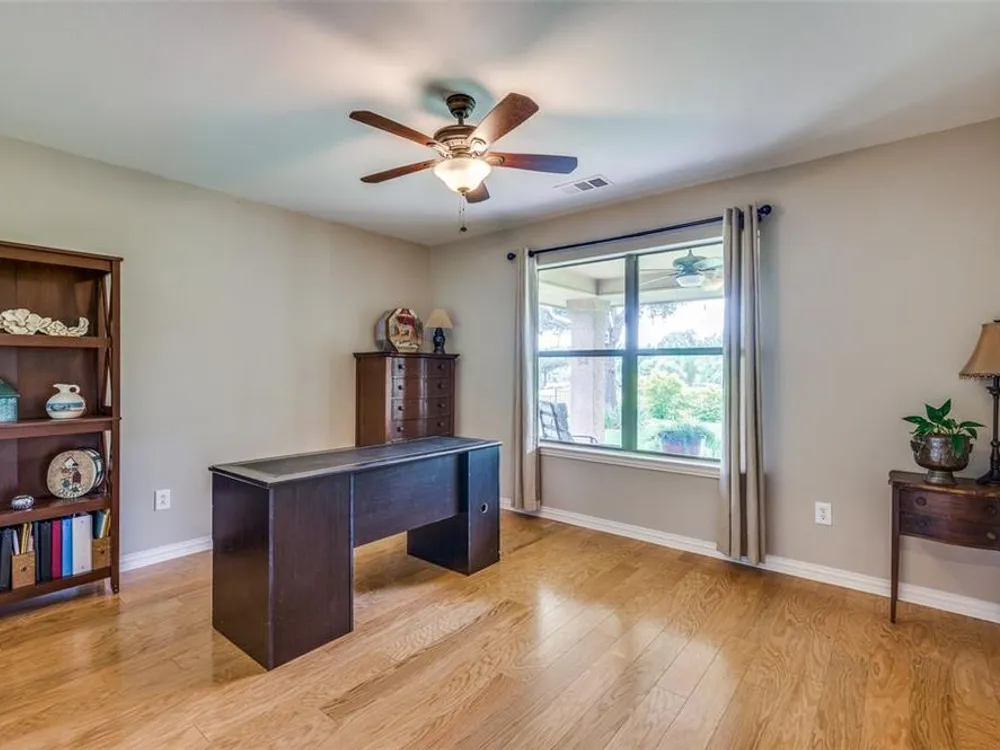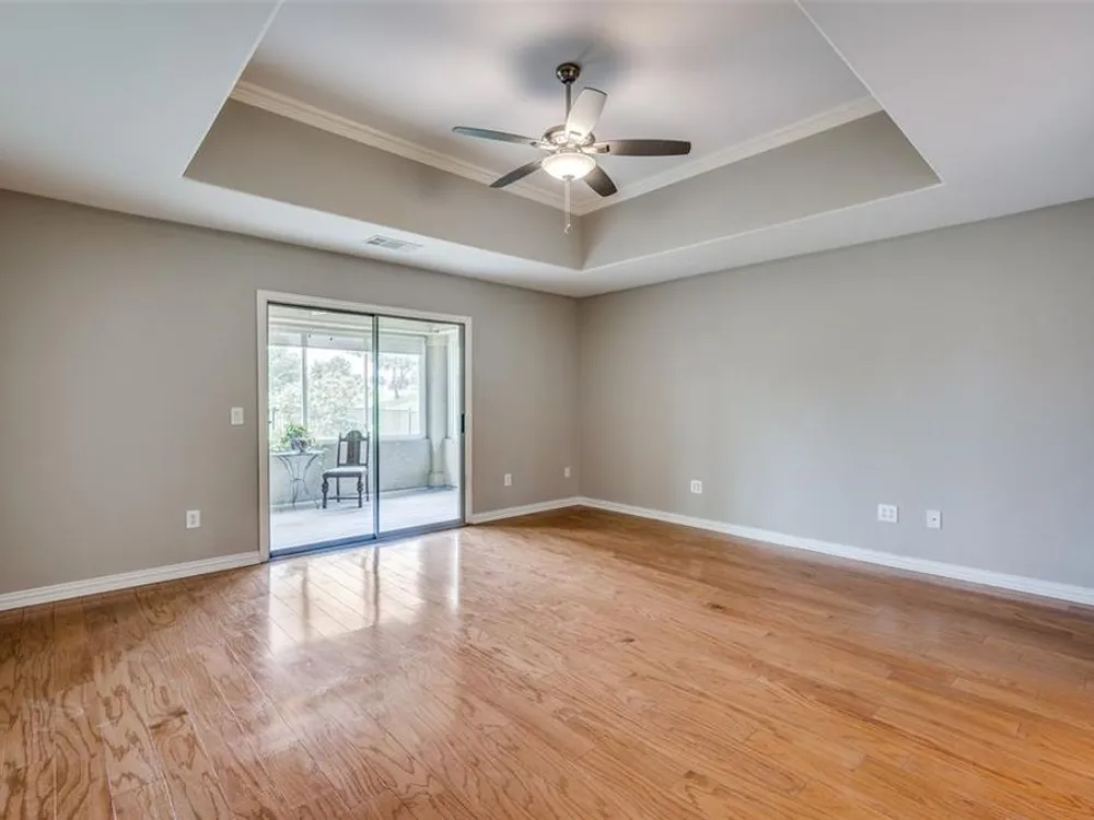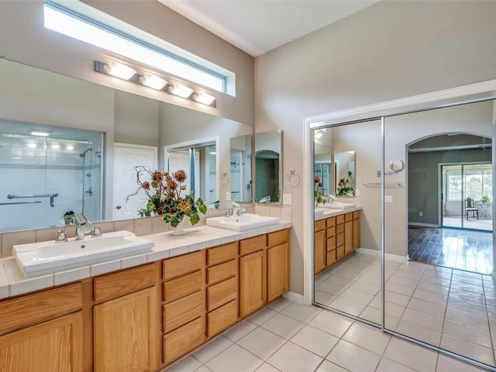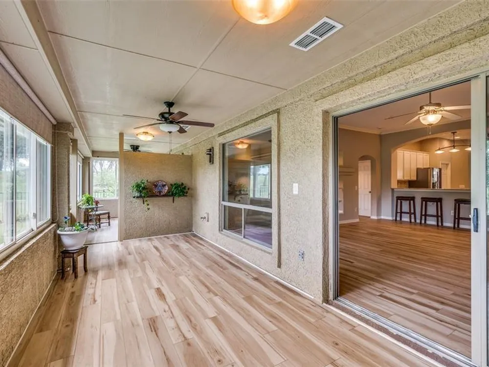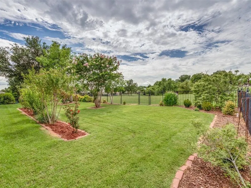 HUGE PRIVATE LOT WITH GREENBELT VIEW! Peaceful lot at the end of a cul-de-sac. Well done single level home with wonderful greenbelt views out every window! Home is in Robson Ranch: a 55 plus Active Adult Community. This is a Palmera Floor Plan that has been tastefully updated throughout. Home was just painted a neutral tone and is light and bright and MOVE IN READY. Large primary bedroom with a tray ceiling and has a sliding door out to enclosed patio with a beautiful view! The ensuite bathroom has raised cabinets with updated faucets and a walk in shower. This plan has one of the larger walk in closets with built in shelving and drawers. The kitchen has been modernized with granite countertops and a deep solid surface sink. Newer refrigerator is included! Sit at the kitchen island and have a view to the greenbelt or sit at the table and look out the many windows to the front yard with greenery all around. The laundry room has cabinetry and 2 large shelving units for extra storage and the washer and dryer are included! The oversized garage can fit 2 cars plus a golf cart and also includes a generator with built in outlet to power the home in case of an outage. Because this wonderful home is on a cul-de-sac, there is plenty of parking when you have guests. Two thirds of the back patio has been enclosed with windows and is heated and cooled. The lot is surrounded by open green space giving the feel of a much larger lot with privacy! Location of this home gets an A plus being walking distance to pickleball, pool, gym, driving range, putting green, the restaurant, bar and bocce courts. Make a good move and come see this peaceful home before it's gone! For a completely immersive view at this home and to use AI to remove furniture, measure spaces and literally walk this home, go to Homes dot com for the 3D Matterport