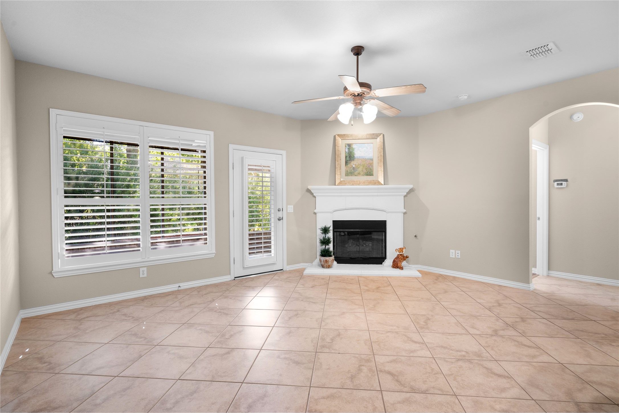 Welcome to this meticulously maintained, move-in-ready 1.5-story home in the Prestigious GATED 50+ community of Heritage Ranch. Well landscaped Over sized Lot. This stunning 2-bedroom, 2-bath residence with a den, upper bonus room, and a spacious 2-car garage offers luxurious living paired with top-tier amenities. Step inside to find a bright and open floor plan adorned with 12in ceramic tile floors and plantation shutters throughout. The expansive family room, featuring a cast stone fireplace, flows seamlessly into the gourmet kitchen—complete with a walk-in pantry, window seat, and formal dining room accented by a beautiful chandelier. Crown molding in entry, office and dining rm, plantation shutters, extended driveway w pave stone, extra storage & work bench in garage. Need a quiet spot to work or unwind? The private study or den offers the ideal escape. The serene primary suite includes Pergo flooring, an ensuite bath, and a generous walk-in closet. A versatile upstairs bonus room provides endless options—perfect for a third bedroom, fitness space, media room, or office. You'll appreciate the convenience of extra cabinetry in the bathrooms and utility room, as well as a fully floored attic for additional storage. Outdoors, relax on your screened-in porch or admire the beauty of your oversized lot, complete with a large side patio and pergola. The spacious garage includes dedicated storage space or room for a golf cart and comes with built-in shelving and a workbench. Recent updates include a replaced roof and water heater (2017). As part of the sought-after Heritage Ranch community, enjoy exclusive access to an 18-hole championship golf course, tennis and pickleball courts, fitness center, clubhouse, lake, walking paths, on-site restaurants, and more. Ideally located near shopping, dining, medical facilities, and major highways (121 & 75), this home offers the best of relaxed elegance and convenience.