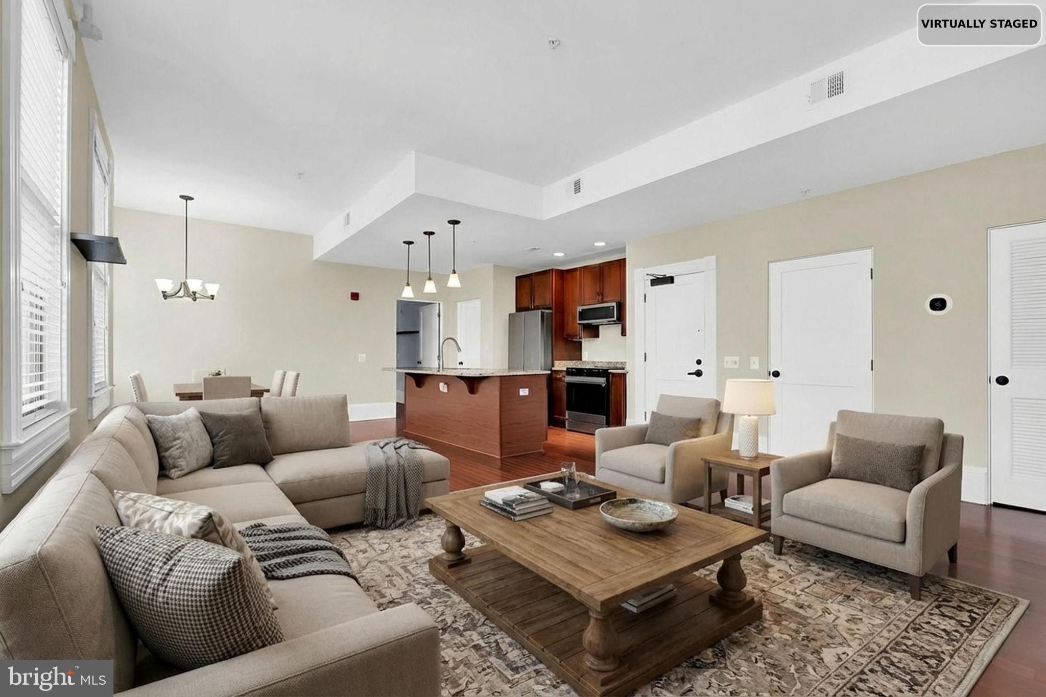 - Combination Kitchen/Dining, Combination Kitchen/Living, Dining Area, Entry Level Bedroom, Flat, Kitchen - Eat-In, Kitchen - Island, Upgraded Countertops, Wood Floors, Floor Plan - Open, Recessed Lighting, Sprinkler System