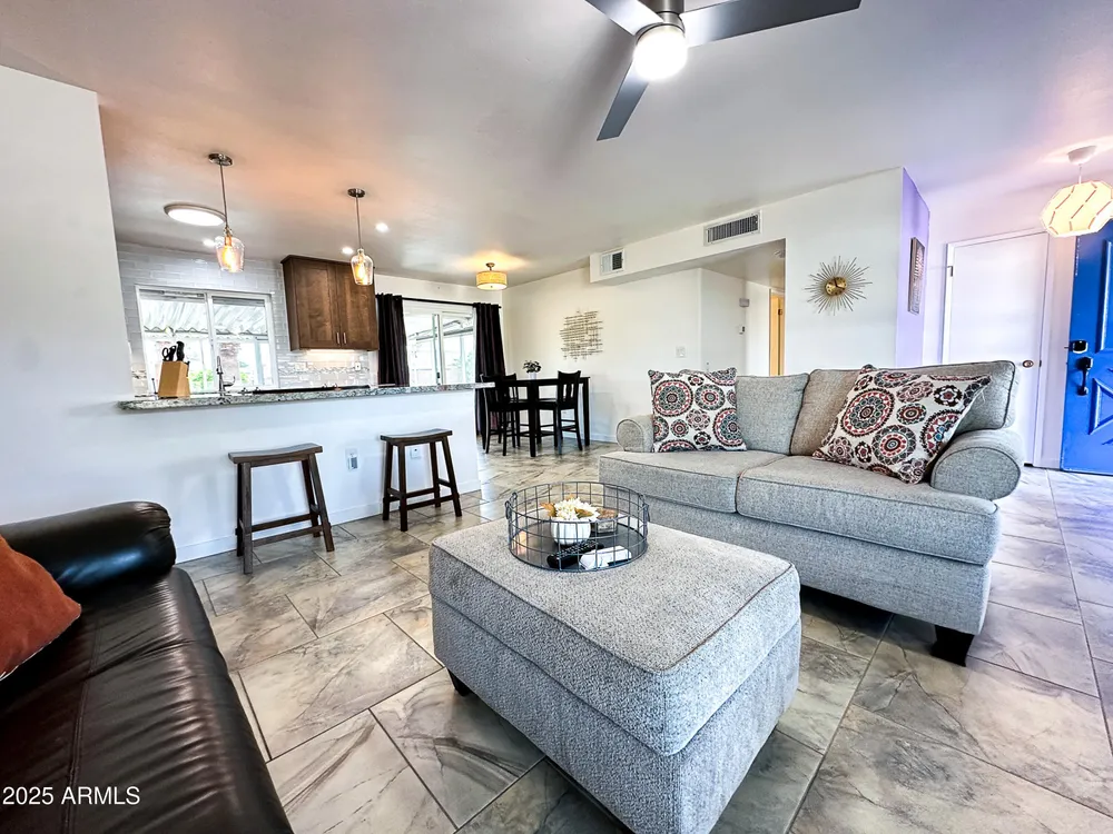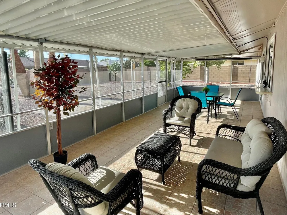 Enjoy the best of Sun City in this quiet, ideally located 2 bed 2 bath home. Recently updated with tile flooring, granite counters, a gorgeous kitchen, and modern bathrooms. No carpet anywhere, and minuets from shopping, dining, and entertainment. This meticulously maintained home is a delight. Access to Sun City recreation centers and pools. Relax on the spacious screened in patio, perfect for enjoying sunrise or sunset. Explore nearby gold courses, scenic walking trails, and endless activities.