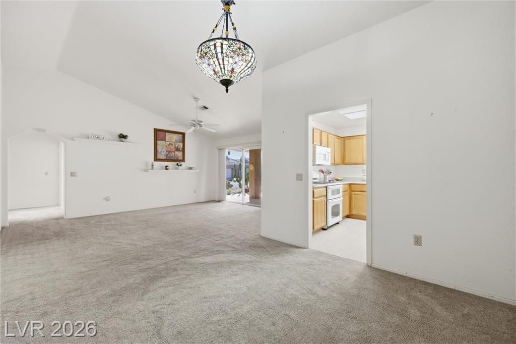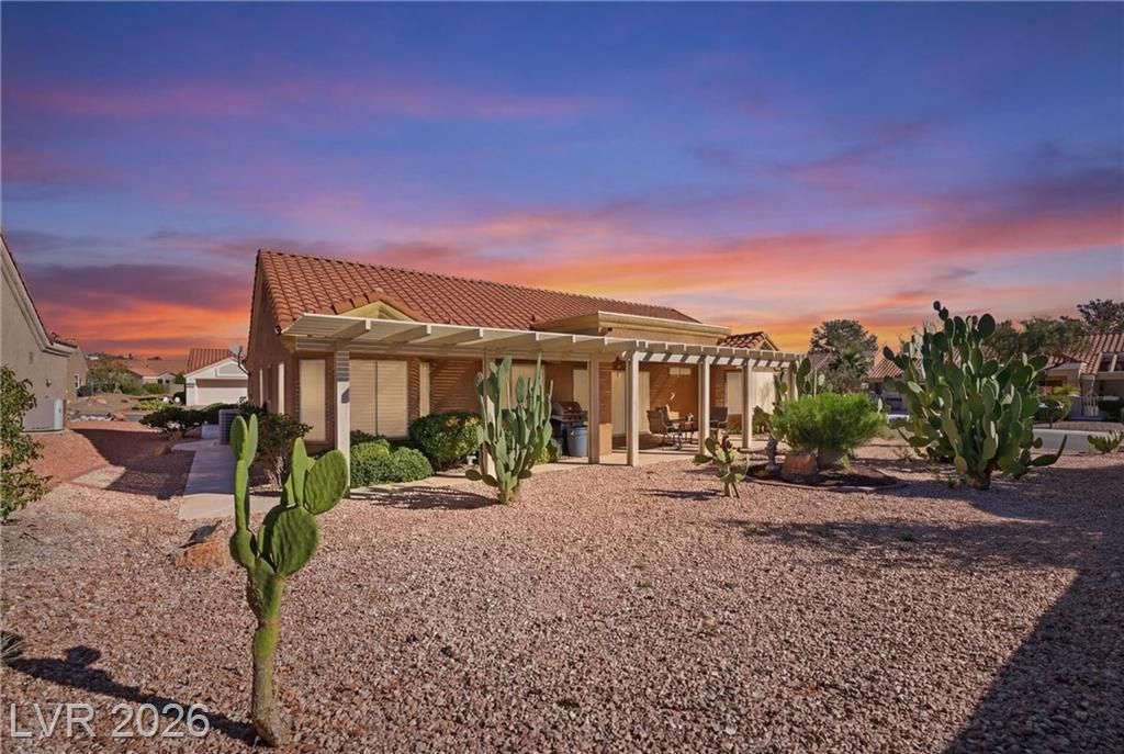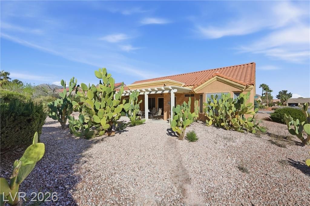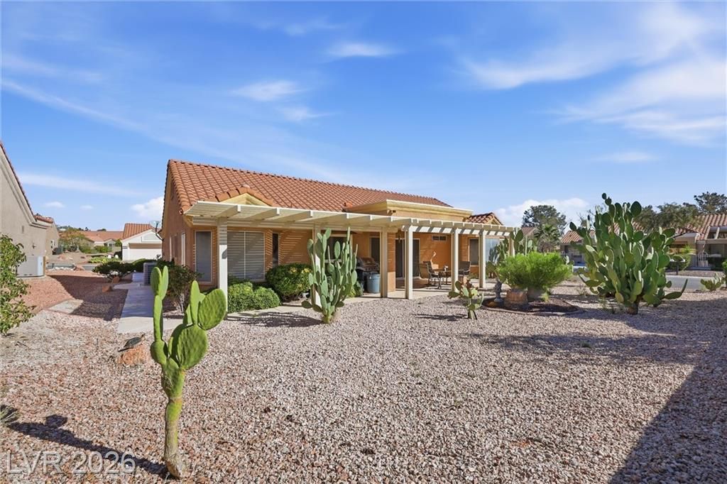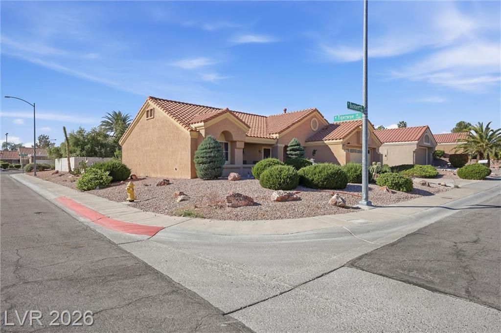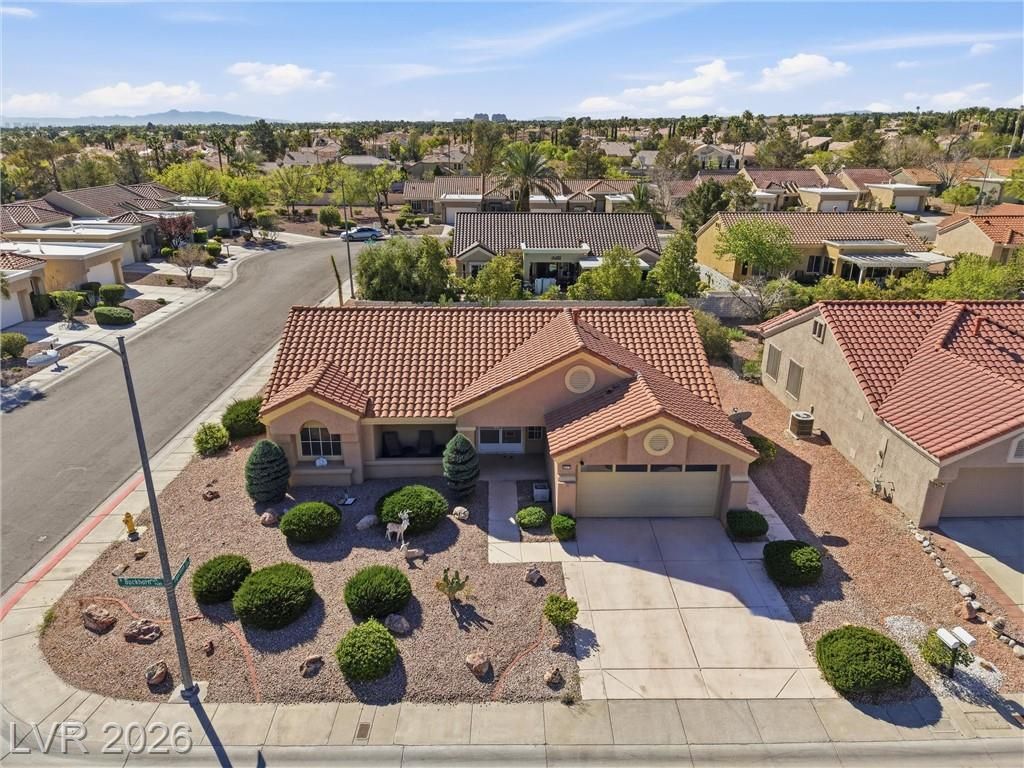 Sun City Summerlin's Award-Winning 55+ Community & Golf offers every amenity you can dream of. This popular Sandalwood model is situated on an oversized corner lot, boasting tasteful desert landscaping w/mature trees, bushes & decorative rock, without the high maintenance. 2 Bed, 1.75 bath & versatile flex room perfect for a home office or hobby space. Double door entry leads inside to an open living room w/vaulted ceilings & a slider leading to a large covered patio. The spacious kitchen is a chef’s delight w/a garden window, breakfast nook, a plethora of tile counter space & ample cabinetry & tall pantry w/roll-out drawers. All appliances stay including the gas range w/double oven, washer, dryer & refrigerator. The formal dining area sits adjacent to the living room & kitchen perfect for entertaining. The primary bedroom is large with an ensuite bath & walk-in closet. While relaxing on your front or back covered porch/patio you will see quail, rabbits, lizards & a variety of birds.