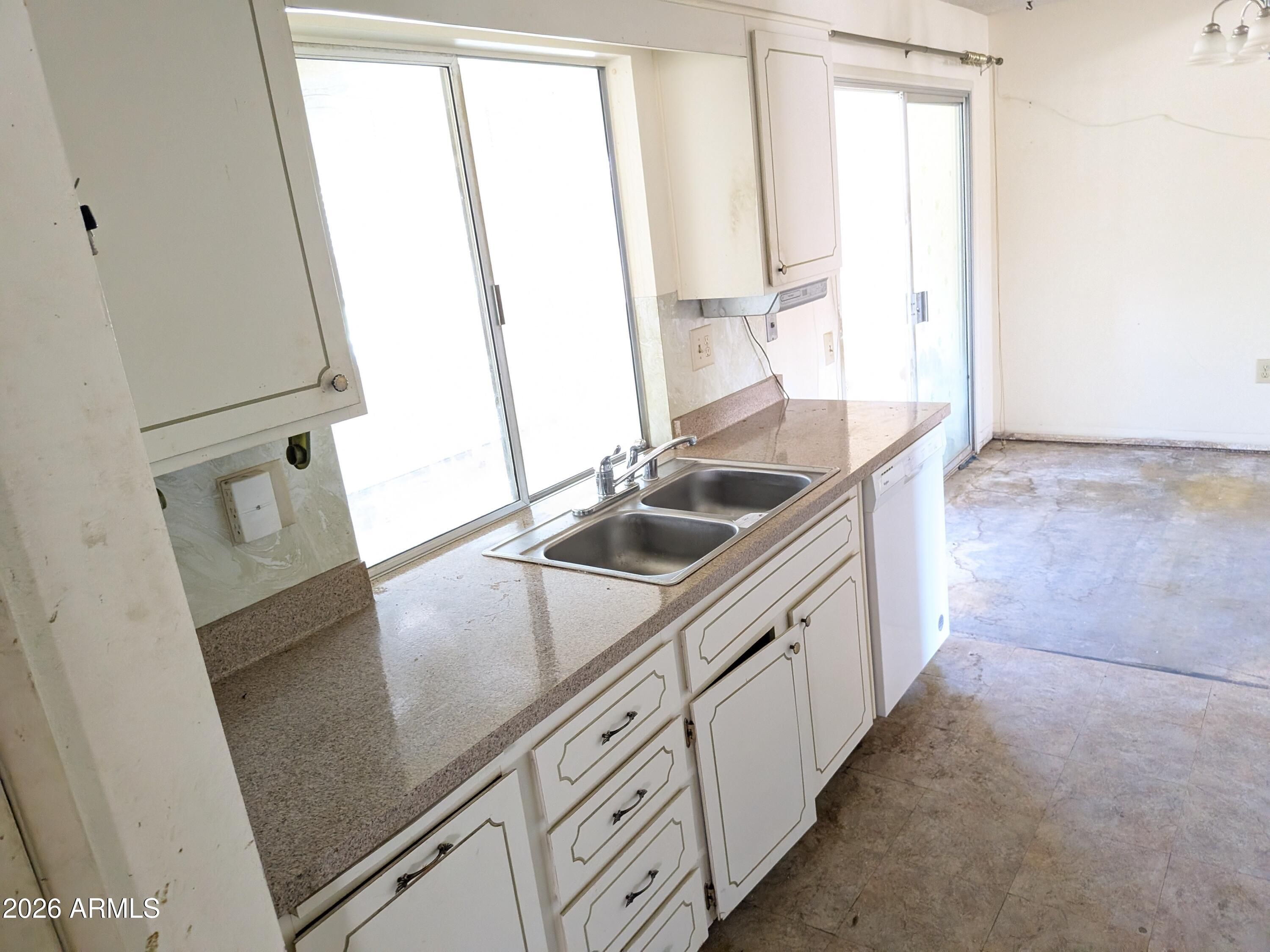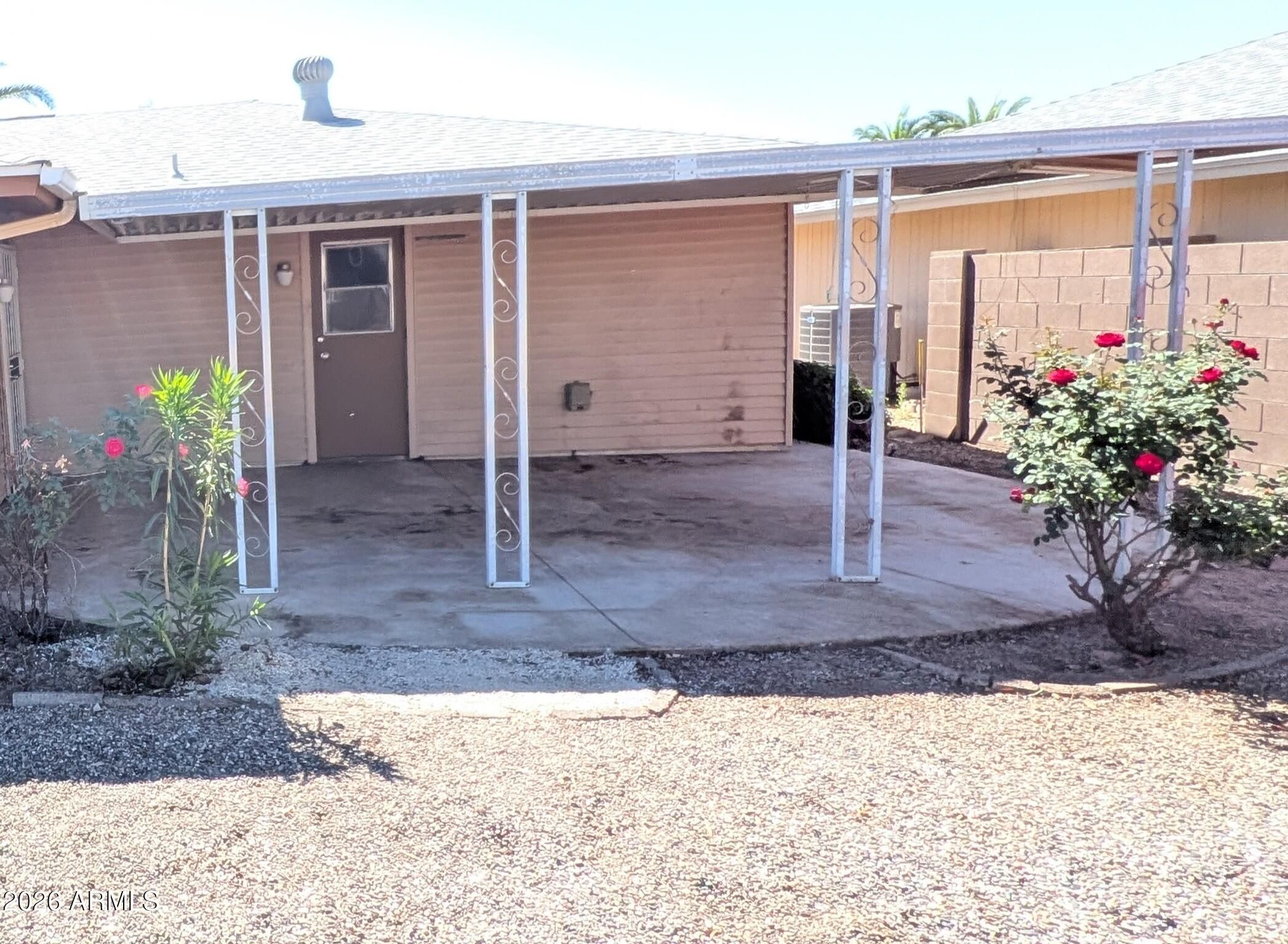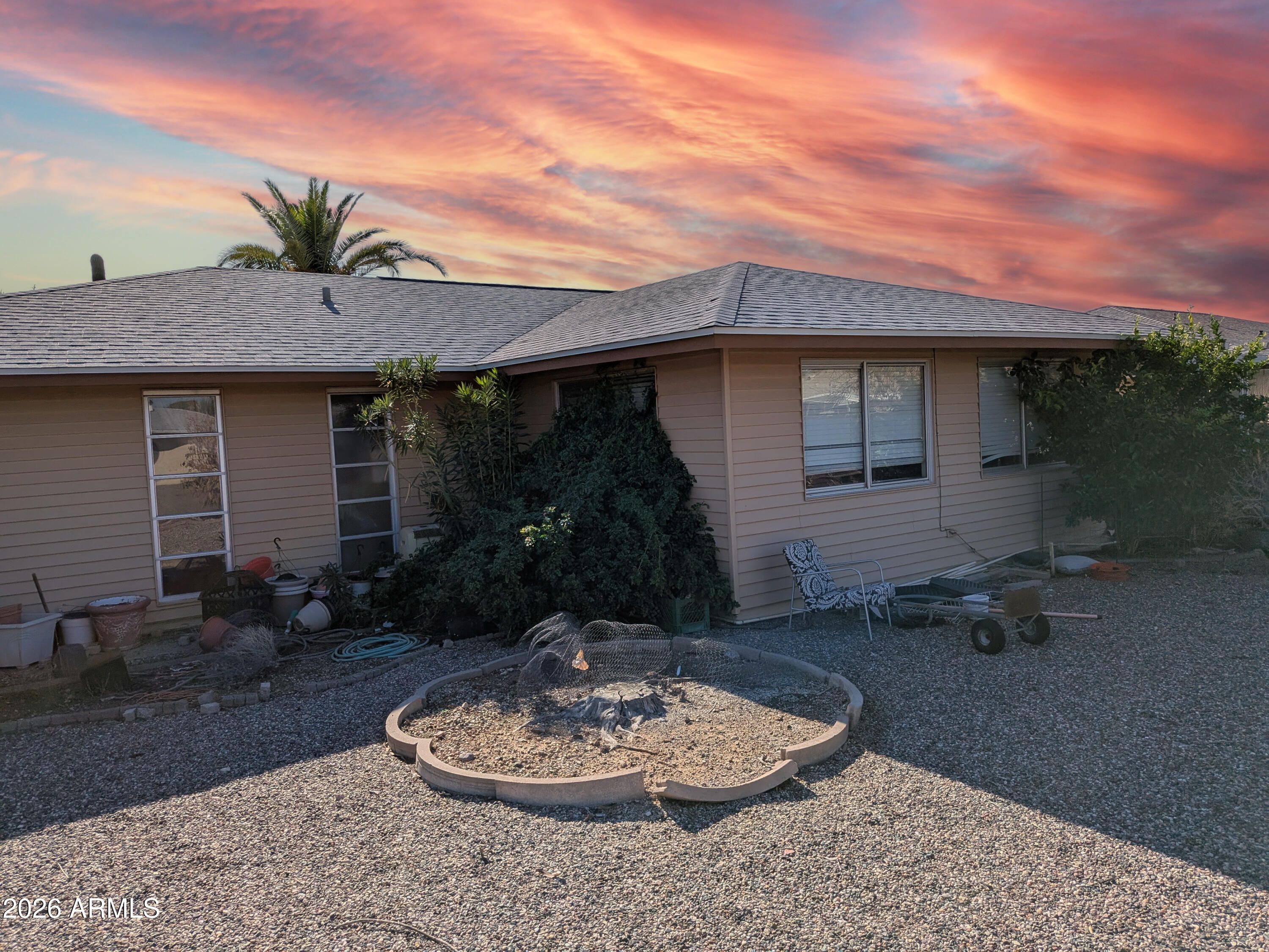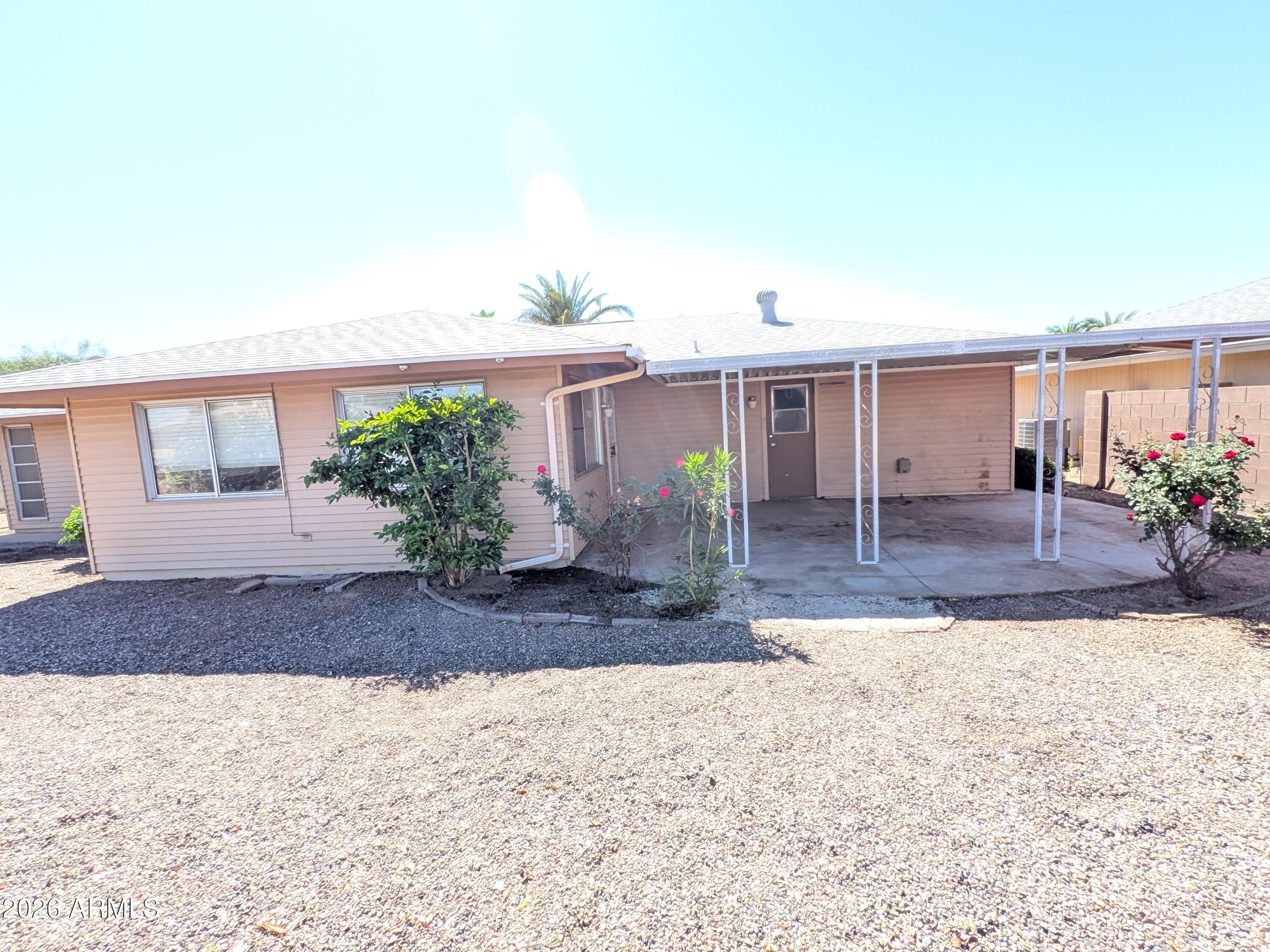 Bright, Open Floorplan in desirable Sun City! Private, Cozy front porch! Good-size kitchen with Granite counters! Pantry! Big bedrooms! Spacious Arizona room with extended Covered Patio! Desert Landscaping! Oversized 2CG (20.5x26) w/ Attached garage cabinets! Buyer to assume SOLAR lease ( 158/mth) home does need some work, please look at all pictures for accurate representation. Seller does not accept blind offers. Do not send an offer over until buyer has viewed home. Personals/Trash will be removed soon.