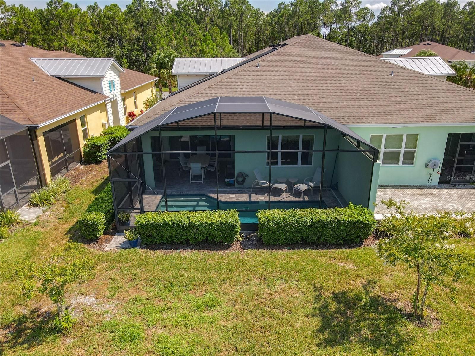 One or more photo(s) has been virtually staged. Near a quiet cul-de-sac in the 55+ paradise of Latitude Margaritaville, this beautiful Lucia Villa is the ultimate retreat. Step out back to your PRIVATE SCREENED IN POOL with a nature preserve view—and enjoy the built-in FastLane by Endless Pools system for swimming, exercise, or just a refreshing soak. Inside, you'll love the bright, open feel with upgraded tile throughout, crown molding, and custom window treatments. The kitchen shines with 42'' cabinets, granite counters, stainless appliances, and a stylish dry bar with wine fridge. Smart home features controlled by an app, a whole-house water system, and the Lucia-exclusive extended GARAGE FEATURES a BAY at nearly 26' DEEP-perfect for a large truck, golf cart or extra storage. This home is loaded with both builder and after-market upgrades—come live where every day feels like vacation! Garage storage and shelving excluded from sale. Some Photos are Virtually Staged. All information is deemed to be accurate but not guaranteed