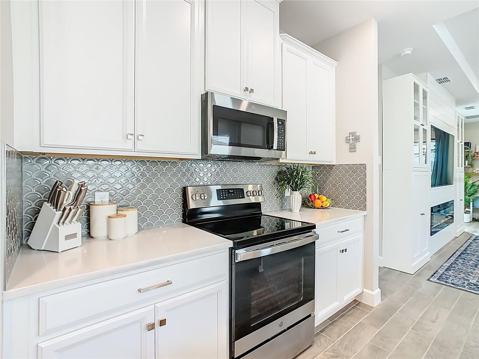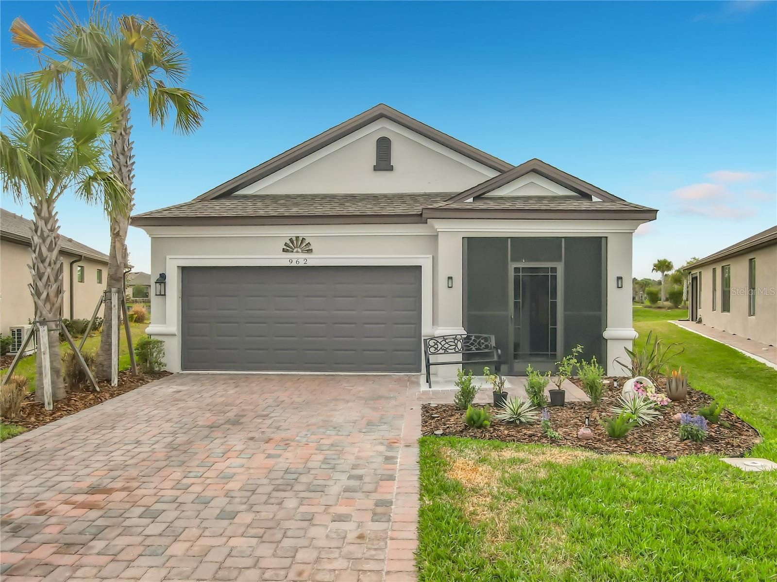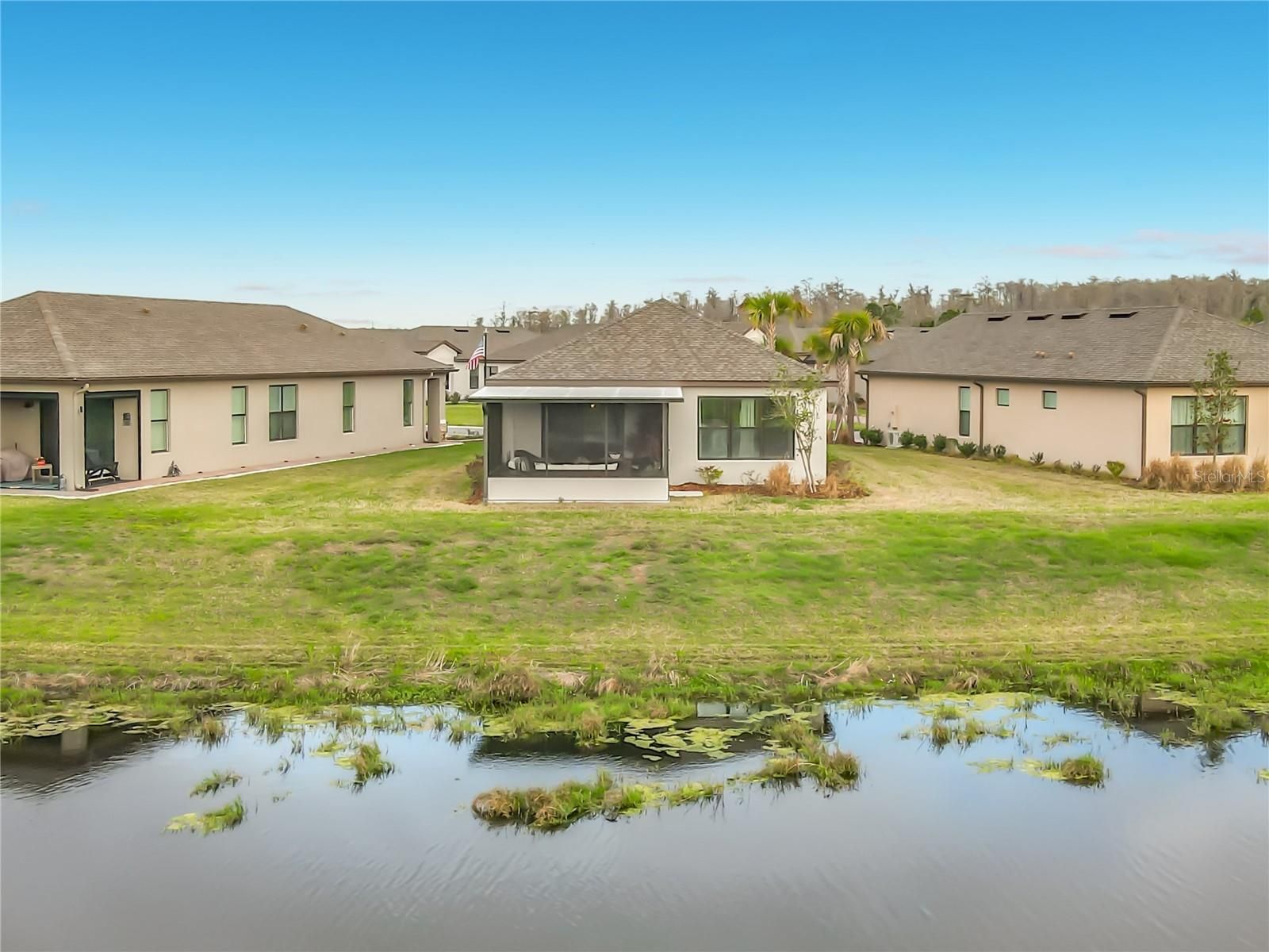 Welcome to this WELL MAINTAINED Salina Model located in the Varese subdivision of Solivita. ** See the FULL LENGTH VIDEO on Tour Link 1 ** This home was built in 2023 but SHOWS like a NEW home. Check out the amazing WATERVIEW. Two bedrooms, two bathrooms, 1,363 square feet, and MOVE-IN ready. Enter through the screened-in FRONT PORCH, and beautiful GLASS FRONT Door. Step into the OPEN CONCEPT design highlighted with eight foot doors, ceiling fans, CERAMIC TILE throughout ( NO CARPET), mini-blinds, CURTAINS, and a two car garage. The modern KITCHEN features Stainless Steel Appliances, QUARTZ Counters, a large ISLAND with room for bar stools, soft closed drawers, and a closed PANTRY. The adjacent GREAT ROOM enhances a TRAY CEILING, a built-in ENTERTAINMENT CENTER, and two sliders leading into the lanai. The PRIMARY BEDROOM is your private and quiet retreat and includes a WALK-IN Closet, Tray Ceiling, that awesome VIEW, and dual sinks in the PRIMARY BATHROOM. The split bedroom floor plan ensures privacy for guests with a generously sized SECOND BEDROOM and FULL BATHROOM. Separate LAUNDRY ROOM boasts a washer and dryer included in the sale. Enjoy Florida living from the screened and HARD ROOF covered LANAI. This Lanai is framed for WINDOWS. ***Solivita is an active adult 55+ community located in Kissimmee, Florida. It is approximately 50 minutes from Disney World & the Orlando International Airport. Solivita has a total of 5,470 homes. Enjoy your active years in this piece of paradise. Solivita's amenities include: - a manicured SOFTBALL diamond & field - 36 holes of CHAMPIONSHIP GOLF that can be played by joining the Stonegate Golf Club or paying as you go - 2 STATE of the Art AMENITY centers with updated exercise equipment, yoga studio & meeting rooms - 3 restaurants - 14 HEATED POOLS - 17 PICKLEBALL courts - 9 TENNIS courts - 4 BOCCE BALL courts - 4 SHUFFLEBOARD courts - 3 HORSESHOE pits - a BILLIARDS room - miles of bike paths - 2 DOG PARKS (Small & Large Dogs) - Corn Hole - Tot Lot PLAYGROUND - COMMUNITY GARDEN - over 250 resident clubs. The HOA: - maintains the LANDSCAPING & IRRIGATION systems in the common areas as well as at individual homesites - maintains the roads throughout the community - PROVIDES SECURITY with gate guards and mobile patrols including the Polk County Sheriff - allows AUTOMATED GATE ACCESS for residents via license plate readers - provides residents with Fiber Optic Internet & TV service.***Poinciana Lakes Plaza is a MAJOR NEW SHOPPING CENTER directly across from the Solivita Main Gate. It features Sprouts Grocery, TJ MAXX, Ross, Burlington, Rack Room Shoes, 5 Below, Ulta, Outback, First Watch, 5 Guys, Panda Express, Bojangles, Jersey Mike's Subs, 5 Guys, Papa John's Pizza, Burrito Bar, Cold Stone Creamery, Urgent Care, Dentist, Hand & Stone Massage, America's Best Eyeglasses, Crunch Fitness, Hair Cuttery, Petco, TD Bank, Verizon Mobile, PLUS MORE TO COME.***