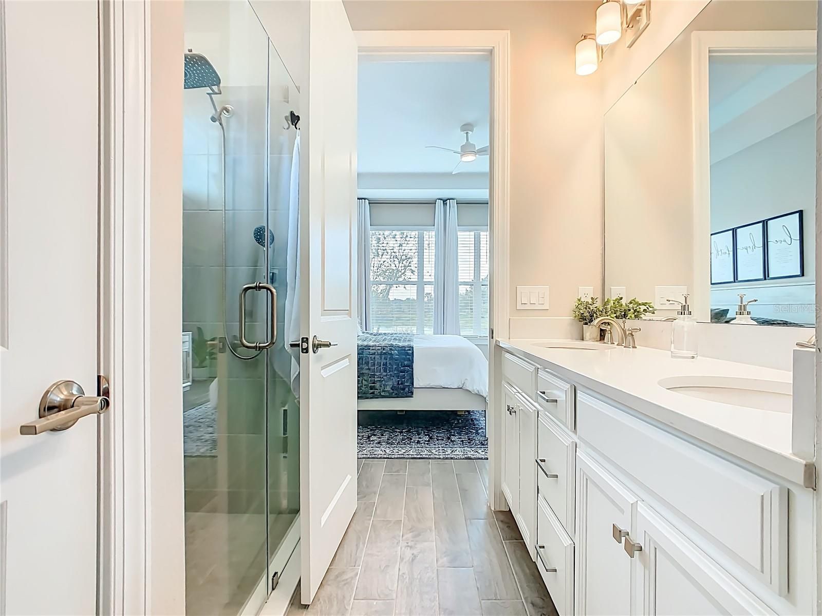 - Ceiling Fan(s), Open Floorplan, Solid-Wood Cabinets, Split Bedrooms, Walk-In Closet(s), Window Treatments