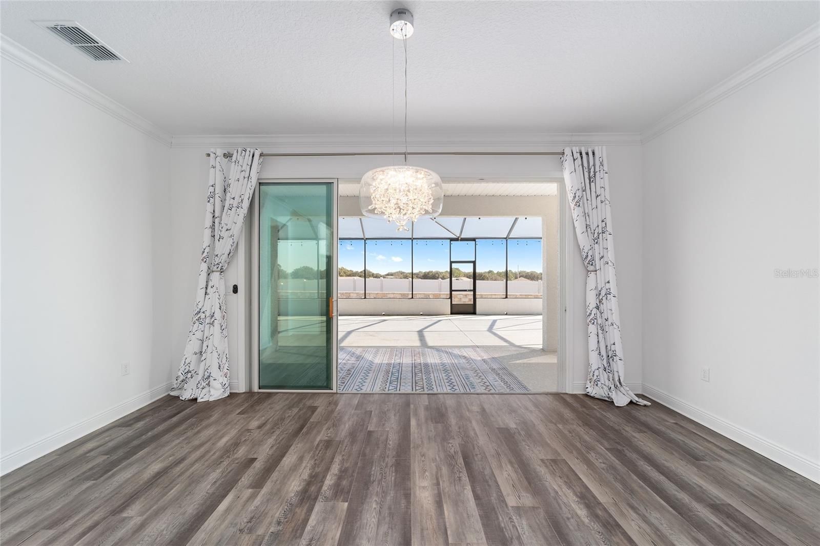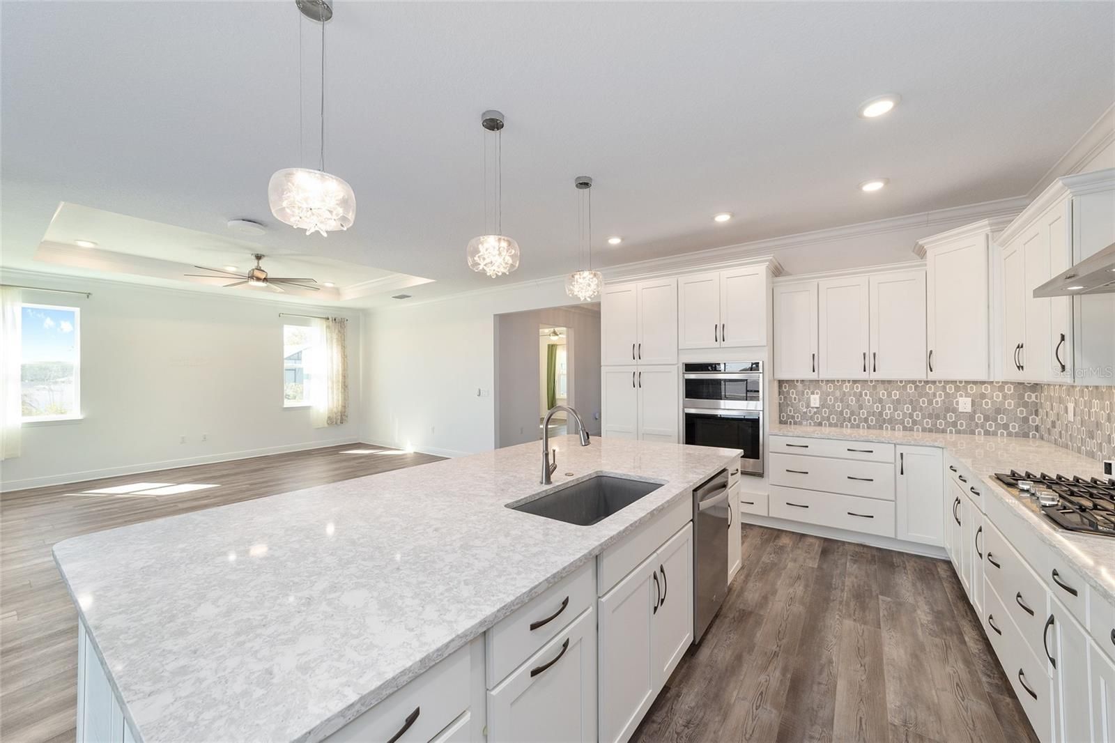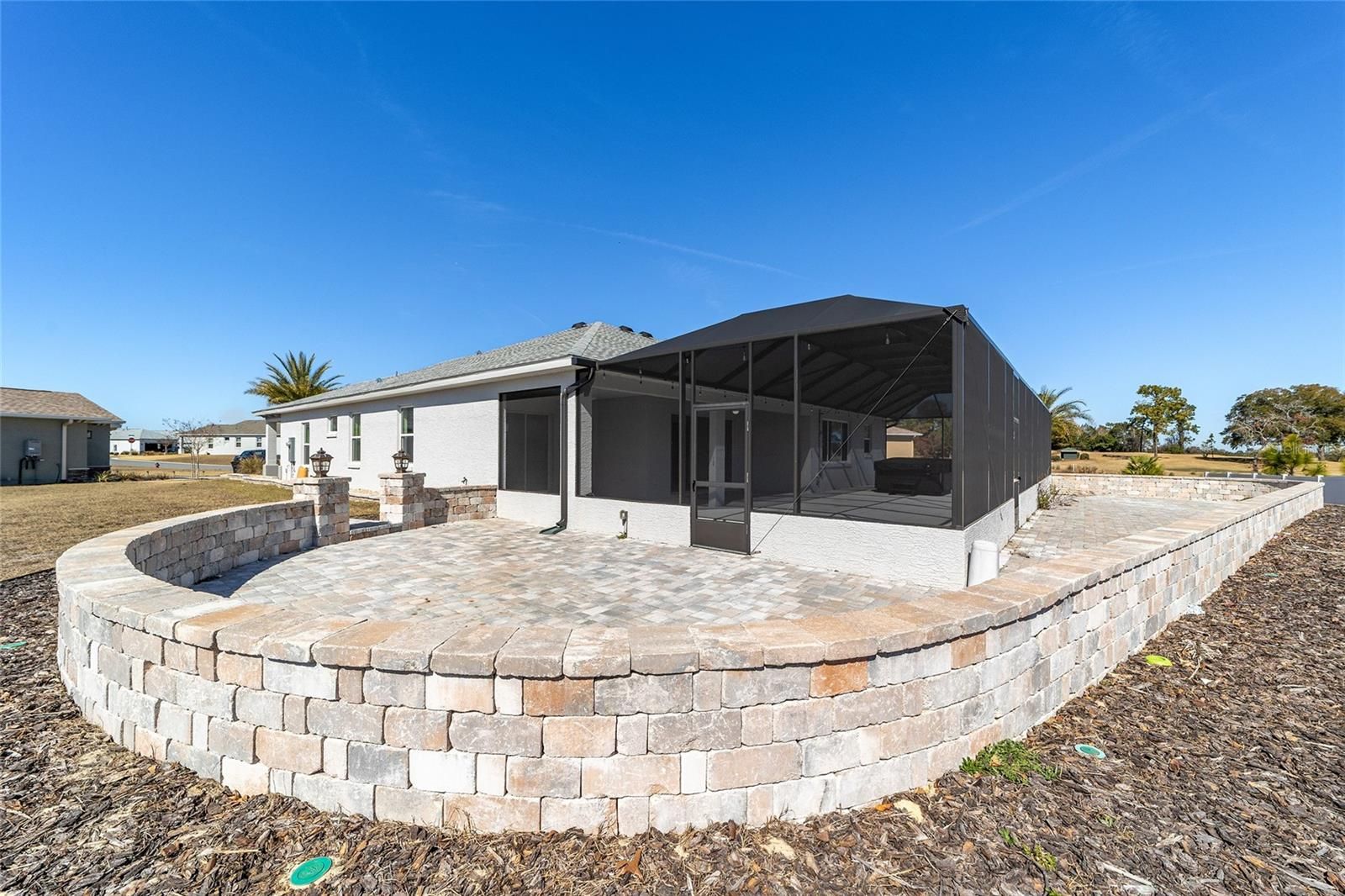 Located in Longleaf Ridge at On Top of the World, this Arlington model is perfectly positioned on an elevated, oversized privacy lot at the end of a quiet cul-de-sac with golf course views. Offering exceptional curb appeal and thoughtful upgrades throughout, this home combines space, functionality, and refined finishes in one impressive package. The exterior showcases stonework accents, corbels, professional landscaping, and a paver driveway leading to a three-car garage with a dedicated golf cart setback and mini-split system for climate control as well as a Generac Home Standby Generator. A beautiful leaded glass front door welcomes you inside, where luxury vinyl plank flooring flows throughout the main living areas. The living room features a convenient floor outlet for flexible furniture placement. The kitchen is both stylish and functional, complete with quartz countertops, a designer tile backsplash, composite sink, cabinets on the front of the island for additional storage, and soft-close, dovetail drawers. The laundry room offers added cabinetry and a built-in farmhouse sink for everyday convenience. Outdoor living is elevated with an oversized birdcage enclosure, extended stone paver patio, and a spa for relaxing after a busy day of activities, all perfectly positioned to take in the golf course views. Additional features include an Ecobee smart thermostat and Ring doorbell system, blending comfort with modern technology. Residents of On Top of the World enjoy golf cart access to shopping, dining, and entertainment along with resort-style amenities in Ocala's premier 55+ active adult community.