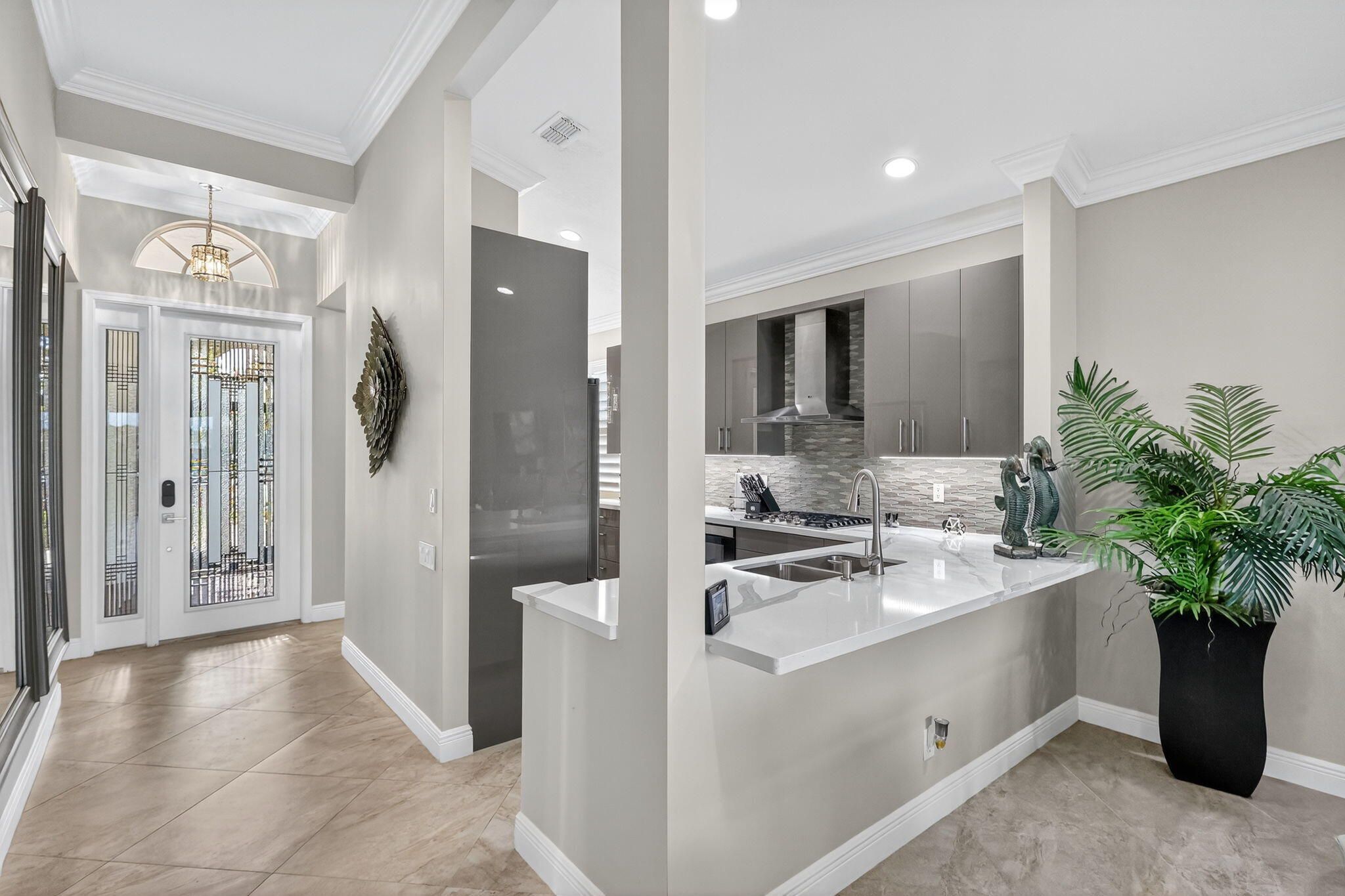 The Waterfront Vitalia Gem You've Been Waiting For! Welcome to your dream home - a completely renovated, move-in-ready property on a private lakeview lot within a cul-de-sac, in this highly sought after 55+ resort style community. Enjoy serene lake views, breathtaking sunrises, and even rocket launches from your extended, screened patio. This home truly has it all -- full impact glass windows, plus patio hurricane-rated smart storm screens, offering peace of mind and modern protection. Step inside to a sleek, modern kitchen featuring stainless steel appliances (new in 2020), quartz countertops, soft-close cabinetry, pull-out drawers, and a gas cooktop. The interior showcases new flooring (2019), plantation shutters, crown molding, and California closets. WOW is truly the word! Additional h
