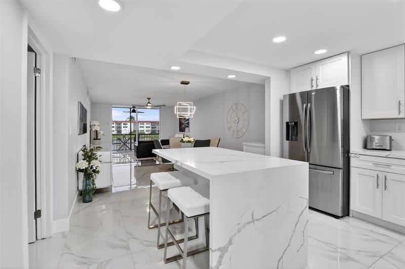Highly Upgraded Full Two Bedroom Condo With Large Lake View-All Tiled Flooring With Open Concept and Breakfast Bar-kitchen Has-Stainless Appliances and Quartz Counters-Bar Area With Beverage Frig-Washer and Dryer For Your Convenience-Both Bathrooms Are Beautifully Upgraded-All Windows Are Updated-A/C and Mechanicals Have Also Been Upgraded-Paid-Up Rec Lease-Across From Pool Area-May Purchase Turnkey With Furnishings OR Unfurnished-Free golf, 14 tennis courts, 7 pools, a theater, a fitness center, a restaurant, 24-hour security, and an association that represents housing for older persons authorized (HOPA). *** IMPORTANT! See Broker Remarks below for occupancy qualifications