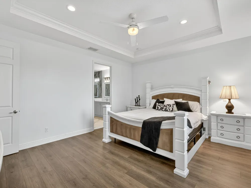 Rare Vanderbilt model located in the desirable community of Vitalia. Beautifully renovated 3 bedroom 2 bath home with a spacious open floor plan that is very functional. Large eat in kitchen featuring upgraded countertops, center island, breakfast bar, dual wall oven, gas range, and pantry. Great room features coffered ceilings and sliding doors leading to the covered lanai with an electric roll down shade, and private back yard with no neighbors behind the house. Master suite is big, and has coffered ceilings plus a stunning remodeled bathroom with a huge shower, double vanities, and a huge walk in closet. Vitalia is a vibrant active community with a 24,000 sf clubhouse featuring a fitness center, ballroom, billiards and darts room plus a resort style pool with cabanas.