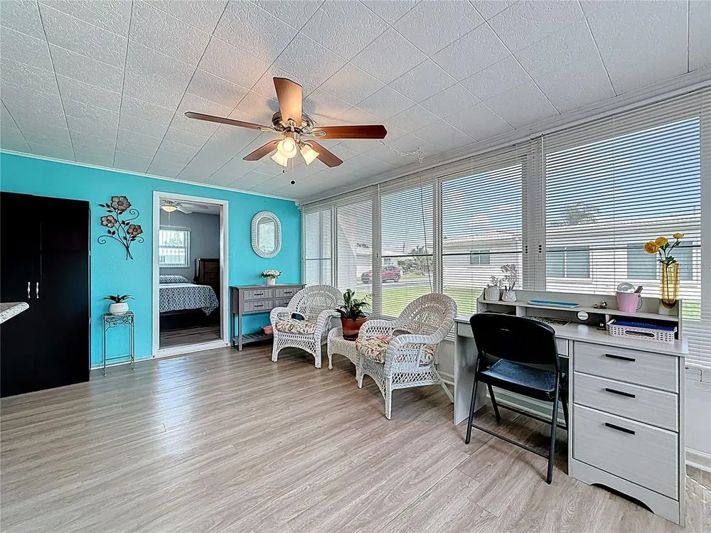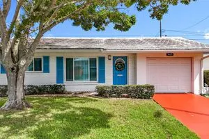 If you are looking for a MOVE-IN READY opportunity in the highly desirable 55+ Mainlands community look no further! 2 bedroom, 2 bath single family home located on a corner lot has great curb appeal and offers a 10x10 rear patio. Interior offers newer flooring (2018): wood look, wide plank laminate flooring throughout. Recently updated Kitchen (2018) includes new cabinets, beautiful granite countertops, stainless steel appliances and sink, high neck faucet, and garbage disposal with a pass through window to the light and bright Florida Room. Master Bedroom can accommodate a King-size Bedroom Suite. Other updates include NEW flat roof (2019), HVAC (2014), electric panel (2015), decorative front door, ceiling fans and New Windows. More recently updates includes remodeled bathrooms, New Driveway, Gutters. The Home and The Roof will be painted by the HOA. Monthly maintenance fee of $469.62 includes 2 digital cable boxes, internet, lawn care, exterior painting, reclaimed water irrigation, roof repair/replacement and water/sewer/trash! Come join this active 55+ community offering heated Pool, Clubhouse, Shuffleboard, Golf, with Parkside mall, restaurants, banks, interstate, airports, and beaches nearby. 2 pets, any size, welcome! Make this your home before is too late.