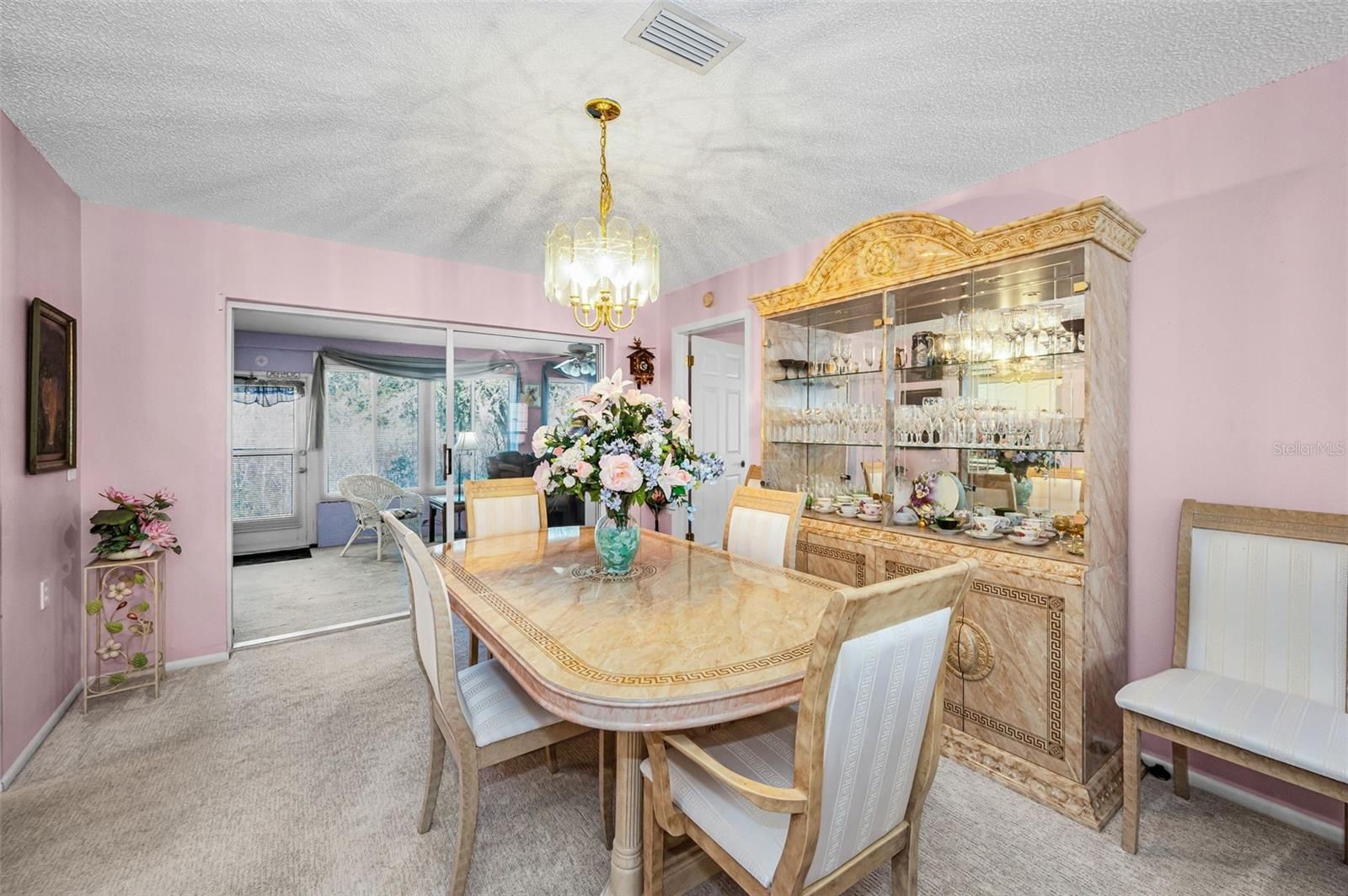 IN TIMBER GREENS A 55+ GATED GOLF COMMUNITY, this 2 Bedroom 2 Bath with a 2 CAR GARAGE AND A GOLF CART GARAGE, home is Located in the Main area of Timber Greens. Open the doors to The Living room/Dining room Combo. Eat in Kitchen with Granite counter tops and breakfast nook, overlooking the Family Room. Primary Bedroom with Walk-in closets, and Bath with dual sinks and walk in shower. There are 3 sets of sliding doors lead out to the Large enclosed (Bonus room-porch is UNDER HEAT AND AIR FOR AN ADDTIONAL 288 SQFT), and no rear neighbors but a obstructed view of the 7th tee.... No worries about space for your Golf cart this home has one for you. Timber greens has a 18-hole par 71 golf course, clubhouse, pro shop, community pool, and spa, as well as tennis, pickle ball, bocce, and shuffleboard courts, there's never a shortage of activities. Engage in arts and crafts, dine at the 19th Hole Bar and Grill, or enjoy an evening with friends in the card room. Schedule your private viewing today!!