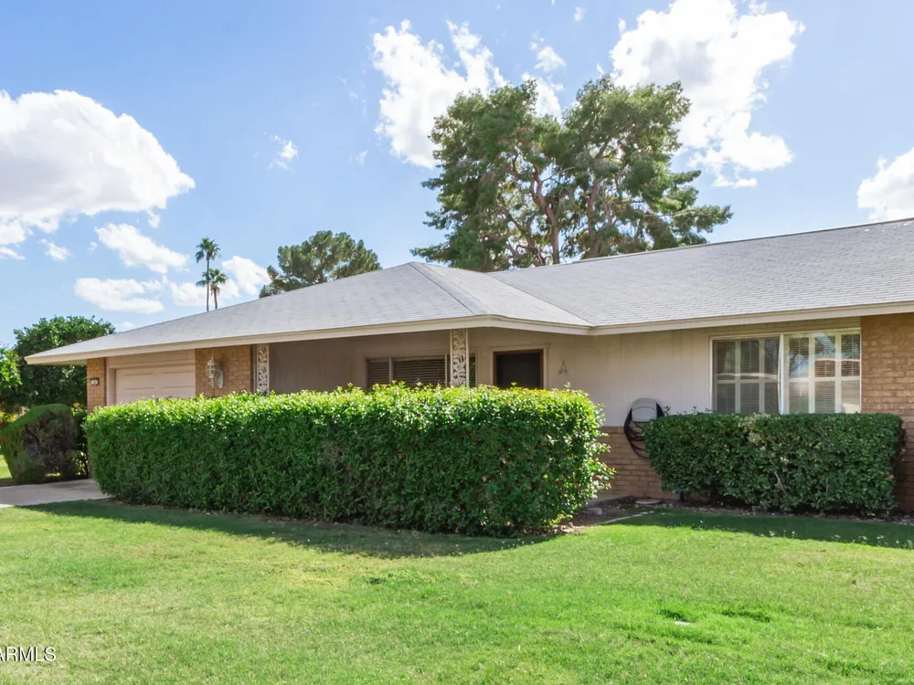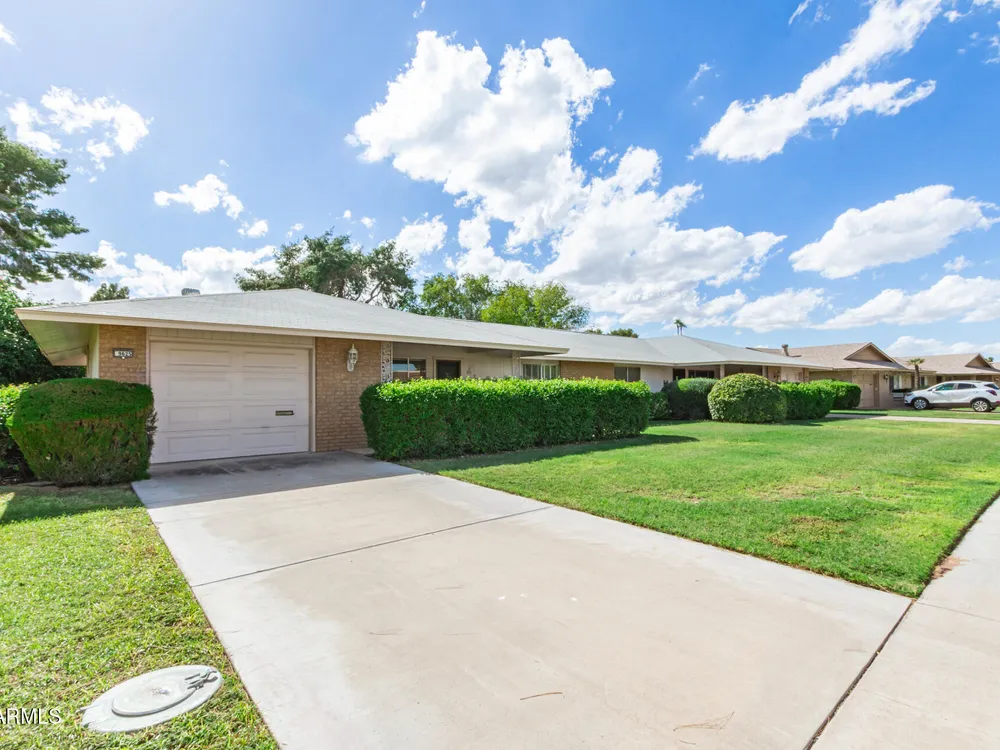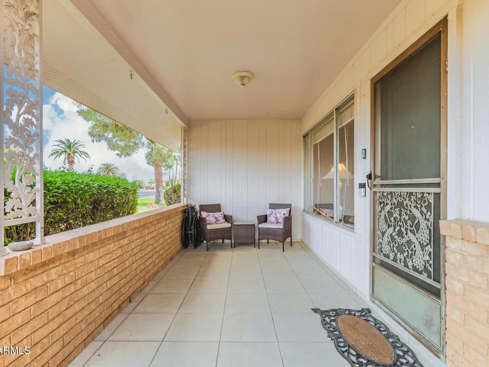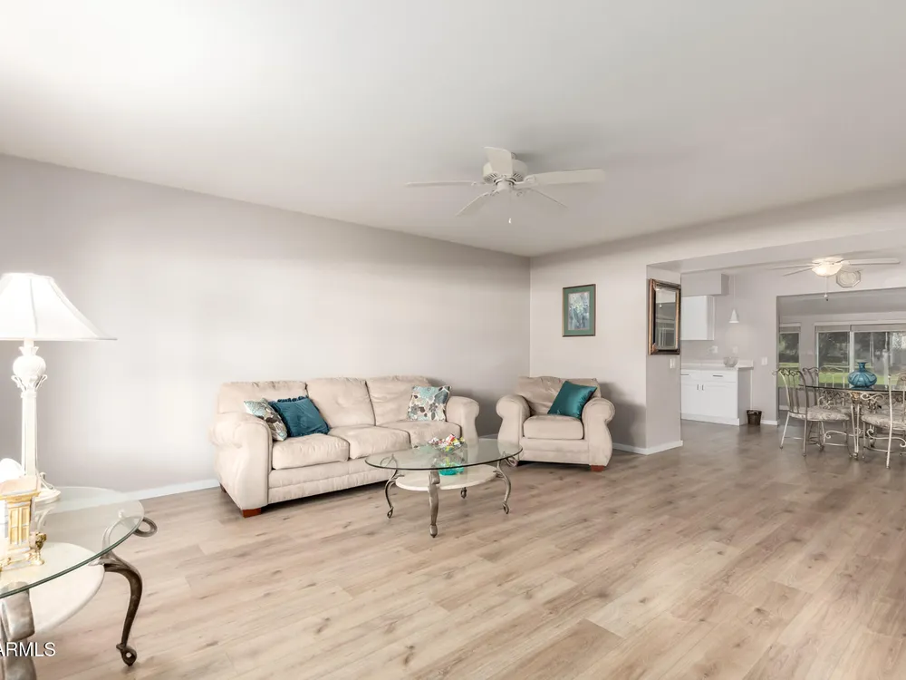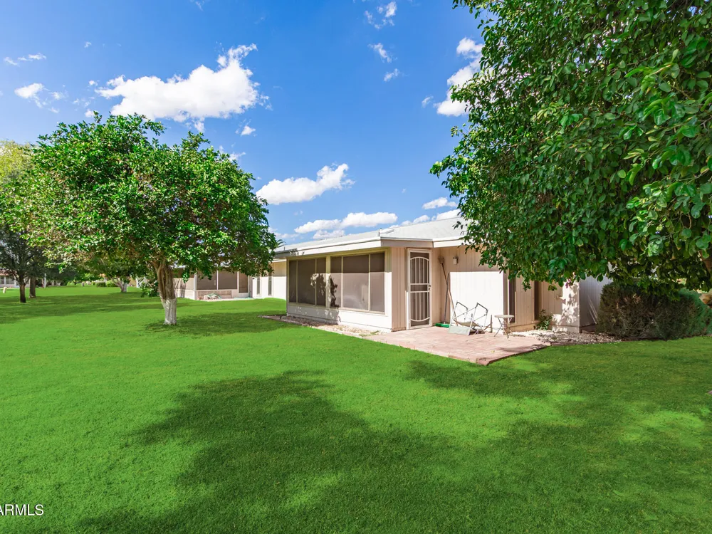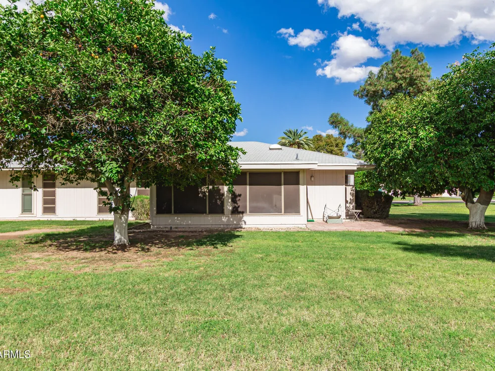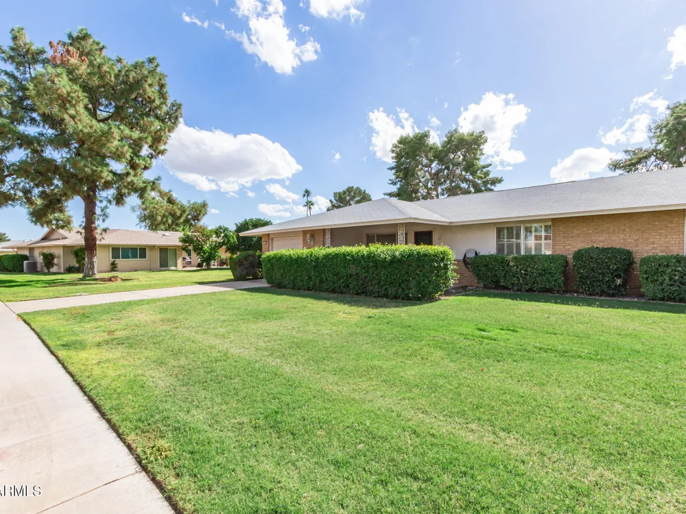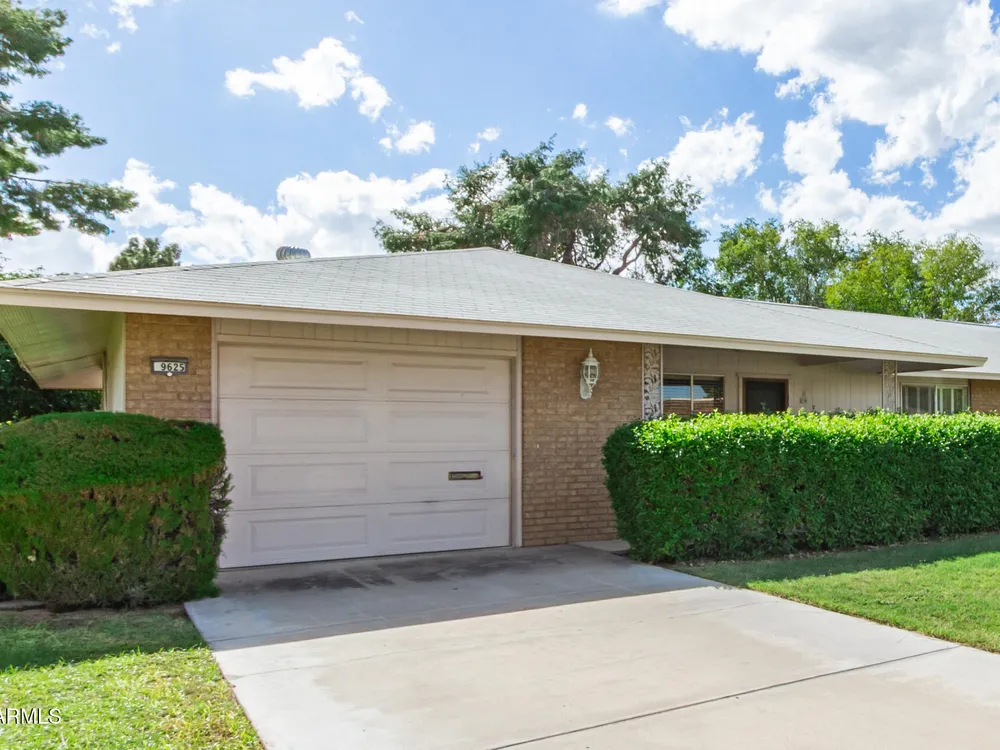 Experience easy living and charm in this newly updated Gemini/Twin home, perfectly situated in the heart of Sun City! Just moments from the Palm Brook Country Club golf course, this 2-bedroom, 2-bath residence offers over 1,500 sq. ft. of comfortable, thoughtfully designed living space and an attached one-car garage. The bright kitchen features generous cabinet storage, while the spacious living and dining areas provide a welcoming setting for everyday living or entertaining. Retreat to the comfortable primary suite with its private en suite bath, or unwind on the peaceful covered front patio—ideal for enjoying Arizona's sunshine. The property also features beautiful citrus trees maintained by the HOA, ensuring you can enjoy their charm without the upkeep. Additional highlights include an indoor laundry area, single-car garage, and access to Sun City's world-class amenities, including golf, recreation centers, pools, and a variety of social clubs.
