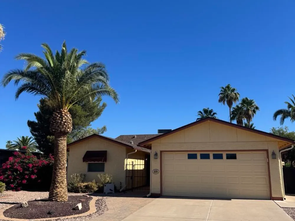 Welcome to Sun Lakes!! This single story North/South facing Cochise floor plan offers 2 bedrooms, 2 bathrooms plus a bonus den and a sitting room off the master bedroom. The inviting open floorpan flows seamlessly into the kitchen which is complete with stainless steel appliances. Roof has been replaced in 5/2024, water heater 12/2022 and AC's in 2/2019. Move in and relax in comfort knowing this house has been loved and is ready for you!