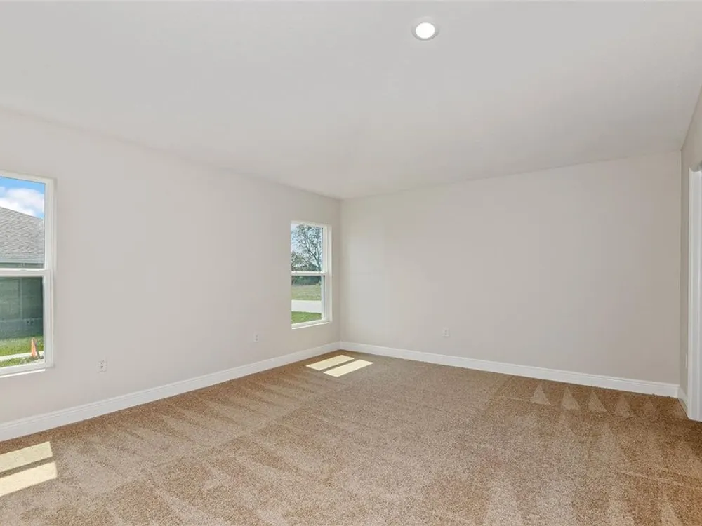 One or more photo(s) has been virtually staged. ?The Bismark is a single-story floorplan with a 2-car garage. You’ll find the laundry room conveniently located in the foyer. The foyer flows into an open-concept kitchen, dining, and living area, perfect for both everyday living and entertaining. The seamless transition from these spaces to the covered lanai allows for easy indoor-outdoor living. Off the kitchen, two well-appointed bedrooms share a bathroom, providing comfort and privacy for family members or guests. Tucked away at the back of the house, the owner's suite offers a peaceful retreat with a spacious bedroom, a luxurious bathroom, and a generous walk-in closet. Experience the charm of country living with all the conveniences of the city at Cherrywood Preserve, a 55+ gated community. This golf cart friendly community in Ocala, FL offers boldly unboring new homes right next to the Market at Cherrywood: a short ride from groceries, restaurants, shopping, and Interstate 75. Homeowners have access to a variety of amenities including a lap and lounge pool, jacuzzi, fitness center, billiards room, horseshoes, shuffleboard, bocce, basketball and pickleball courts. Stay connected with neighbors through a lively social calendar and enjoy year-round gatherings in beautiful indoor and outdoor spaces. Images shown are for illustrative purposes only and may differ from actual home. Completion date subject to change.