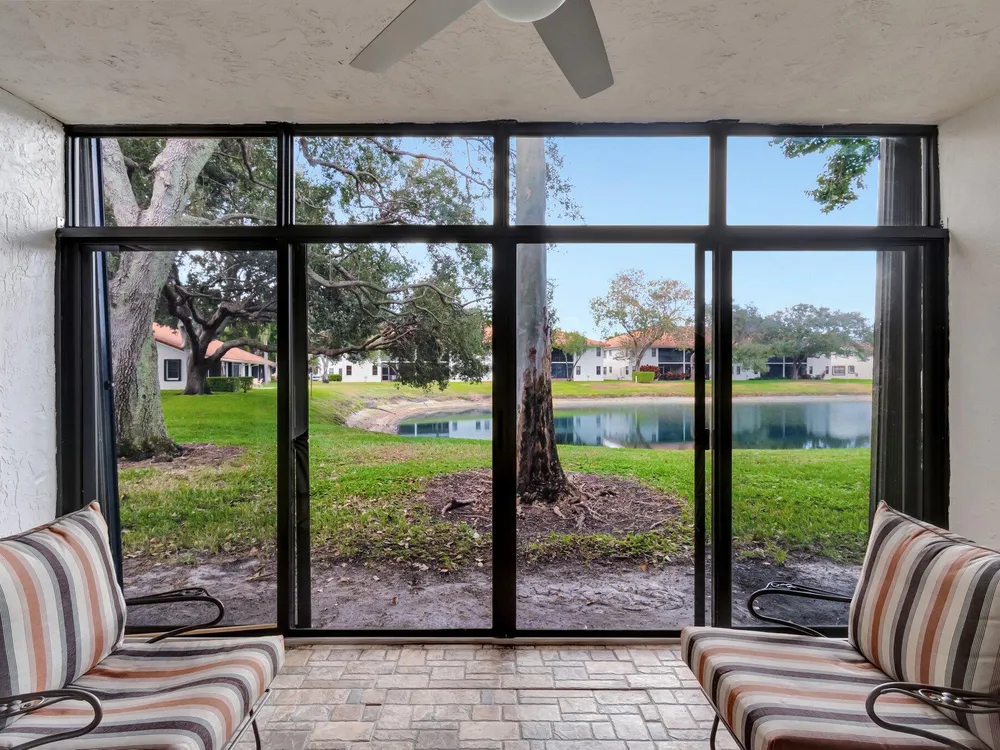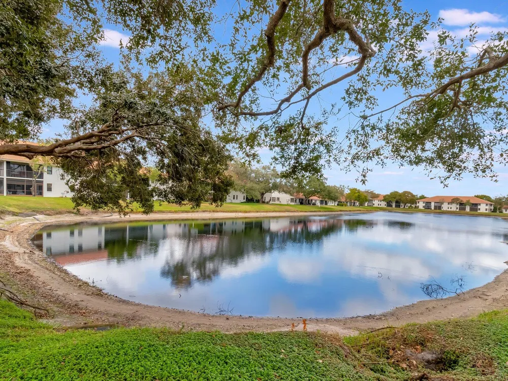 Beautifully renovated 1st fl corner 2BR/2B unit with water views in front & rear in well maintained 55+ community. Large eat in kitchen with solid cherry wood cabinets with soft close drawers, under mount lighting, quartz countertops, marble back splash, high hat, new style farmers SS sink, all new plumbing shut off valves, newer appliances, A/C 2023, water heater 2022. Custom plantation shutters, accordion shutters throughout, 24x24 tile throughout. Low maintenance fees to include fiber optic TV service with over 200 channels & showtime bundle, internet, alarm system, water, sewer, trash pickup. Community activities include water aerobics, exercise strengthening, pickleball/tennis & bocce & shuffleboard courts, shows & parties, breakfast etc.
