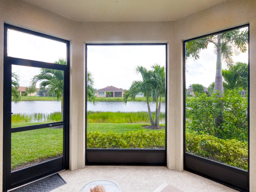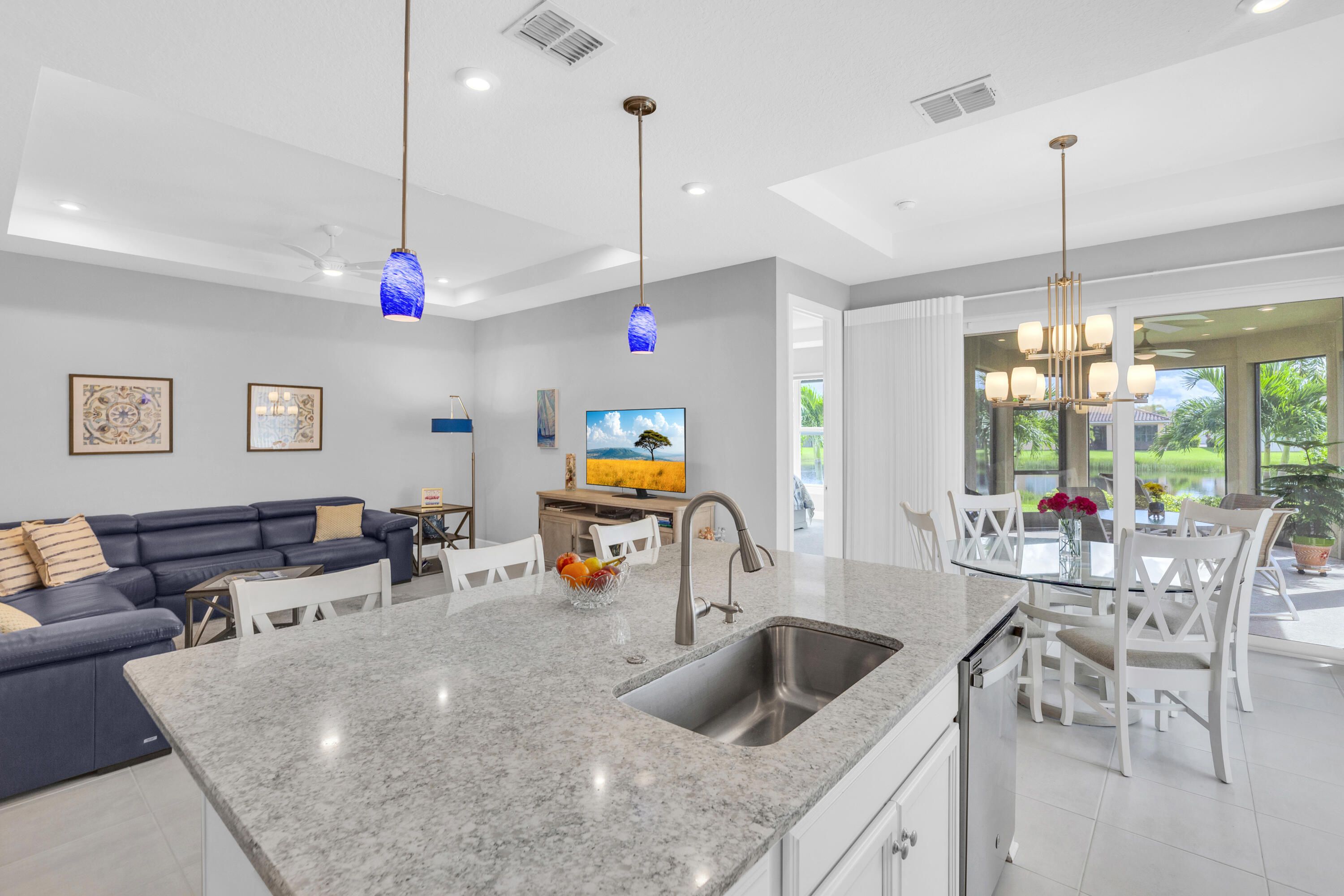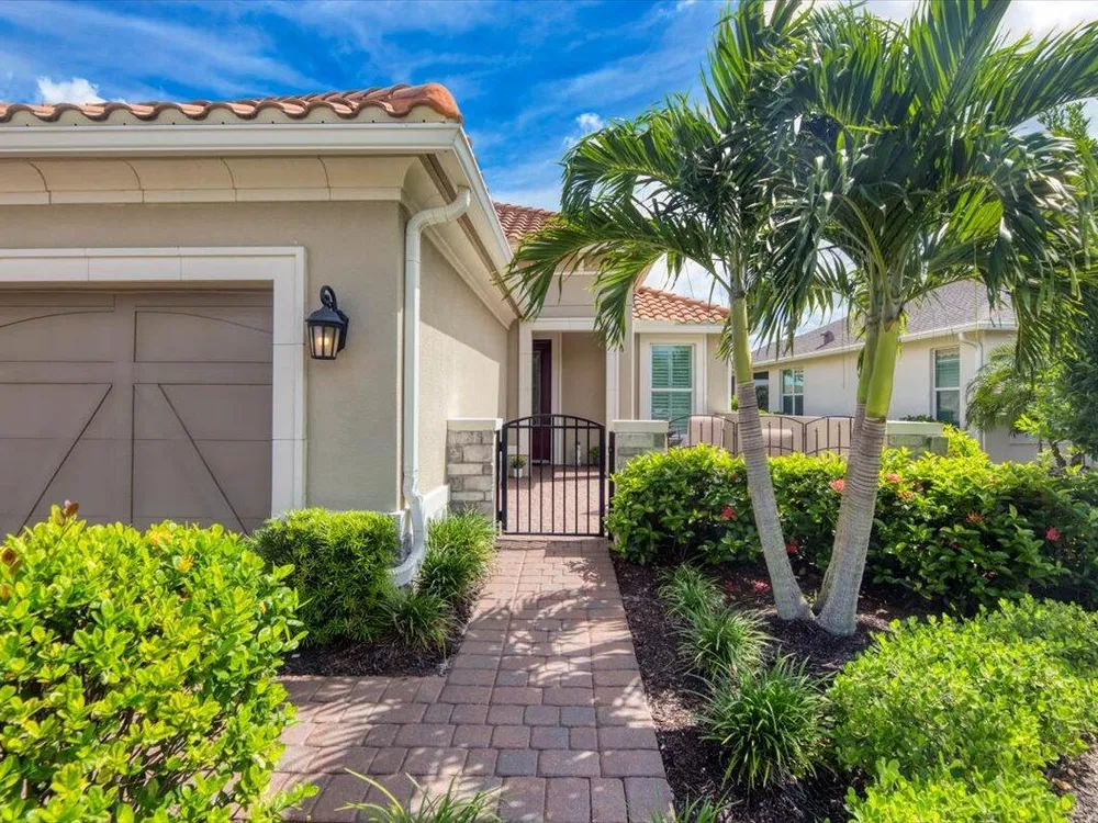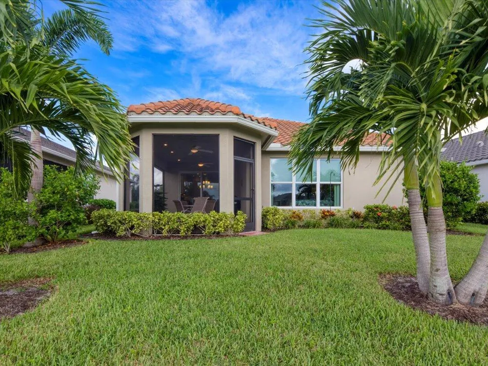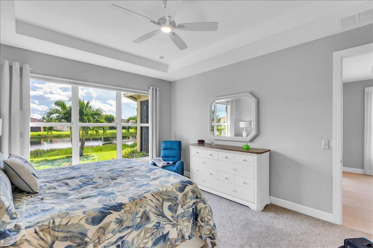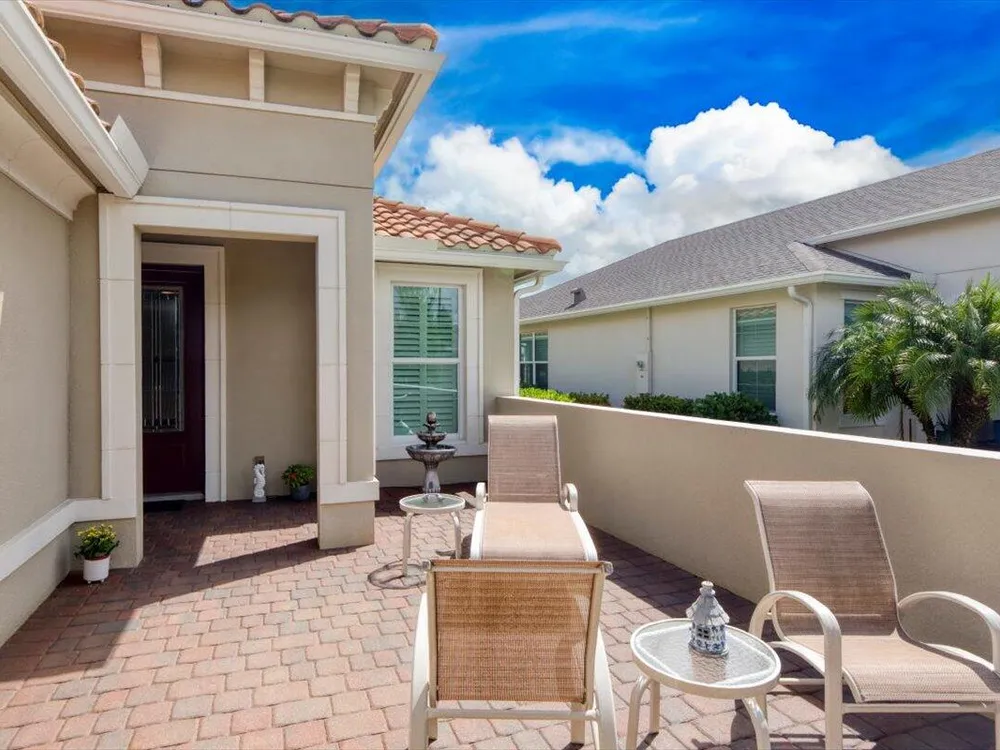 Nestled within the secure, gated community of Vitalia in Tradition, this exquisite CBS built 2-bedroom PLUS den offers a luxurious lifestyle. Offered fully furnished (or unfurnished) w/ high end furniture. Situated on a PREMIUM lakefront lot, enhanced with numerous upgrades, including IMPACT windows & doors, tile flooring in living areas and den, custom Hunter Douglas remote controlled window treatments, crown molding and a gorgeous custom master bedroom walk-in closet. The interior is bathed in natural light from the courtyard entry, beamingonto the professional neutral paint with many expanded windows throughout the home. The gourmet kitchen delights with a gas range, upgraded cabinets, large walk-in pantry, SS appliances, quartz countertops, a spacious island and under cabinet lights