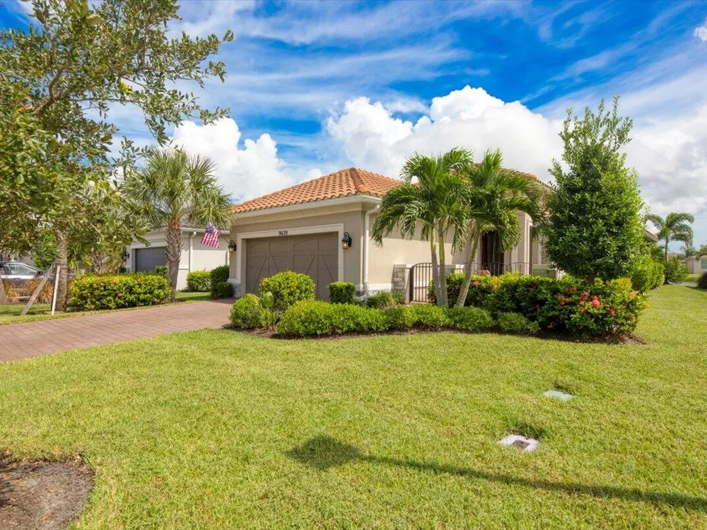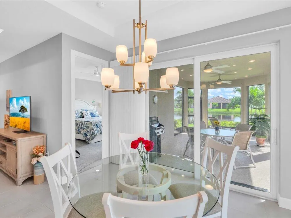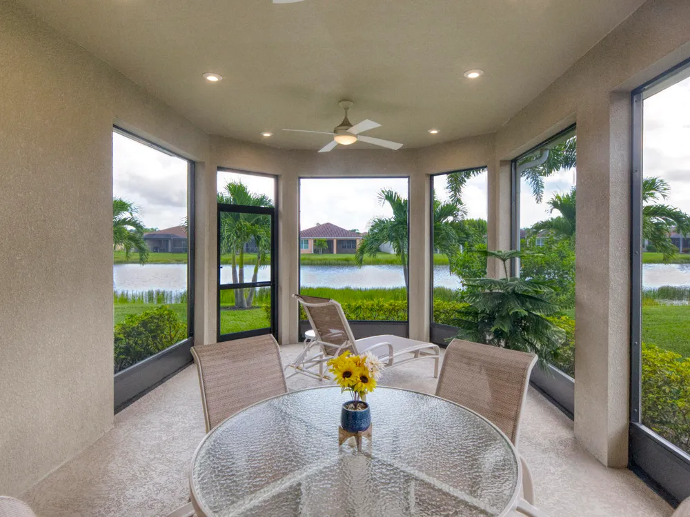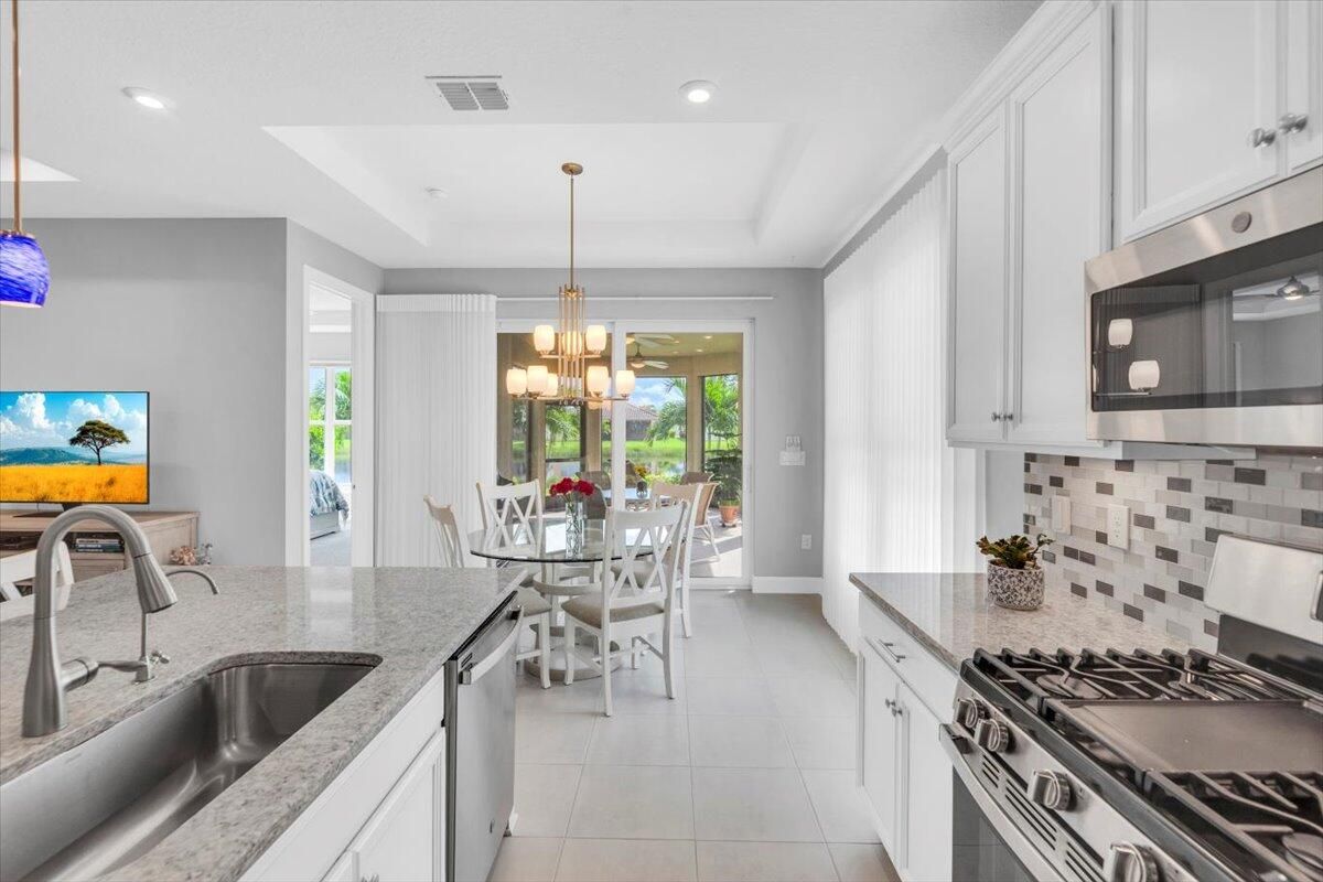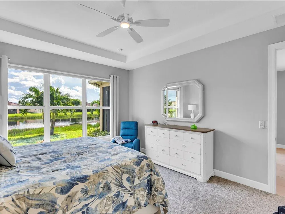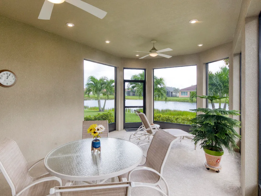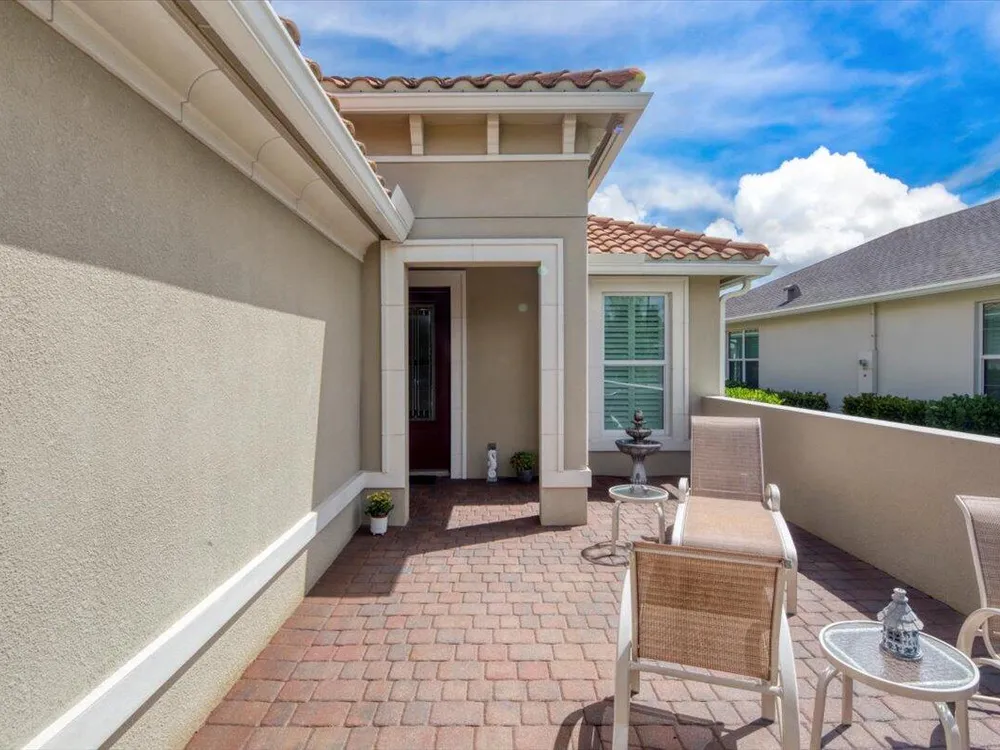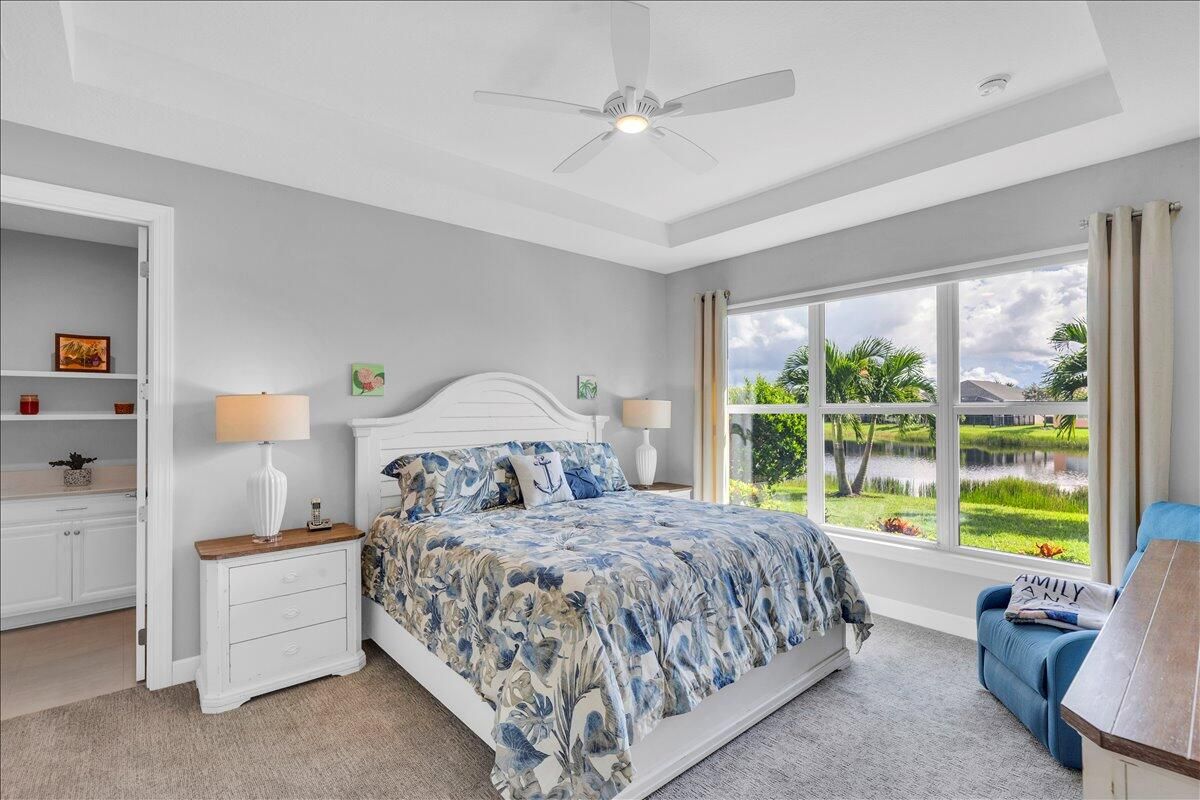 Nestled within the secure, gated community of Vitalia in Tradition, this exquisite CBS built 2-bedroom PLUS den offers a luxurious lifestyle. Offered fully furnished (or unfurnished) w/ high end furniture. Situated on a PREMIUM lakefront lot, enhanced with numerous upgrades, including IMPACT windows & doors, tile flooring in living areas and den, custom Hunter Douglas remote controlled window treatments, crown molding and a gorgeous custom master bedroom walk-in closet. The interior is bathed in natural light from the courtyard entry, beamingonto the professional neutral paint with many expanded windows throughout the home. The gourmet kitchen delights with a gas range, upgraded cabinets, large walk-in pantry, SS appliances, quartz countertops, a spacious island and under cabinet lights