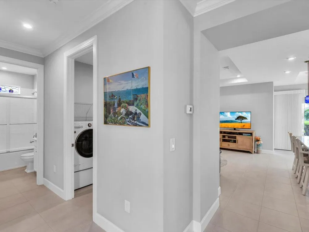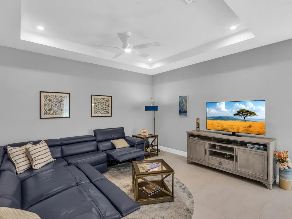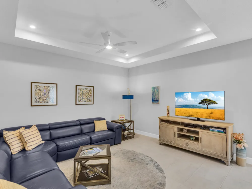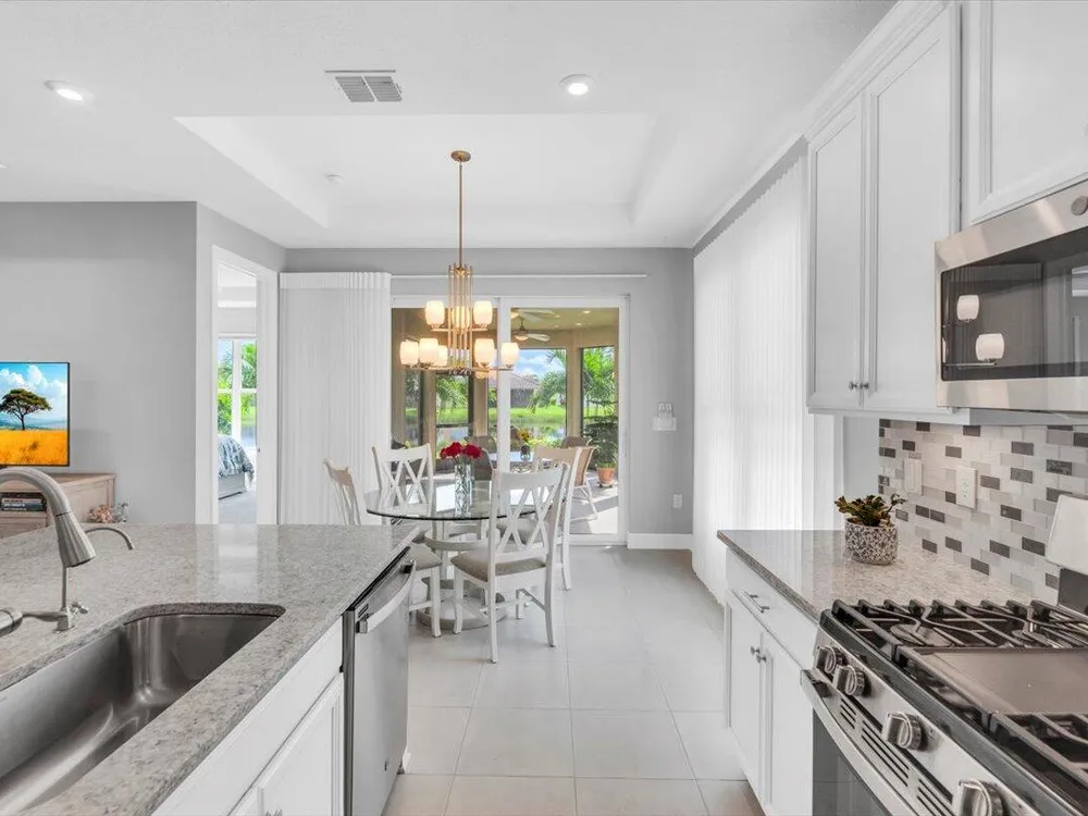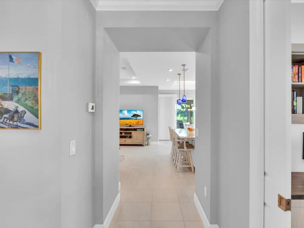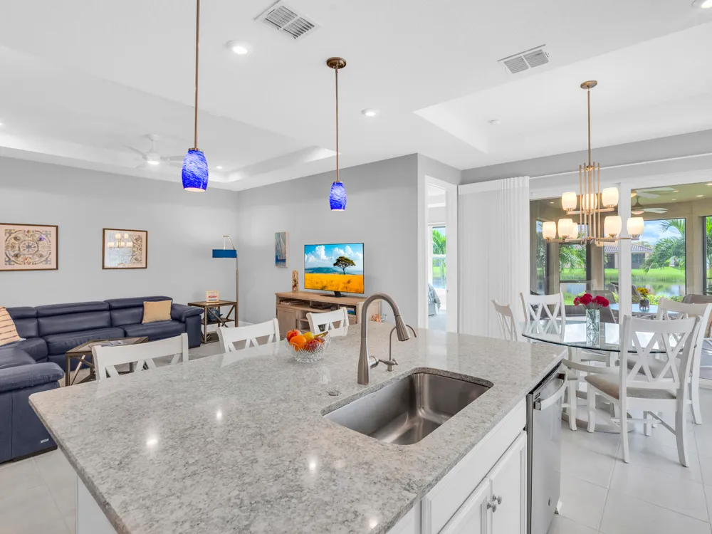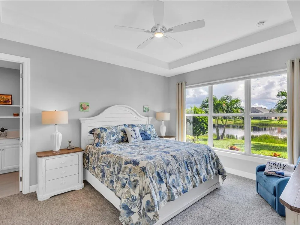Nestled within the secure, gated community of Vitalia in Tradition, this exquisite CBS built 2-bedroom PLUS den offers a luxurious lifestyle. Offered fully furnished (or unfurnished) w/ high end furniture. Situated on a PREMIUM lakefront lot, enhanced with numerous upgrades, including IMPACT windows & doors, tile flooring in living areas and den, custom Hunter Douglas remote controlled window treatments, crown molding and a gorgeous custom master bedroom walk-in closet. The interior is bathed in natural light from the courtyard entry, beamingonto the professional neutral paint with many expanded windows throughout the home. The gourmet kitchen delights with a gas range, upgraded cabinets, large walk-in pantry, SS appliances, quartz countertops, a spacious island and under cabinet lights