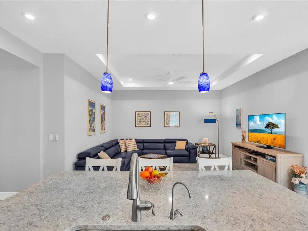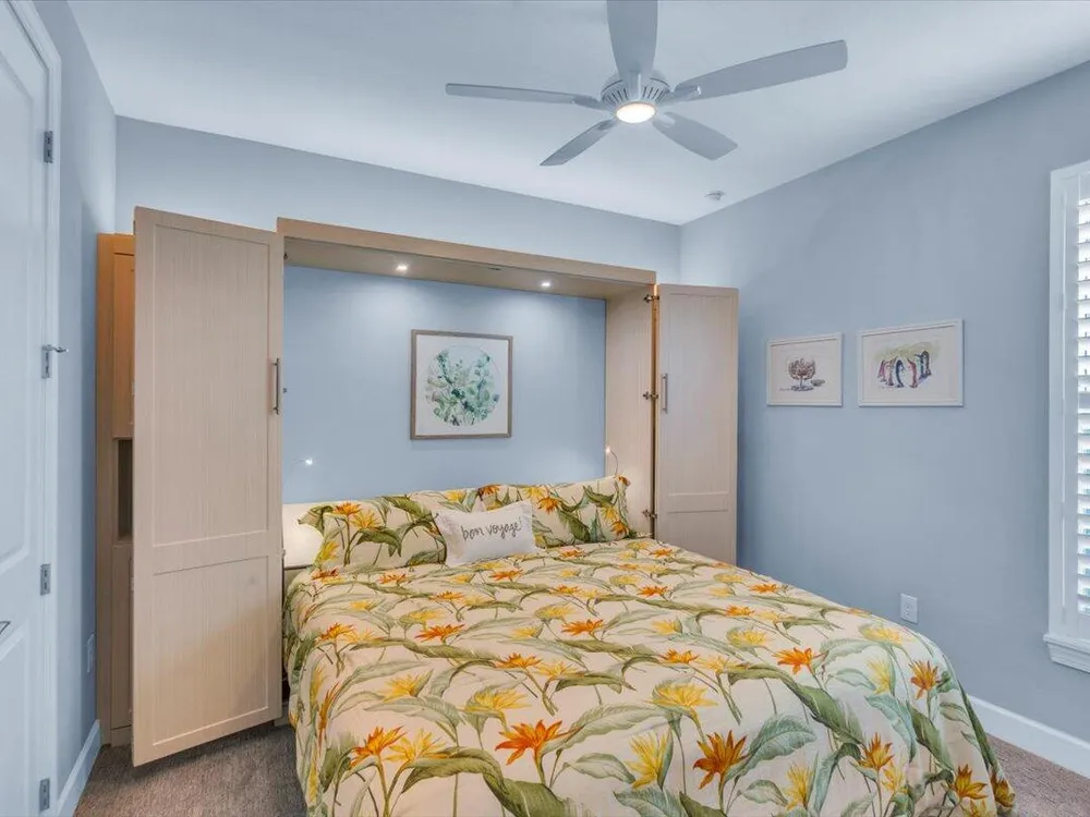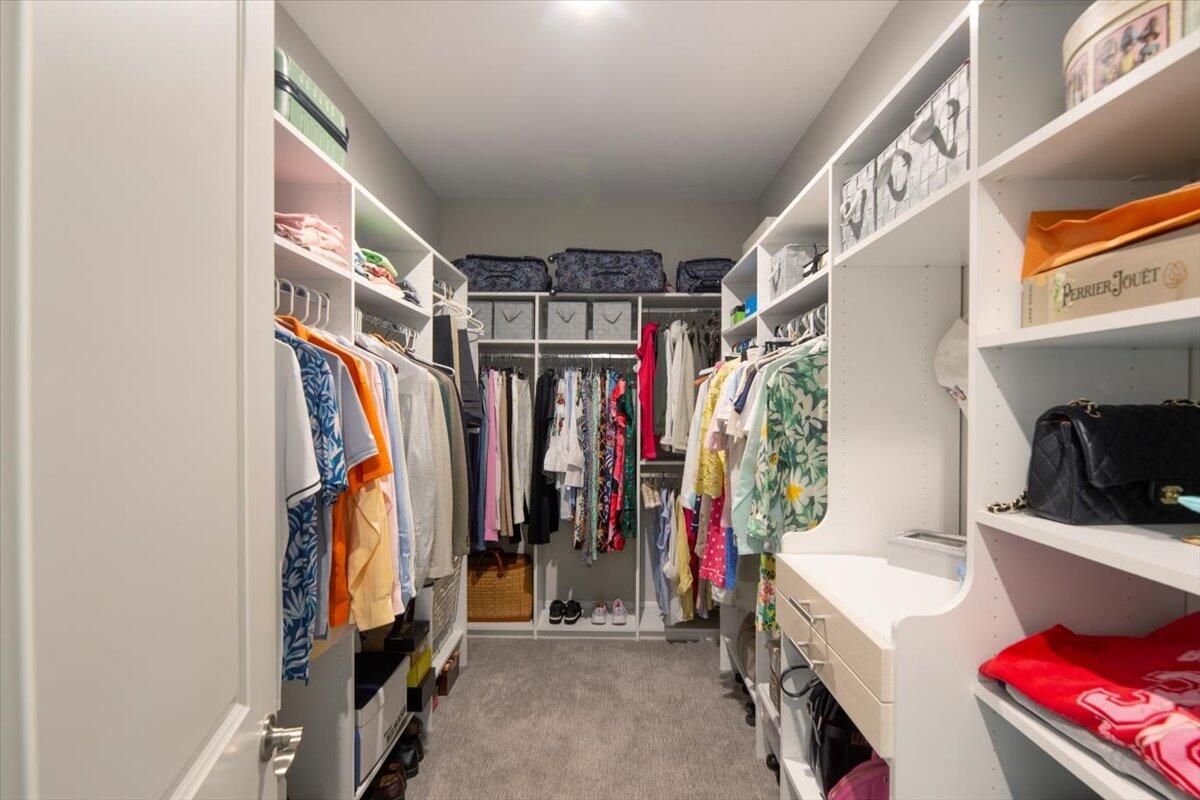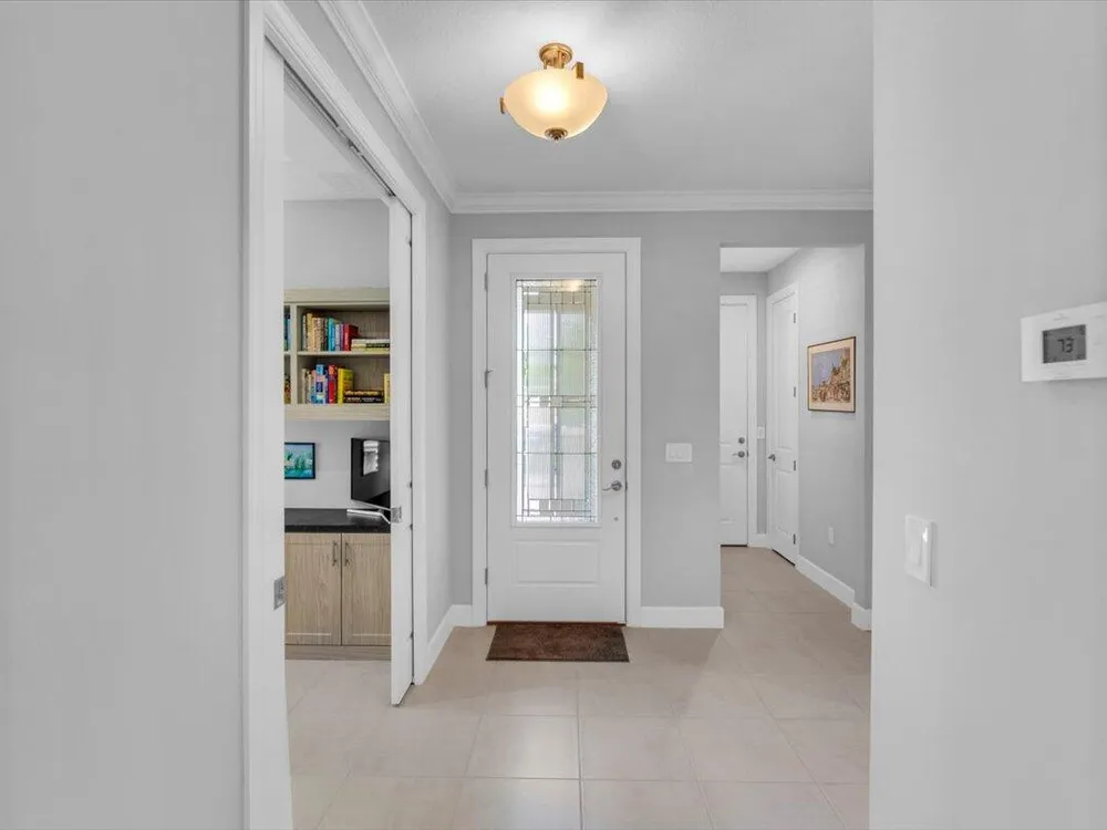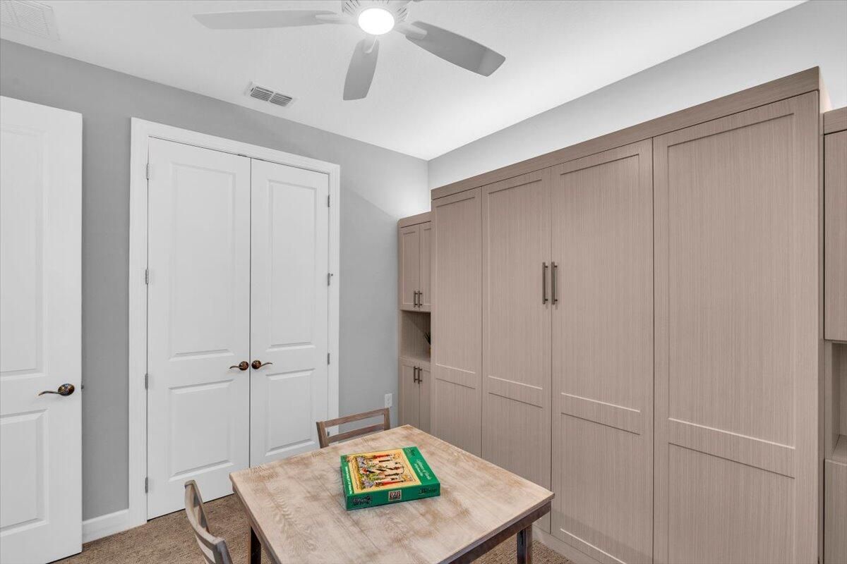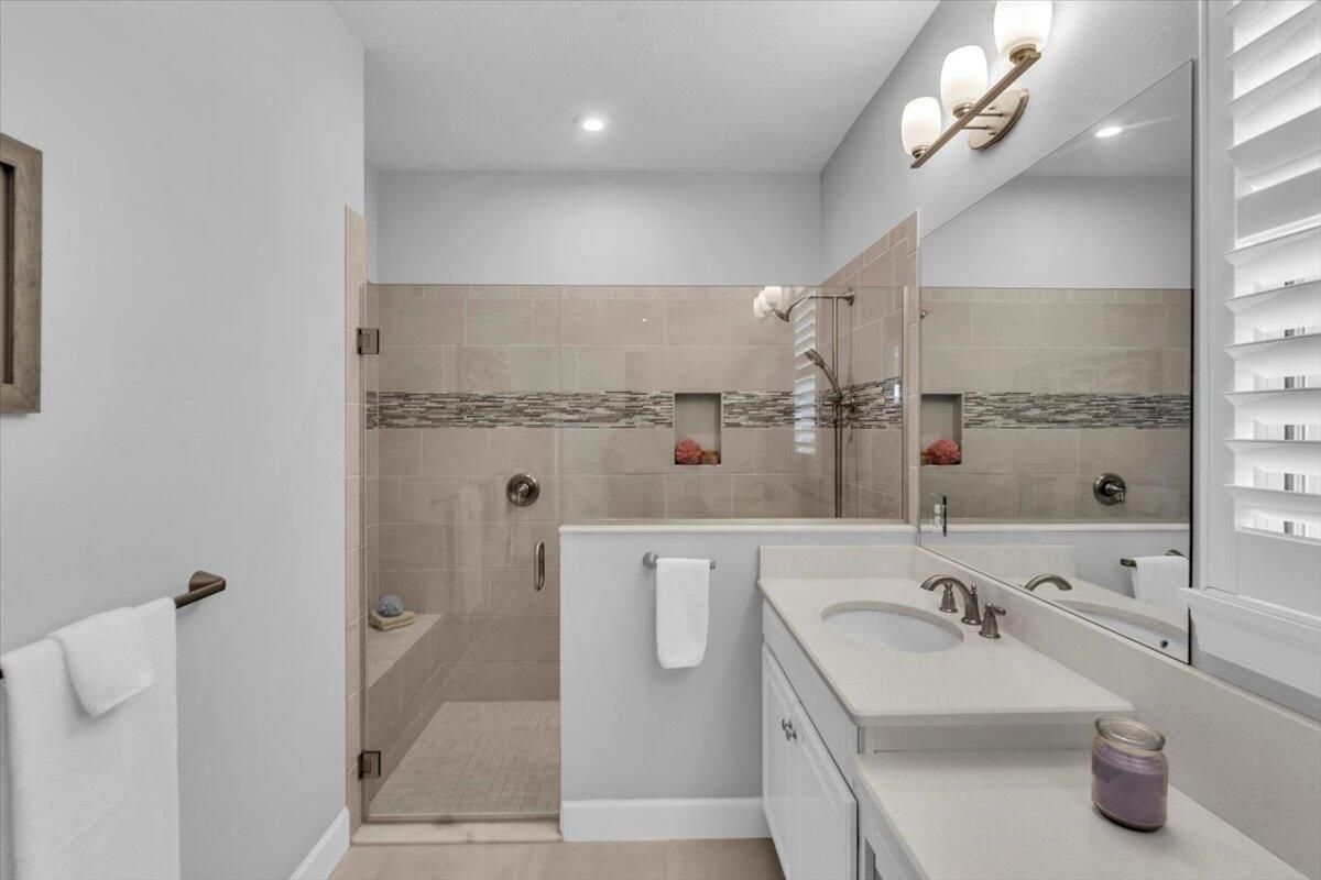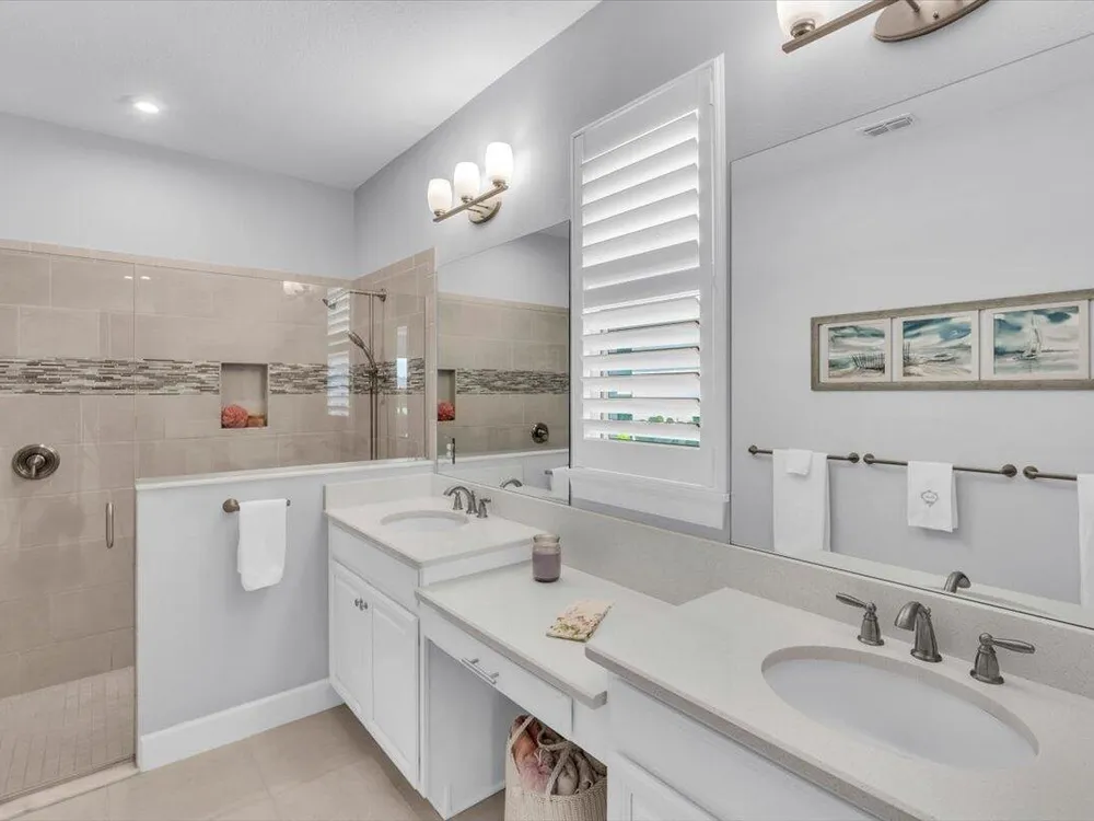 - Closet Cabinetry, Cathedral Ceiling(s), Entry Level Living Area, Entrance Foyer, Kitchen Island, Pantry, High Ceilings, Walk-In Closet(s), Home Office, Great Room, Kitchen/Dining Combo, Eat-in Kitchen, Blinds, Impact Glass, Plantation Shutters, Dual Sinks, Primary Downstairs, Separate Shower