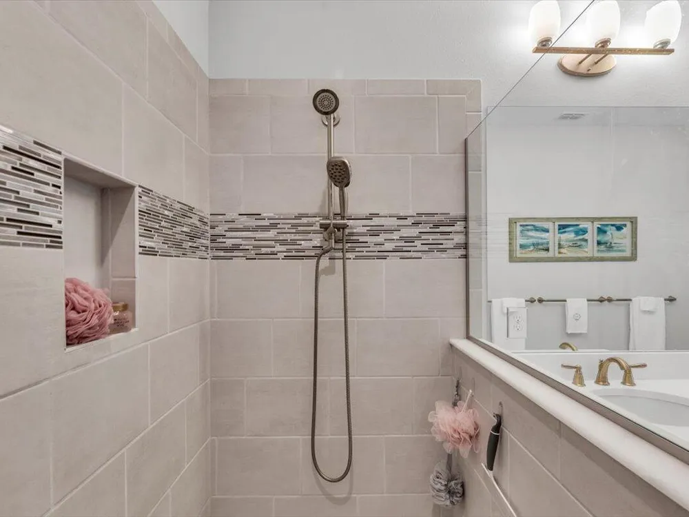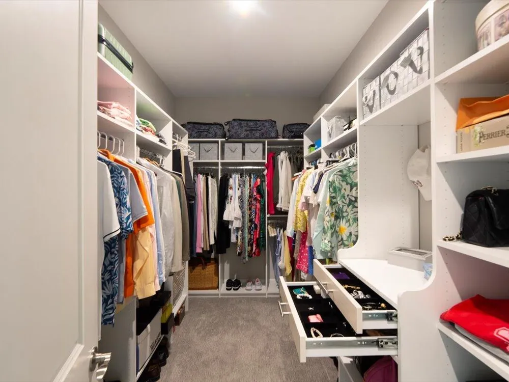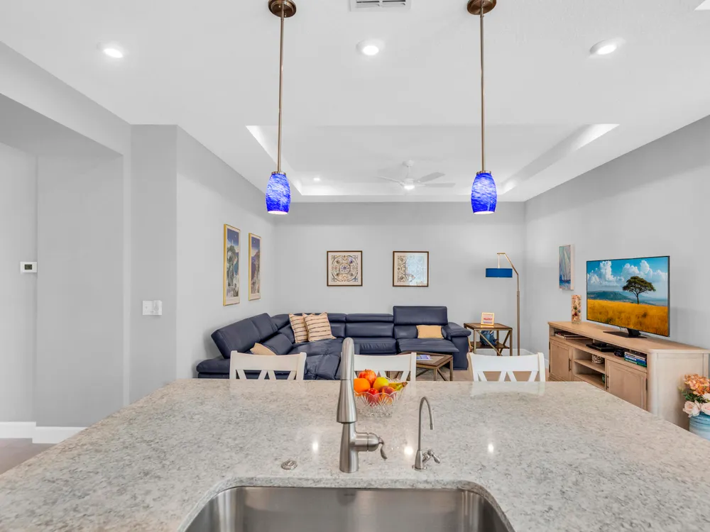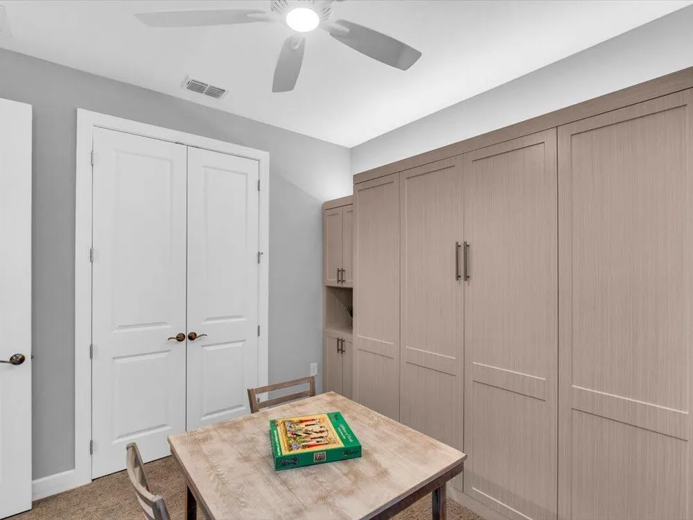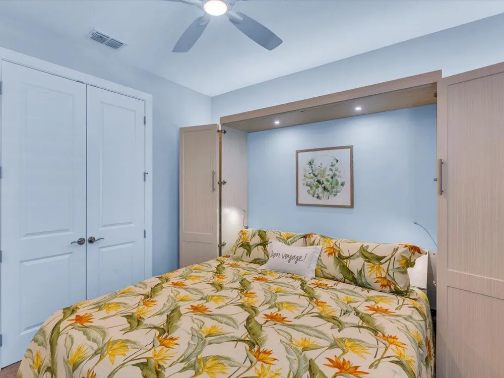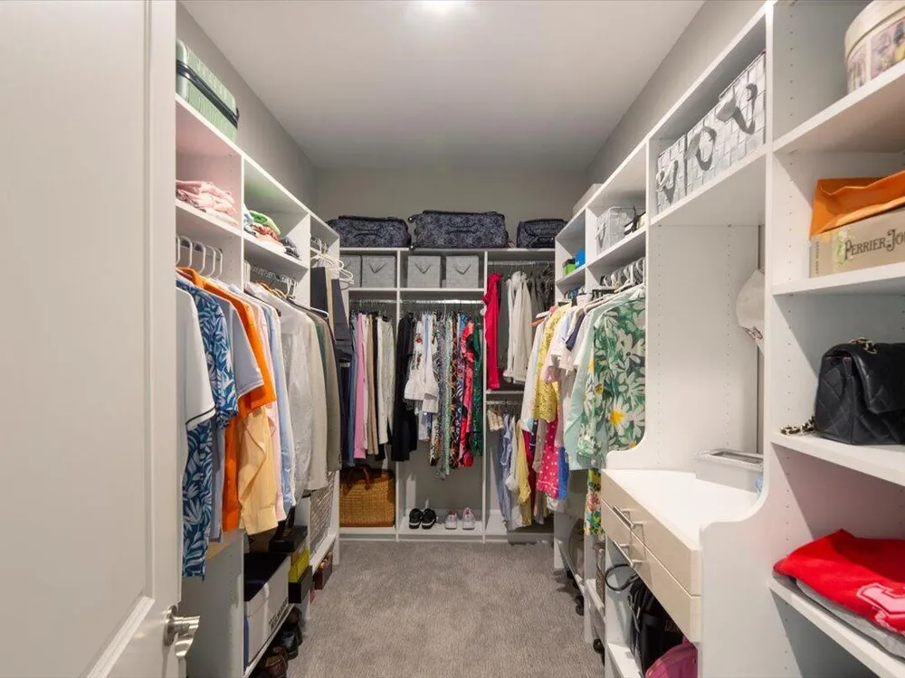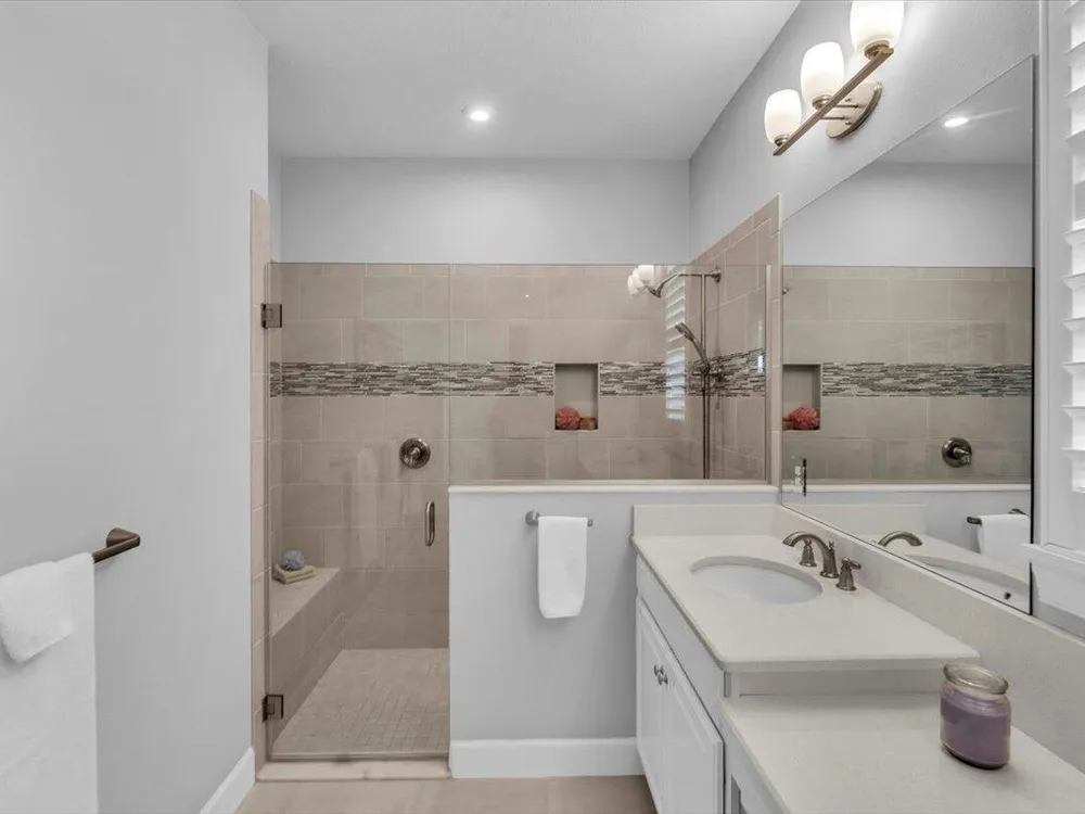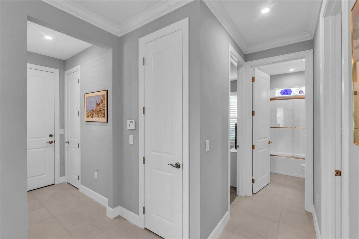 - Closet Cabinetry, Cathedral Ceiling(s), Entry Level Living Area, Entrance Foyer, Kitchen Island, Pantry, High Ceilings, Walk-In Closet(s), Home Office, Great Room, Kitchen/Dining Combo, Eat-in Kitchen, Blinds, Impact Glass, Plantation Shutters, Dual Sinks, Primary Downstairs, Separate Shower