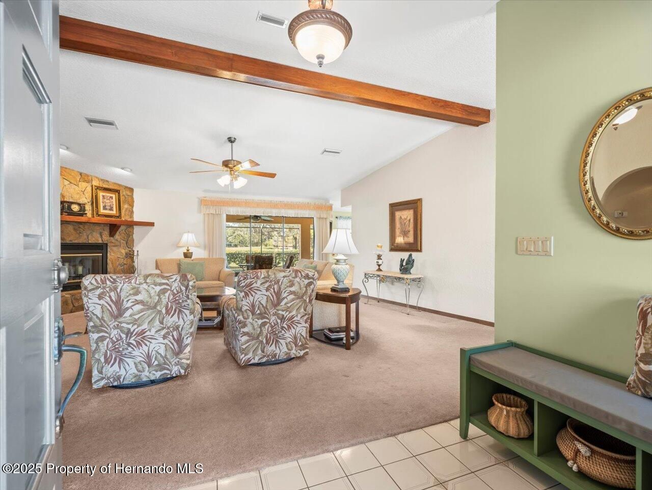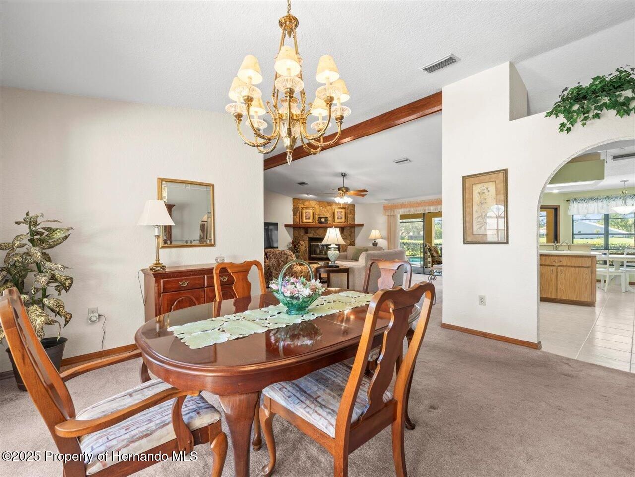 Located in Glen Lakes, this 1990 Alexander Boca Grande Deluxe pool home is located on the 5th fairway of the golf course. NEW EXTERIOR PAINT IN 2024, NEW TILE ROOF IN 2014. Located on .38 acre with lush landscaping, side pocket garage, deep irrigation well, heated Diamond Brite finished pool with self-cleaning pop ups and new computerized motor. Screened front porch with double door entry. 3 bedrooms/2 baths/oversized 20'x24' garage. Great room with wood burning fireplace (with Heatilator)/ 3 door pocket sliders to pool area/formal dining floor plan. Kitchen with stainless steel appliances, breakfast bar and breakfast nook. Master bedroom with walk-in closet, large sitting area (large enough to use as an office), 2 sliding doors to pool, master bath with 2 new vanities with granite counters, separate tub/shower. 2 nicely sized guest bedrooms, each with walk-in closets. The second bath has access to the pool. The laundry room has cabinets/sink/included washer and dryer. Club membership is NOT mandatory for this home. 2199 living sq. ft., 3115 total sq. ft. HOA FEES INCLUDE CABLE AND HIGH SPEED INTERNET, PRIVATE MAINTAINED STREETS AND 24 HOUR SECURITY WITH MANNED GATE. Glen Lakes is a wonderful gated and manned golf course community and is surrounded by the 85,000 Chassahowitzka National Wildlife Refuge. It is NOT mandatory for this home to have a social membership in the club, but membership gives access to the clubhouse, restaurant, bar, Jr. Olympic size heated pool/spa, fitness center, clay tennis courts, pickleball courts and a vast array of social clubs. Golf memberships also available.