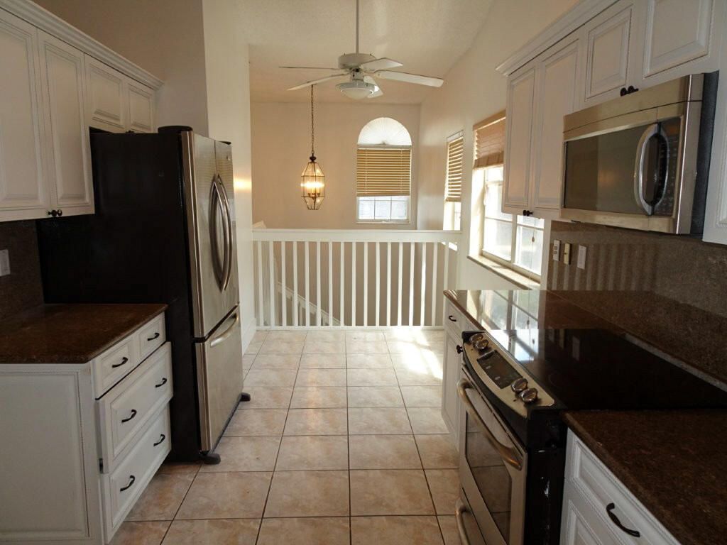Lovely 2/2 townhome condo with private elevator in gated Palm Isles community. Convenient first floor entry with main living area second floor. Spacious liv-din with den ideal as office or formal dining. Upgraded kitchen has granite counters, stainless steel appliances and pull-out pantry drawers. Cozy breakfast area. Primary bed offers ensuite bath, dual sinks and large walk-in closet. Florida room under air with sliders ideal in rain or shine. Wide water view. Laundry room with w/d hook-up. Under stairwell storage and exterior utility. Palm Isles Condo states HOPA. Resort amenities. Multi-million dollar renovated clubhouse reopening later this year. Seller must comply with HUD Guidelines 24 CFR 206.125.