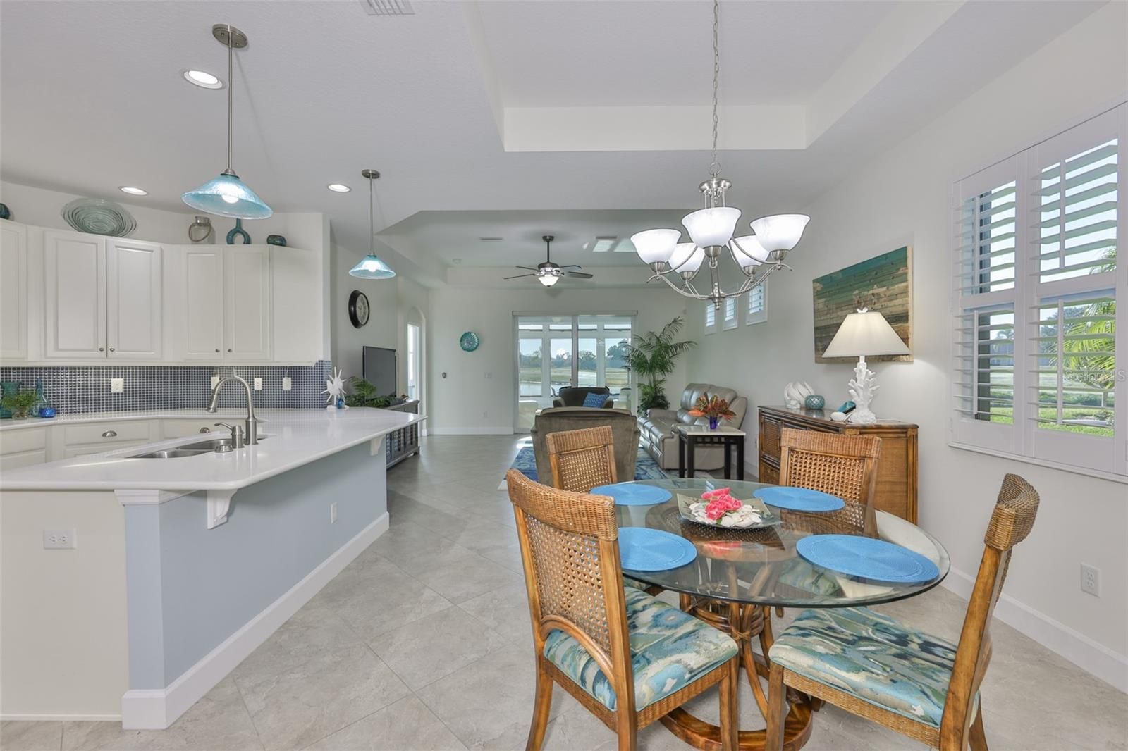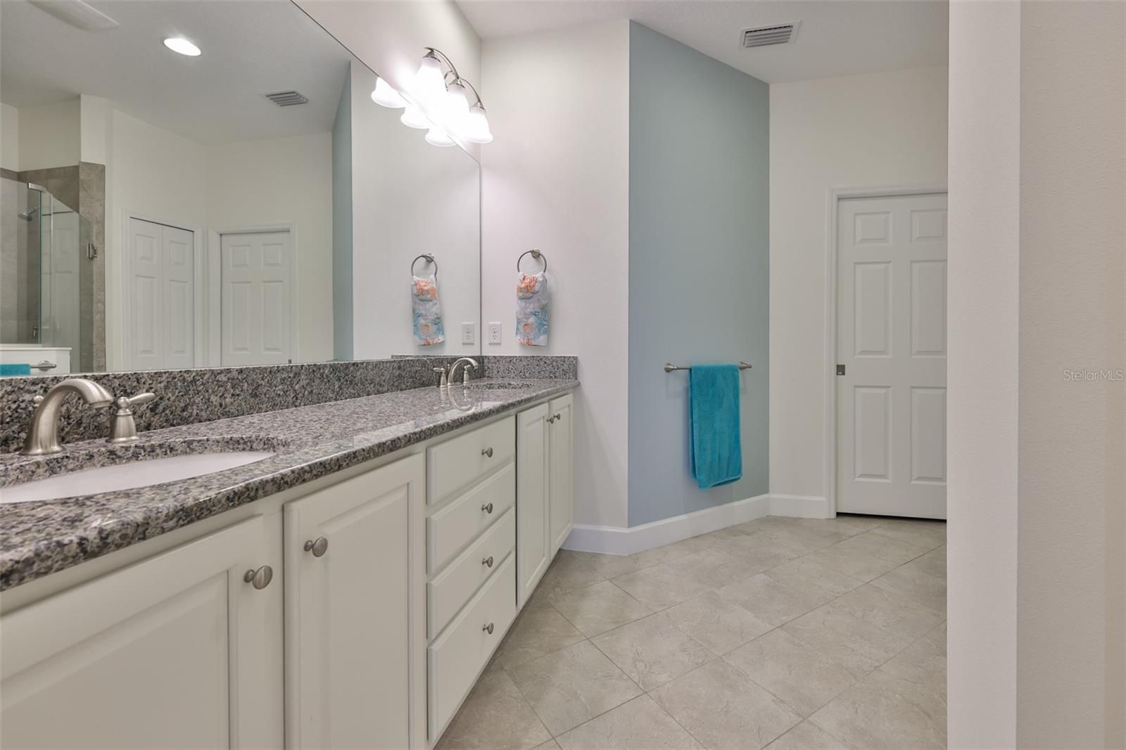 - Ceiling Fan(s), High Ceilings, Living/Dining Room, Open Floorplan, Main Level Primary, Solid-Wood Cabinets, Split Bedrooms, Stone Counters, Thermostat, Tray Ceiling(s), Walk-In Closet(s)