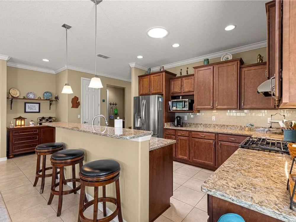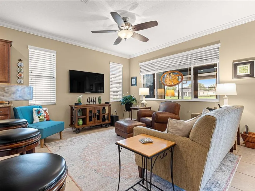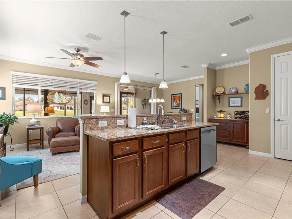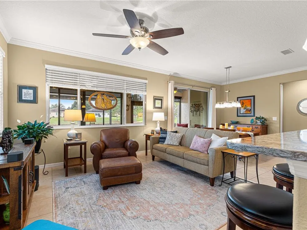 PRICE REDUCTION > LOCATION-LOCATION-LOCATION > GREEN SPACE! Stunning Saxony Model Single-Family Home in the Windsor West Neighborhood of On Top of the World, a Premiere 55+ Gated Golf Community in SW Ocala FL! This home boasts 2 bedrooms, Flex Room, 2 baths, Florida Room, Covered Patio, 2-Car Garage (w/2 ft extension), WHOLE HOUSE NATURAL GAS GENERATOR, Core Filled Block & additional R19 insulation over the Garage & FL Room, & MORE UPGRADES THROUGHOUT! Notice the paver front porch, custom stacked stone landscaping, stacked stone house finish, and UPGRADED tall storm & entrance doors! Step into the foyer and look back through the home to the GREEN SPACE! Notice the Crown Molding and solid surface floors throughout! Left of foyer is the spacious guest bedroom and guest/hall bath. The bath has been upgraded with a step-in shower w/custom tile work. True Split Bedroom Plan! French Doors welcome you to the Flex Room. Moving into the OPEN CONCEPT Kitchen-Great Room-Dining Space notice the upgraded cabinetry, large pantry, upgraded lighting, solar tube for extra light, quartz counters, under cabinet lighting – perfect for entertaining! The primary bedroom is in the back right of the home for privacy! The walk-in closet includes beautiful built-ins! The primary bath has a 2-sink vanity, custom tiled step-in shower, comfort height toilet, and linen closet. The Florida Room is nicely finished with incredible views. Step outside to the 10 X 25 covered patio with more VIEWS! The laundry room and mud room to the garage have been upgraded with LOTS of custom cabinetry! The laundry room is large enough to also be used as a craft room (or other) w/counter space and sink! Water heater has a circulator pump for instant hot water! Natural Gas Appliances and Generator! Freshly Painted Exterior! This is a MUST-SEE property! The monthly HOA fee includes Basic Internet, roof repair, exterior painting every seven years, exterior maintenance and insurance, landscaping, trash & recycling, 24/7 monitored gates and all the amenities that OTOW has to offer; three pools (2 outside & 1 inside & another under construction), two state of the art fitness centers, pickleball, billiards, archery range, corn hole, bocce ball, tennis, shuffleboard, horse shoes, remote control flying field and race cars, 175+ clubs, woodworking shop (extra fee), library, and much, much more! A golf cart community with access to three shopping centers. Centrally located 20 minutes from the World Equestrian Center, easy drive to 4 cruise ports and/or airports, and close proximity to entertainment complexes in Orlando. *** GOLF CART AND NEW GRILL INCLUDED WITH ACCEPTABLE OFFER!