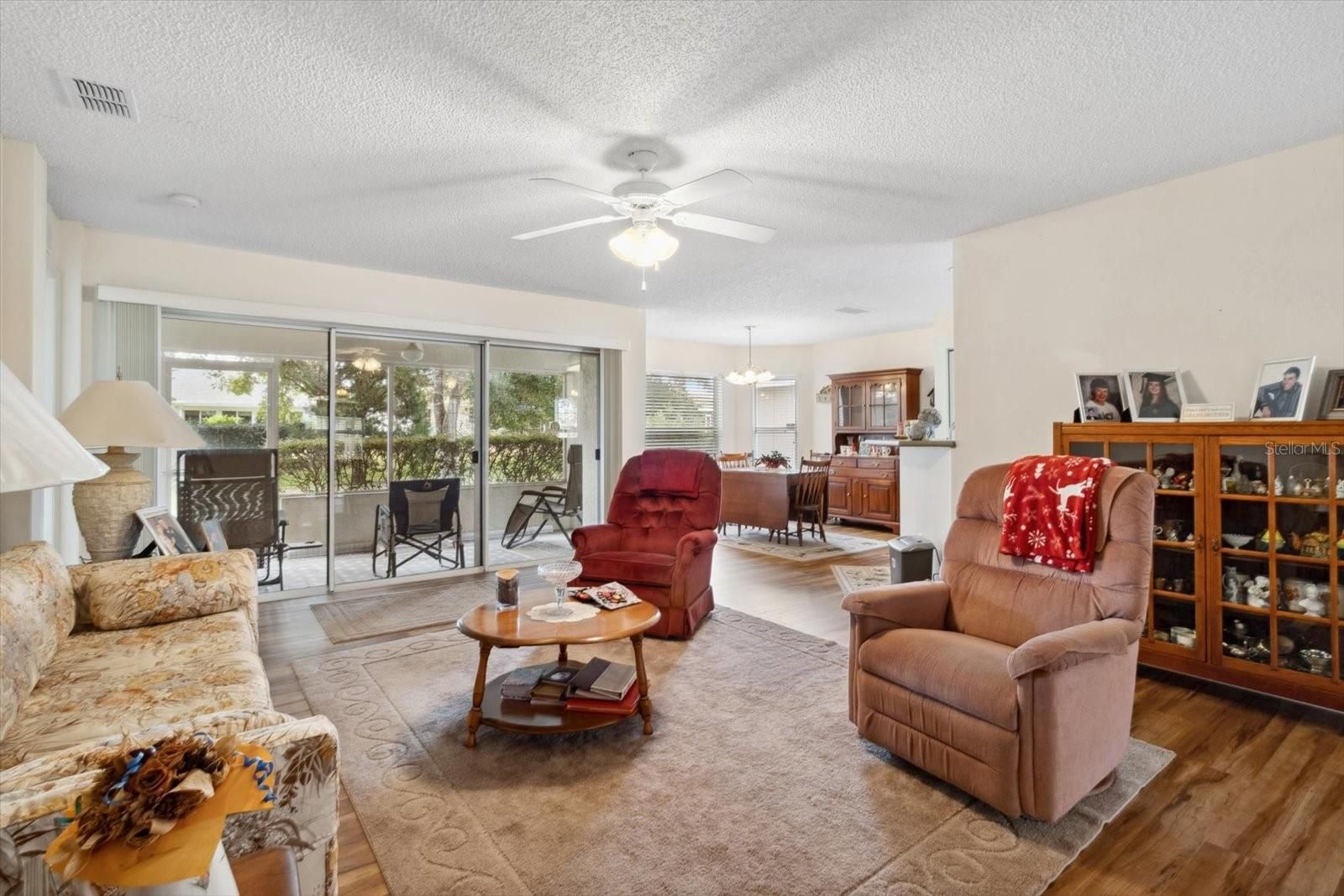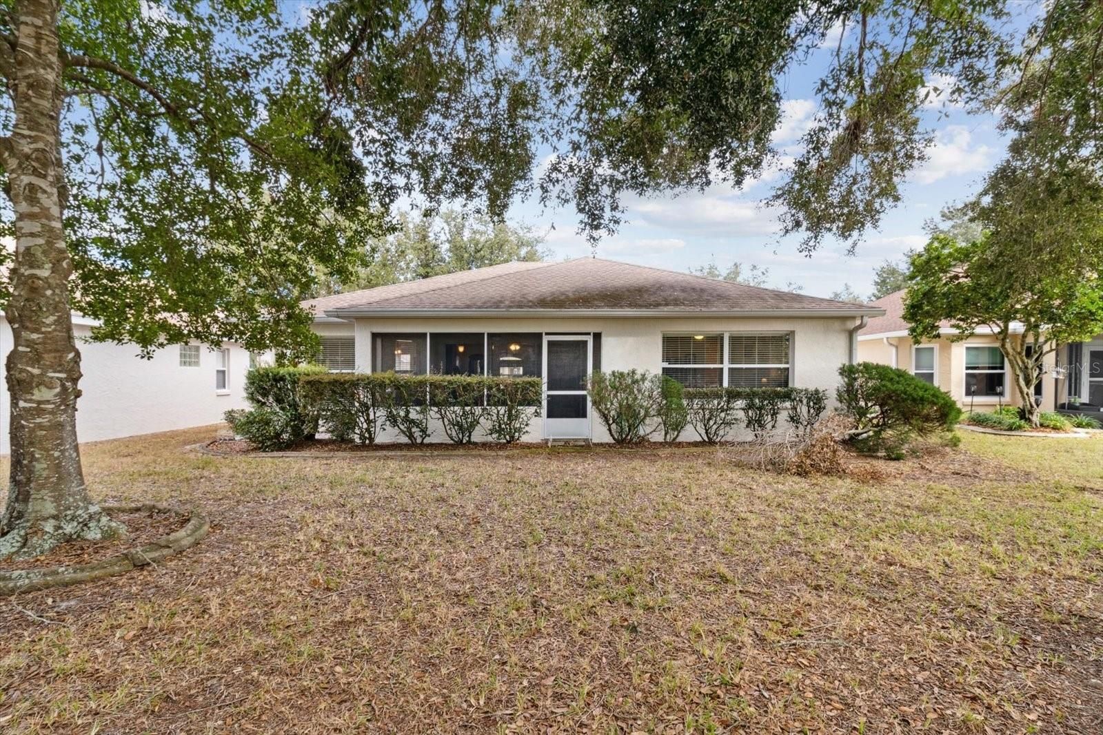 Come take a look at this home featuring: 2/2/2 plus a den! Eat-in Kitchen features cherry cabinets w/pull outs, counter tops, large single sink, faucet, and garbage disposal. There is a water saving toilet in the primary bathroom. Breakfast Nook with views of the beautifully landscaped backyard. Enjoy the big screened-in lanai with triple sliders with an awesome view. Located in the most sought after 55+ community in Ocala with tons of amenities. Roof 2021, AC 2016