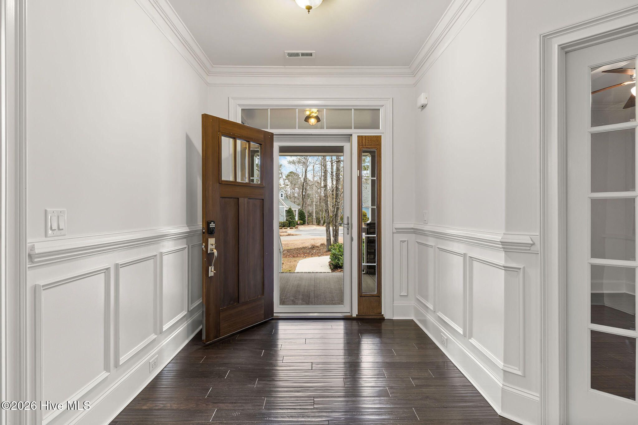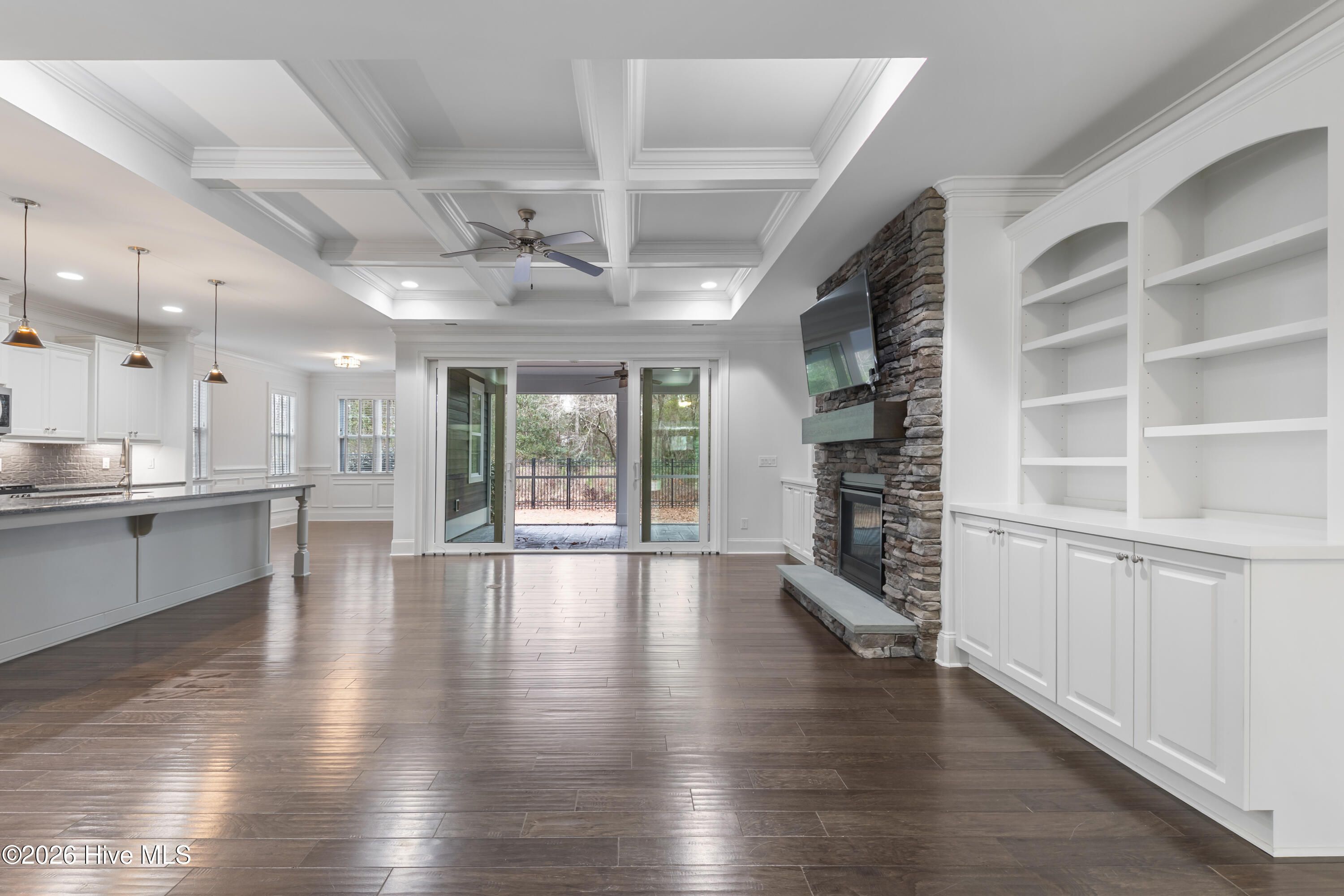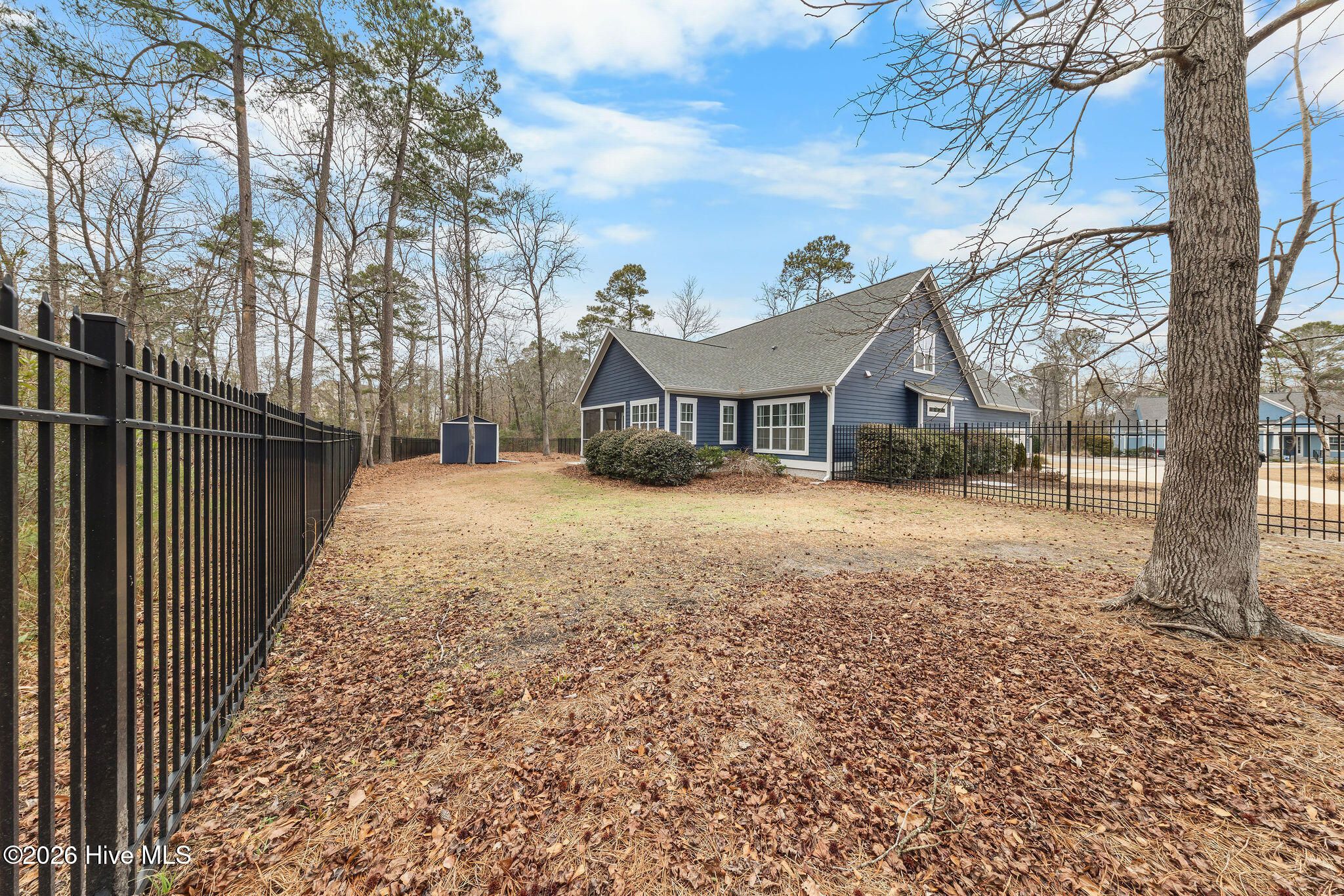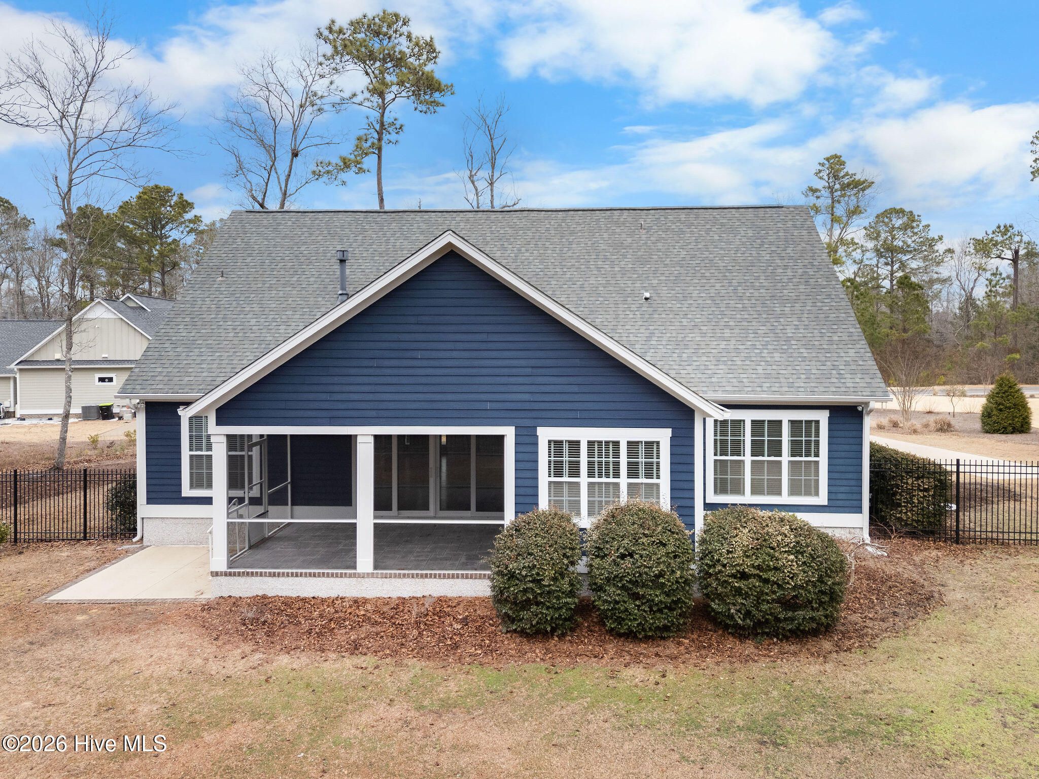 Welcome to 9652 Sweet Apple Lane NE, located in the gated riverfront community of The Bluffs on the Cape Fear. This stately 5-bedroom, 3-bath home with an oversized side-entry two-car garage sits on a private half-acre lot backing to peaceful green space. First impressions matter, and this home delivers. A welcoming front porch opens to an inviting foyer leading to a spacious living room featuring a natural gas fireplace with a floor-to-ceiling stacked stone surround and double sliding glass doors to a large screened porch overlooking tranquil backyard. A home office with French doors, a well-appointed kitchen with a large granite island, abundant cabinetry, and a new gas stove, along with an adjacent dining area, complete the main living space. Quality craftsmanship is evident throughout, from crown molding and coffered ceilings to wainscoting, built-ins, and stone accents; every detail has been thoughtfully designed. The main-level primary suite offers a tray ceiling and a spacious ensuite bath with dual vanities, a large walk-in closet, and a zero-entry tiled shower. Two additional bedrooms and a full bath provide an ideal split floor-plan layout. A large laundry room includes a convenient laundry chute from the primary closet. Wainscoting-lined garage entry access leads to two additional bedrooms and a full bath upstairs, along with extensive attic storage. The fenced and private backyard backs to a wooded area. The storage shed conveys and is grandfathered in. Additional highlights include a whole-house generator, transferable termite bond, LeafGuard gutters, new fireplace insert, RV storage, fresh interior paint, and turnkey condition. The Bluffs on the Cape Fear is an amenity-rich community featuring a clubhouse, gym, pool, tennis courts, playground, community lake, private gated entrance, riverfront park with boat and kayak launch, gazebo, and a private Oak Island beach house available to residents. Conveniently located near I-40 with easy access to shopping, dining, downtown Wilmington, and area beaches. Experience the craftsmanship, privacy, and luxury lifestyle this exceptional home offersschedule your showing today.