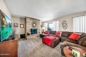 Beautiful Home in Prime Location Near Cardinals Stadium! Located in a desirable Adult Community, this well-maintained 3bed/2bath home offers comfort, functionality, and an unbeatable location. Enjoy easy access to the University of Phoenix - home of the AZ Cardinals, Gila River Arena- Home of the AZ Coyotes, Desert Diamond Casino, major freeways, and miles of scenic New River bike trail, all just minutes away. Step inside, you'll find a spacious living rm featuring a stunning wood-burning fireplace, perfect for cozy evenings, a separate family rm ideal for relaxing or entertaining, and a huge laundry rm providing ample workspace and storage. Additional storage adding plenty of practical space, is available in the dedicated storage room conveniently combined w/ the 2 car garage. A new roof installation is currently in progress, adding even more value and peace of mind. This home truly blends warmth, function, and location. Everything you've been looking for!